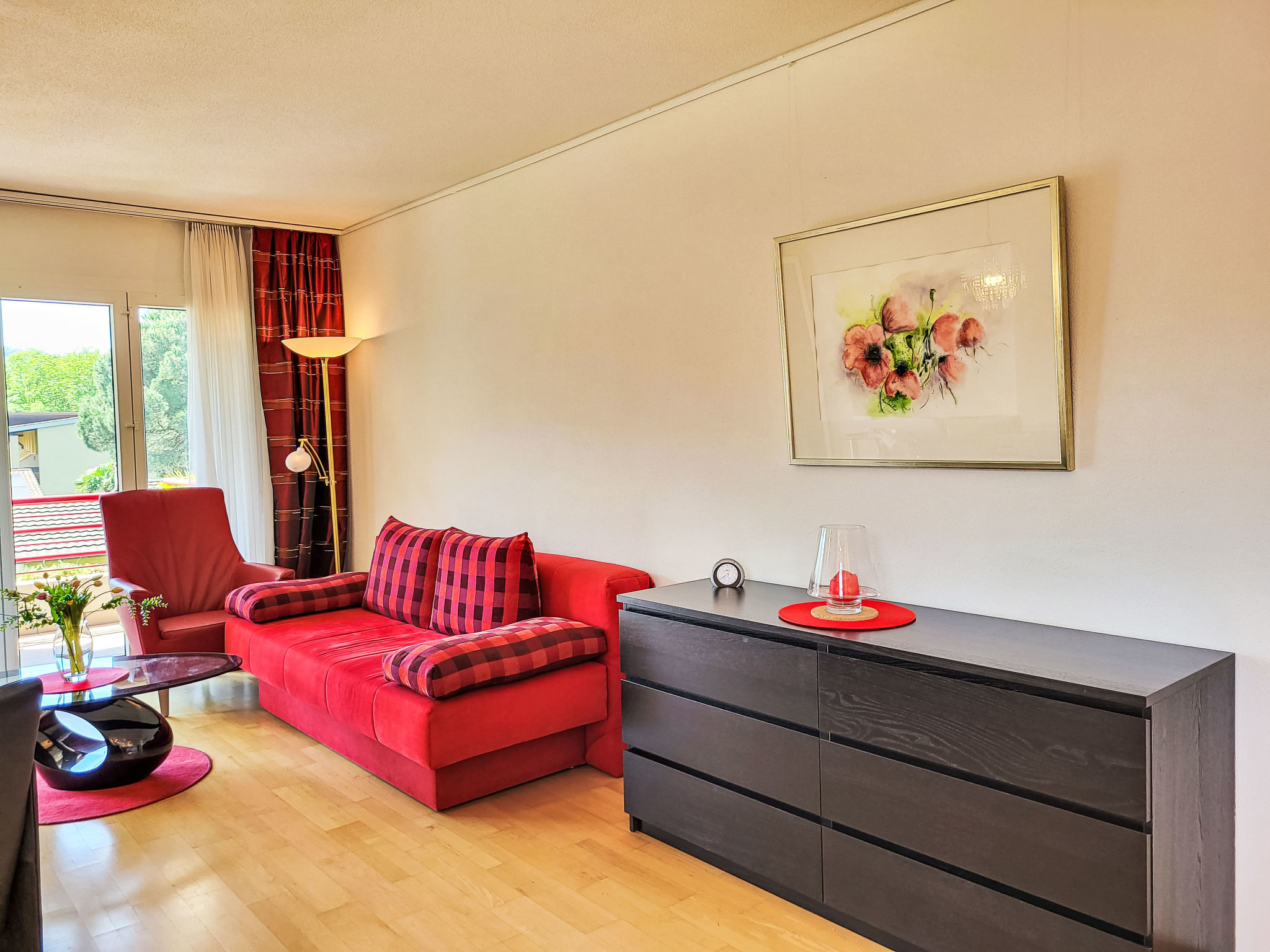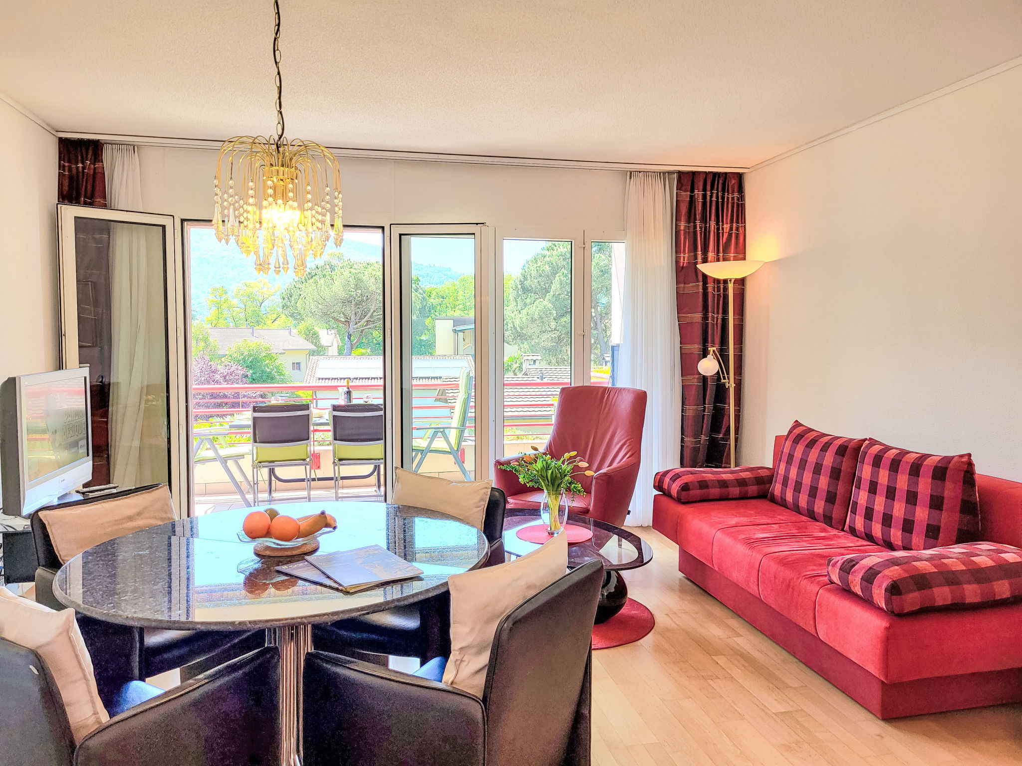 "App.37", apt. di 2 locali 56 m2 al 3. piano, esposizione sud-est. Oggetto adatto a 2 adulti + 2 bambini. Arredamento semplice e funzionale: soggiorno/sala da pranzo aperto con 1 divano letto (130 cm, lunghezza 200 cm), tavolo da pranzo, tv con canali internazionali e schermo piatto. Uscita sul balcone. 1 camera matrimoniale con 2 letti (90 cm, lunghezza 200 cm). Uscita sul balcone, esposizione ovest. Cucina aperta (4 piastre cottura in vetroceramica, tostapane, bollitore elettrico, forno a microonde, macchina da caffè elettrica, capsule per la macchina da caffè (Nespresso) extra). Vasca/WC. Riscaldamento. 2 balconi. Mobili da balcone, barbecue elettrico, sedie a sdraio (2). Bella vista sulla piscina e sul giardino. A disposizione: lettino per bimbi (extra). Internet (wifi, gratis). Parcheggio nr. 37. Prego notare: adatto alle famiglie. Appartamento per non fumatori. NL-00012236