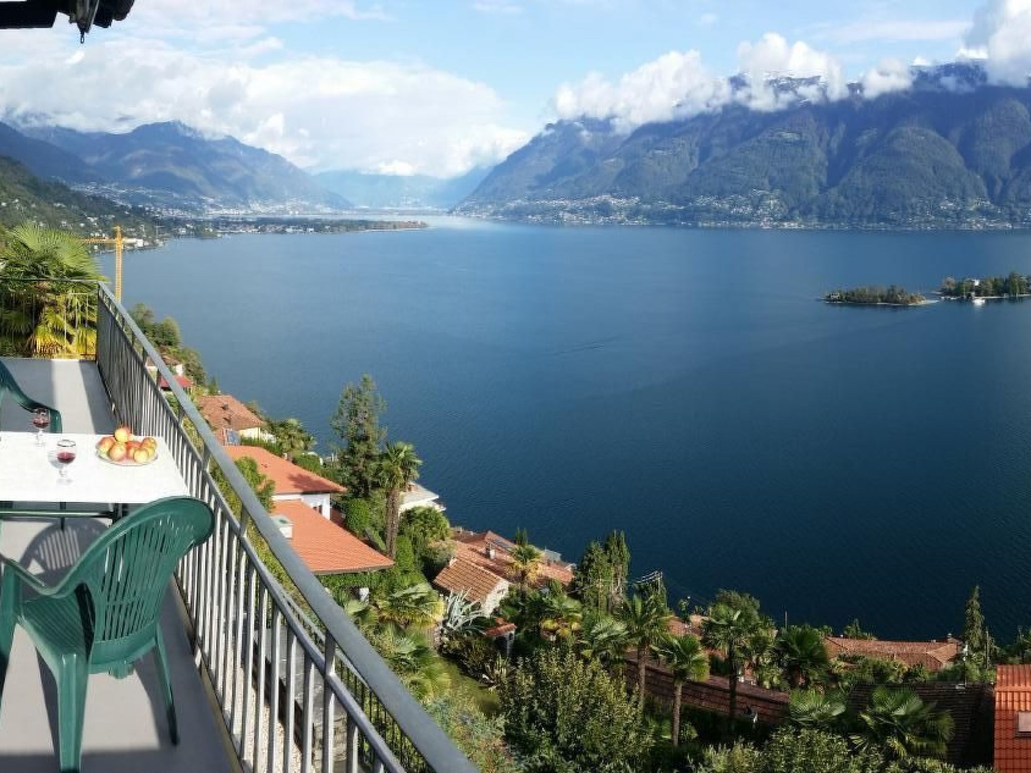 Discover the incomparable beauty of Lake Maggiore from our holiday home! To the east you can see far beyond Ascona, to the south far into Italy, while the Brissago Islands greet you directly at your feet.Our small holiday home has two flats, the upper one is available for rent. It is ideal for two, maximum four holiday guests. The holiday flat is reasonably priced, as you bring your own bed linen and take care of the final cleaning. It is practically furnished and fully equipped to ensure you have a carefree stay. The living room is furnished with a dining table, four chairs, two upholstered armchairs that function as single beds, a side table, wardrobe and a TV with satellite reception. The kitchen has a ceramic hob, oven, fridge and various coffee machines as well as a raclette and fondue set - everything you need for culinary delights. The bedroom has two single beds, a wall-mounted wardrobe and a chest of drawers, while the bathroom with two washbasins, WC and shower leaves nothing to be desired.The outdoor area entices with a balcony that spans the entire lake side. Equipped with a table and chairs, it is the perfect place to spend unforgettable hours enjoying the marvellous view over the lake. There is also a private lawn with sun loungers, which will delight both sun worshippers and those seeking shade.The Casa is located just south of the beautiful village centre of Ronco in a quiet and well-kept area. You can park your car in a public car park * on Via Fontana Martina, from where you can reach the house by climbing down 120 😘 steps - a little sporting adventure.* The public car parks in Ronco are subject to charges from Monday morning to Saturday evening. You can therefore use a card for free parking throughout the municipality.Ronco sopra Ascona is best known for its magnificent views over Lake Maggiore. The characteristic village centre with its closely packed houses and narrow alleyways is just a stroll away from Casa Argo. Let yourself be enchanted by Ronco and the beauty of Lake Maggiore and enjoy an unforgettable stay in our cosy holiday home. The breathtaking views and the proximity to numerous leisure activities make our offer the perfect choice for your next holiday. We look forward to welcoming you as our guests! NL-00008141