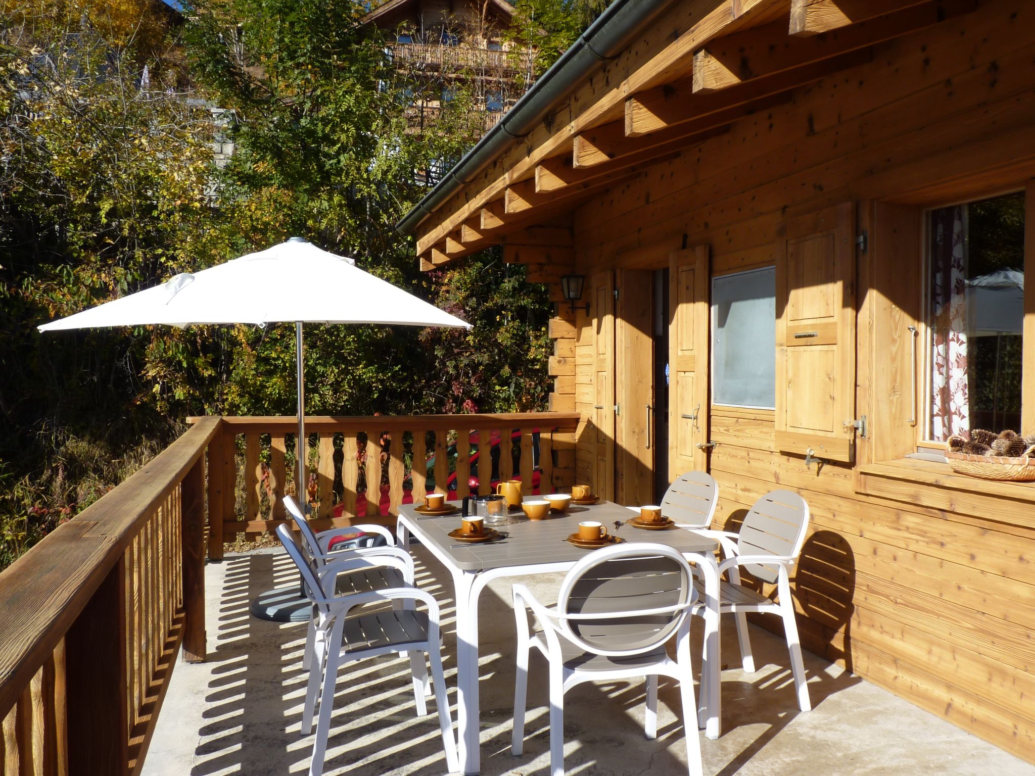 "Ardévaz I", chalet 5 locali 140 m2 su 2 piani. Arredamento confortevole e gradevole: soggiorno/sala da pranzo grande con camino e TV (satellite). Uscita sul balcone. 1 camera con 1 letto alla francese, lavabo e doccia. Cucina aperta (forno, lavastoviglie, 4 piastre cottura in vetroceramica, forno a microonde, macchina da caffè elettrica, capsule per la macchina da caffè (Nespresso) extra, set per raclette) con tavolo da pranzo. WC separato. Riscaldamento elettrico. Piano inferiore: 2 camere, ogni camera con 2 letti (90 cm, lunghezza 200 cm). 1 camera con 1 x 2 letti a castello (90 cm, lunghezza 200 cm). Vasca/WC. Riscaldamento elettrico. Balcone, terrazza. Mobili da terrazza, barbecue, sedie a sdraio (6). Splendida vista sulle montagne e sulla valle. A disposizione: lettino per bimbi fino 3 anni, asciugacapelli. Parcheggio vicino alla casa. Prego notare: appartamento per non fumatori. Massimo 1 animale/cane consentito.