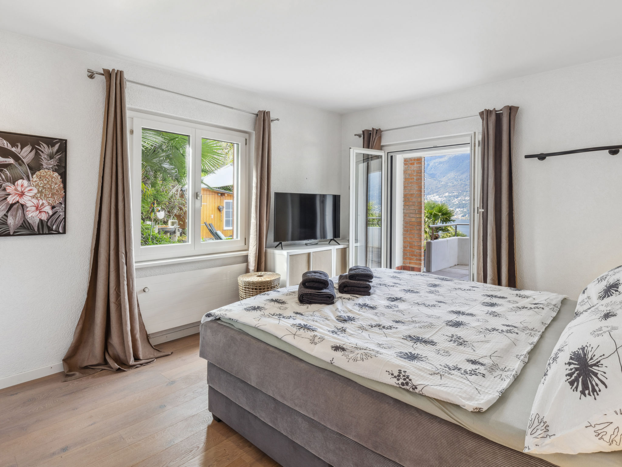 "Villetta Felice", casa 5 locali 146 m2 su 2 piani, esposizione nord-ovest. Oggetto adatto a 4 adulti + 1 bambino. Restaurata nel 2023, arredamento gradevole e accogliente: soggiorno/sala da pranzo aperto con TV e tv con canali internazionali (schermo piatto), stufa a legna. Uscita sulla terrazza, esposizione nord e esposizione ovest. 1 camera con TV e tv con canali internazionali (schermo piatto). Uscita sulla terrazza. 1 camera con 1 letto doppio (1 x 180 cm, lunghezza 200 cm), TV e tv con canali internazionali (schermo piatto). Uscita sulla terrazza. 1 camera con 1 letto (90 cm, lunghezza 200 cm). Cucina 6 m2 (forno, lavastoviglie, 4 piastre cottura in vetroceramica, bollitore elettrico, macchina da caffè elettrica). Doccia/WC. Riscaldamento a pavimento. Piano inferiore: 1 camera grande con 1 letto doppio (2 x 90 cm, lunghezza 200 cm). Vasca/doccia/WC. Riscaldamento a pavimento. Pavimenti in pietra. Grande terrazza 18 m2, grande patio 30 m2. Mobili da terrazza, barbecue, sedie a sdraio (2). Magnifica vista panoramica sul lago, sulle montagne e sul paesaggio. A disposizione: lavatrice, asciugatrice, zanzariere. Internet (wifi, gratis). Parcheggio vicino alla casa. Prego notare: adatto alle famiglie. Appartamento per non fumatori. Massimo 1 animale/cane consentito. La piscina menzionata nella descrizione è per uso privato. 1 cane è il benvenuto in casa. NL-00012478