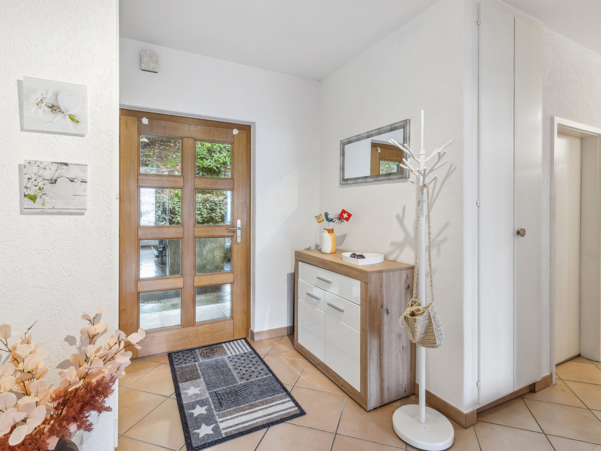 Magadino 15 km da Locarno: Casa singola "Villetta Felice mit Pool", 230 m s.l.m., molto piacevole, confortevole su 2 piani, costruita nel 1965, ristrutturata nel 2023. Sopra Magadino, posizione tranquilla, soleggiata, elevata, esposizione nord-ovest. Per uso privato: grande, bello giardino 200 m2 (recintato), piscina ad angolo (7 x 3 m, profondità 150 cm, disponibilità stagionale: 01.Mag. - 15.Ott.) con copertura avvolgibile e filtro a elettrolisi. Doccia esterna. Nella casa: riscaldamento centralizzato. Scalinata (6 scalini) fino alla casa. Negozio alimentare 800 m, supermercato 6 km, ristorante 800 m, fermata bus "Orgnana, Monda" 80 m, stazione ferroviaria "Bellinzona" 19 km. Porto turistico 1.5 km, campo da golf (18 buche) 19 km, mini golf 2.2 km, sentieri per passeggiate vicino alla casa 10 m. Attrazioni nelle vicinanze: Mercato Luino IT, Parco botanico del Gambarogno, Castelli di Bellinzona. Laghi famosi: Lago Maggiore. Sentieri escursionistici: Bolle di Magadino, Valle Verzasca, Vallemaggia. Il proprietario non accetta gruppi di giovani. La casetta da giardino rimane chiusa perché lì si trova la tecnologia della piscina, controllata una volta al mese dal tecnico della piscina che rileva i valori.