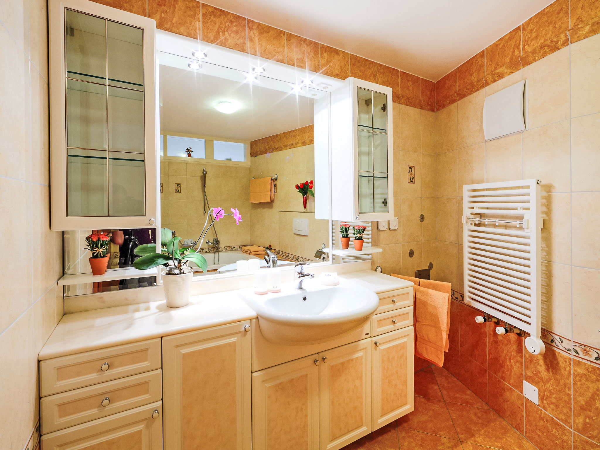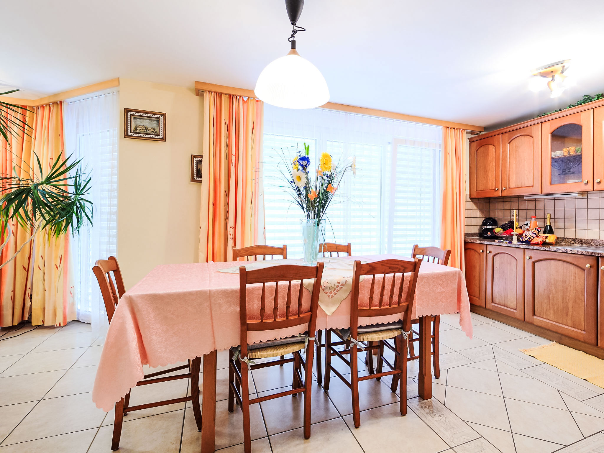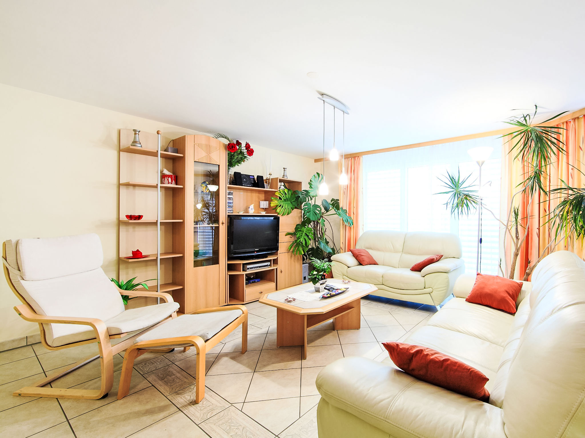 Apt. di 4 locali 120 m2 al 1. piano, esposizione sud. Arredamento moderno e di buon gusto: soggiorno/sala da pranzo con TV (via cavo) e DVD. 2 camere, ogni camera con 2 letti. 1 camera matrimoniale con 1 letto doppio. Cucina aperta (forno, lavastoviglie, 4 piastre cottura in vetroceramica, forno a microonde, congelatore, macchina da caffè elettrica). Vasca/WC, doccia/WC. Balcone 11 m2. Bella vista sulle montagne. A disposizione: Internet (wifi, gratis). Prego notare: appartamento per non fumatori.