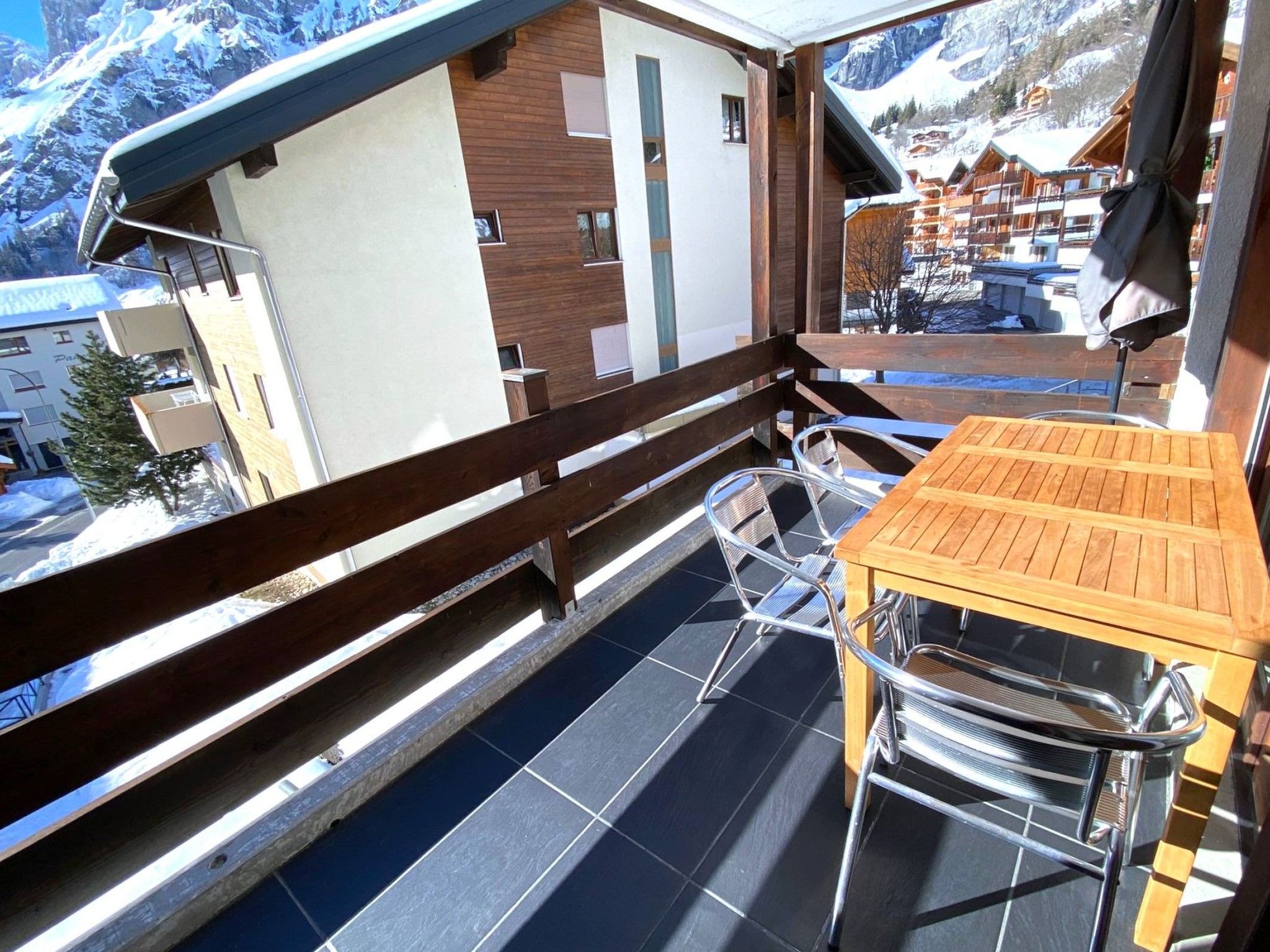 Discover the perfect holiday flat for your next stay in Leukerbad, Canton Valais. This cosy and welcoming 3½-room flat can accommodate up to 5 people and is the ideal accommodation for families or small groups of travellers looking for the charm of mountain life. With permission to bring a medium-sized pet, nothing stands in the way of your holiday with your four-legged friend.Inside the flat you will find a harmonious ambience characterised by an open-plan kitchen that leaves nothing to be desired. Equipped with an oven, a ceramic hob, a fridge, a freezer, a capsule coffee machine, a kettle and a dishwasher, the kitchen allows you to indulge in culinary delights. The flat is also equipped with amenities such as a TV/DVD player, Netflix and WIFI, making entertainment and relaxation a top priority. The sleeping arrangements include a bedroom with a double bed, another bedroom with two single beds and an additional portable bed in the living room.Outside, an inviting terrace invites you to enjoy the fresh mountain air and unwind with a morning coffee or a relaxed al fresco dinner. Another plus is the shared washing machine and tumble dryer in the building for added convenience during your stay.The surrounding area of Leukerbad offers a variety of activities for outdoor enthusiasts and families. With a ski slope just 800 metres away, a mountain/cable car 399 metres away and a ski school and cross-country skiing facilities just 600 metres away, this flat is the perfect base for skiing and snow adventures. Culinary delights are provided by the Teretschen restaurant, conveniently located on the ground floor of the building.This holiday flat in Leukerbad, Canton Valais, is an excellent choice for guests looking for comfortable, pet-friendly accommodation in a stunning mountain setting. Look forward to unforgettable holiday moments, whether discovering the picturesque landscape, savouring culinary delights or simply relaxing in your private mountain oasis.