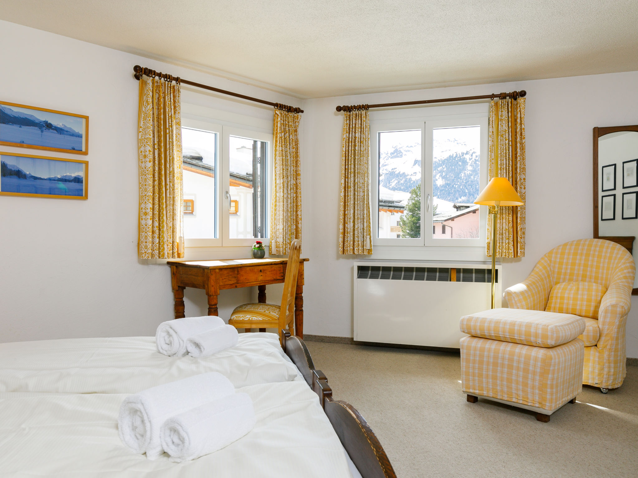 "Residenza Chesa Margun 24-5", apt. di 2 locali 75 m2 su 2 piani, al piano sottotetto. Arredamento funzionale: soggiorno/sala da pranzo con tavolo da pranzo e TV (satellite). Uscita sul balcone. Soppalco aperto con 2 letti (80 cm, lunghezza 180 cm). 1 camera matrimoniale (80 cm, lunghezza 180 cm). Uscita sul balcone. Cucina (4 punti cottura, forno, lavastoviglie). Vasca/WC. Balcone, esposizione sud. Mobili da terrazza. Vista sulle montagne e sulla località. A disposizione: Internet (wifi, gratis). Garage. Prego notare: adatto alle famiglie. Appartamento per non fumatori. Massimo 1 animale/cane consentito. Uno o più posti letto adibiti a zona notte si trovano in area aperta o di passaggio (come soppalco, corridoio, alcova e simili). CH7513.600.76