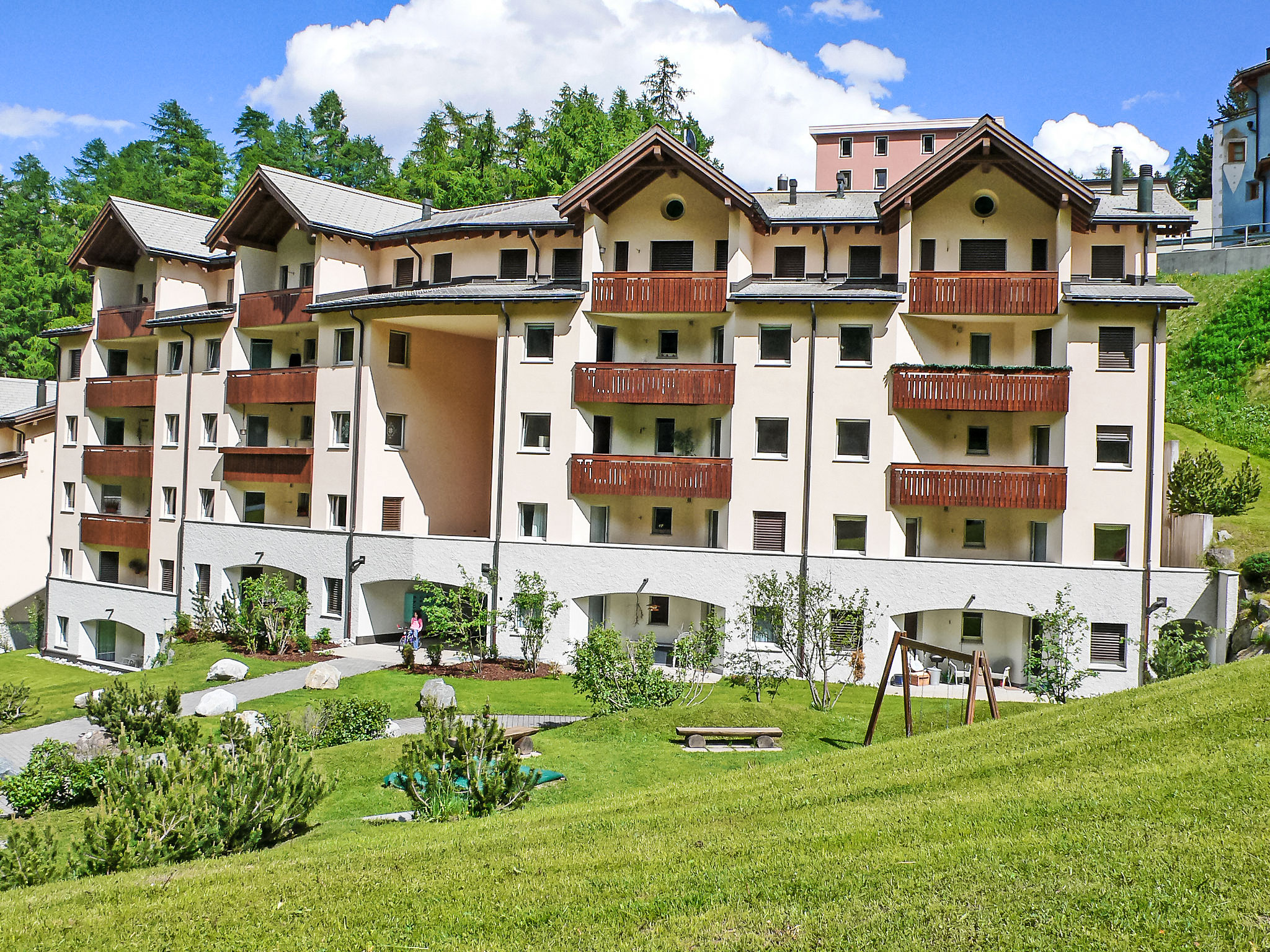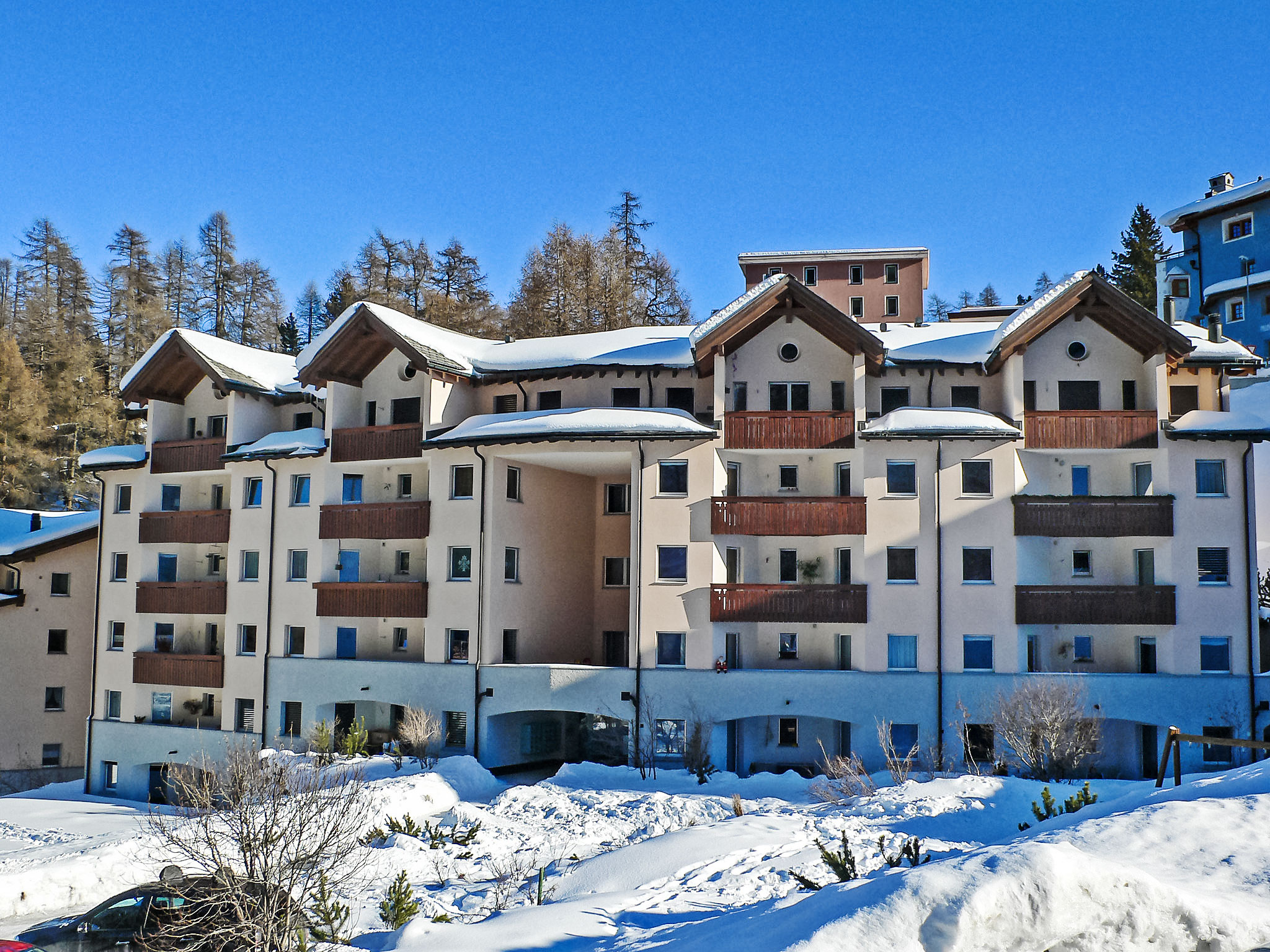 St. Moritz-Dorf: Casa plurifamiliare "Chesa Flora", piacevole. In periferia, a 700 m dal centro di St. Moritz Dorf, sul pendio, in una zona residenziale, a 1.7 km dal lago, a 2.1 km dall'area sciistica, in una strada senza uscita. Per uso privato: spazio giochi per bambini (scivolo, recinto con sabbia). Nella casa: ascensore, deposito sci, riscaldamento centralizzato. Autorimessa. Negozio 500 m, negozio alimentare 800 m, supermercato 1.9 km, ristorante 220 m, bar 800 m, panetteria 1 km, cafe 1 km, zona pedonale 700 m, noleggio biciclette 2.4 km, fermata bus "St. Moritz, Bären" 220 m, stazione ferroviaria "St. Moritz" 1.6 km, piscina coperta 2.8 km, piscina termale "Heilbadzentrum St. Moritz" 3 km, lago St. Moritzer See 1.7 km. Campo da golf (9 buche) 800 m, scuola di surf 7.4 km, tennis 3.1 km, tennis coperto 3.1 km, mini golf 2.8 km, maneggio 4.4 km, sentieri per passeggiate vicino alla casa 200 m, pista ciclabile 2.8 km, funicolare 3 km, funivia 950 m, sciovia 950 m, piste da sci 2.1 km, noleggio sci 950 m, fermata ski bus 220 m, scuola di sci, scuola di sci per bambini 950 m, pista per slitte 4.6 km, pista di fondo 2.8 km, pattinaggio 400 m, parco giochi 2.9 km. Attrazioni nelle vicinanze: Segantini Museum 1.7 km, Engadiner Museum 1.5 km, Mili Weber-Haus 4.5 km, Olympia Bob Run mit Museum 380 m, Nietzsche Museum in Sils-Maria 11.7 km. Rinomate località sciistiche: Corviglia Piz Nair 2.1 km, Corvatsch - Furtschellas 8.6 km, Diavolezza - Lagalb 18.6 km. Laghi famosi: St. Moritzer See 1.7 km, Silvaplaner See 7.4 km, Silser See 11.7 km. Sentieri escursionistici: Stazerwald & Stazersee, Corviglia Piz Nair, Muottas Muragl. La consegna chiavi è presso l‘agenzia Interhome a St Moritz.