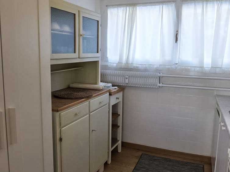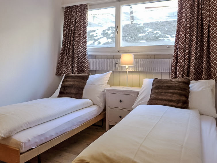 "Chesa Cripels I", apt. di 3 locali 75 m2 al 2. piano, esposizione est. Spazioso e luminoso, in parte restaurato nel 2016, arredamento moderno e accogliente: soggiorno/sala da pranzo con TV (satellite) (schermo piatto), DVD. 1 camera grande con 2 letti (90 cm, lunghezza 200 cm), doccia/bidet/WC. 1 camera piccola con 2 letti (90 cm, lunghezza 200 cm). Piccola cucina (4 punti cottura, forno, lavastoviglie, tostapane, bollitore elettrico, macchina da caffè elettrica, capsule per la macchina da caffè (Nespresso) extra). Doccia/WC. Pavimenti in parquet. Magnifica vista panoramica sul lago e sulle montagne. A disposizione: asciugacapelli. Internet (wifi, gratis). Garage nr. 4 nella proprietà, altezza 205 cm, larghezza 240 cm. Prego notare: adatto alle famiglie. Appartamento per non fumatori. Massimo 1 animale/cane consentito. No ascensore.