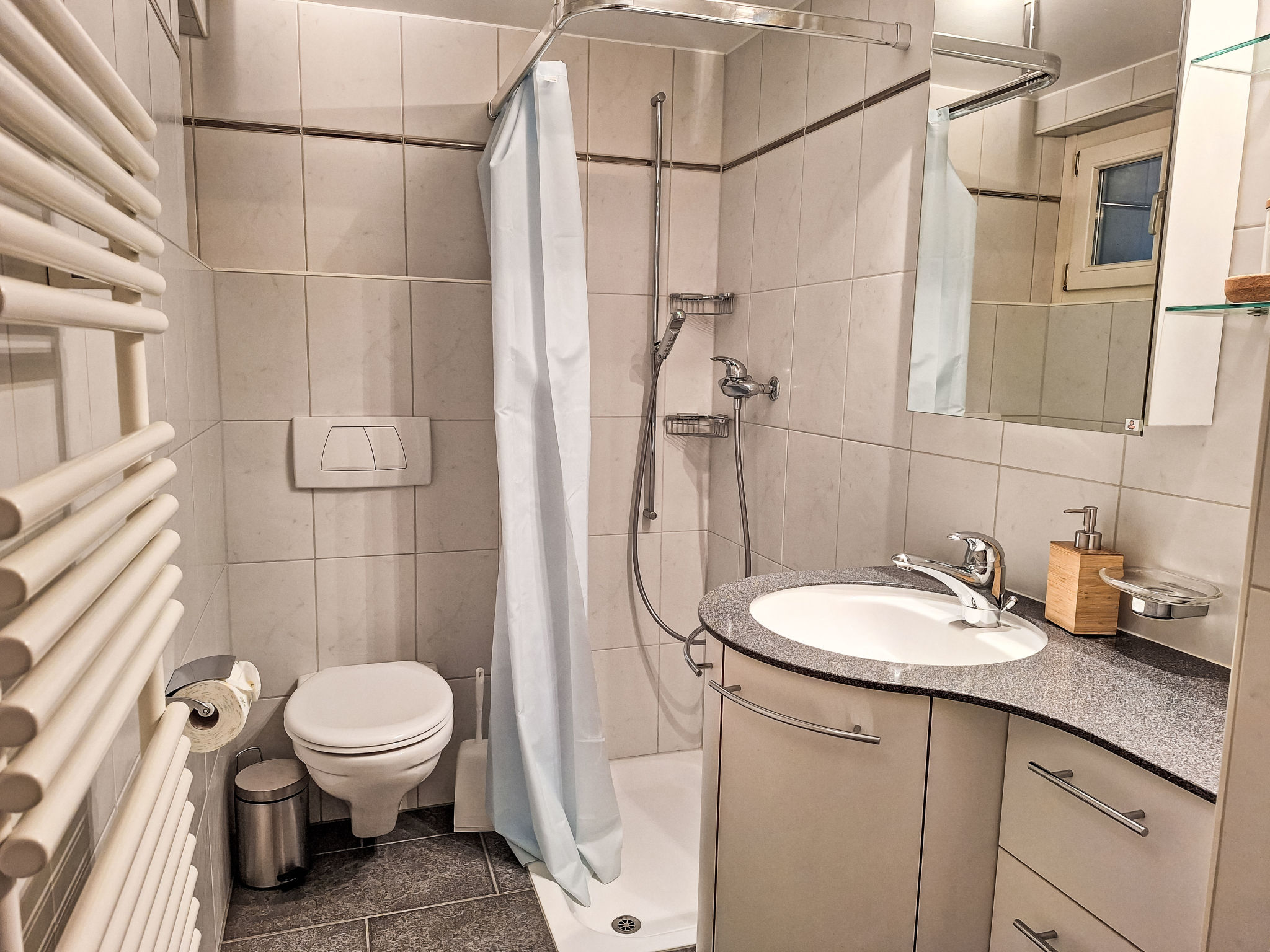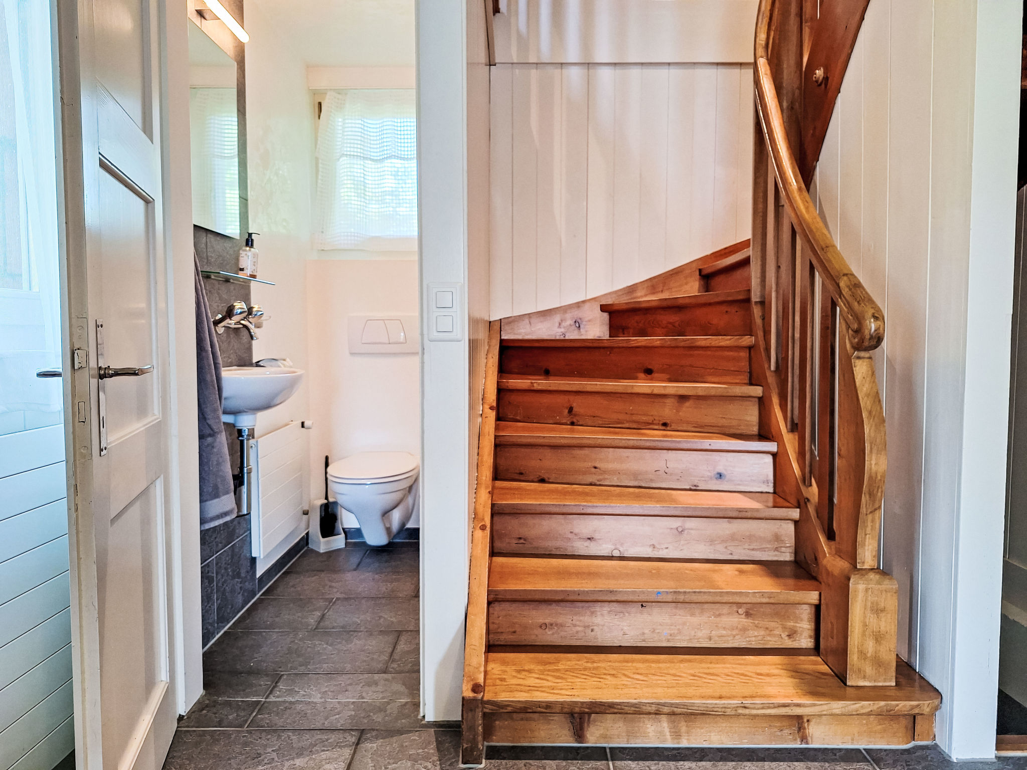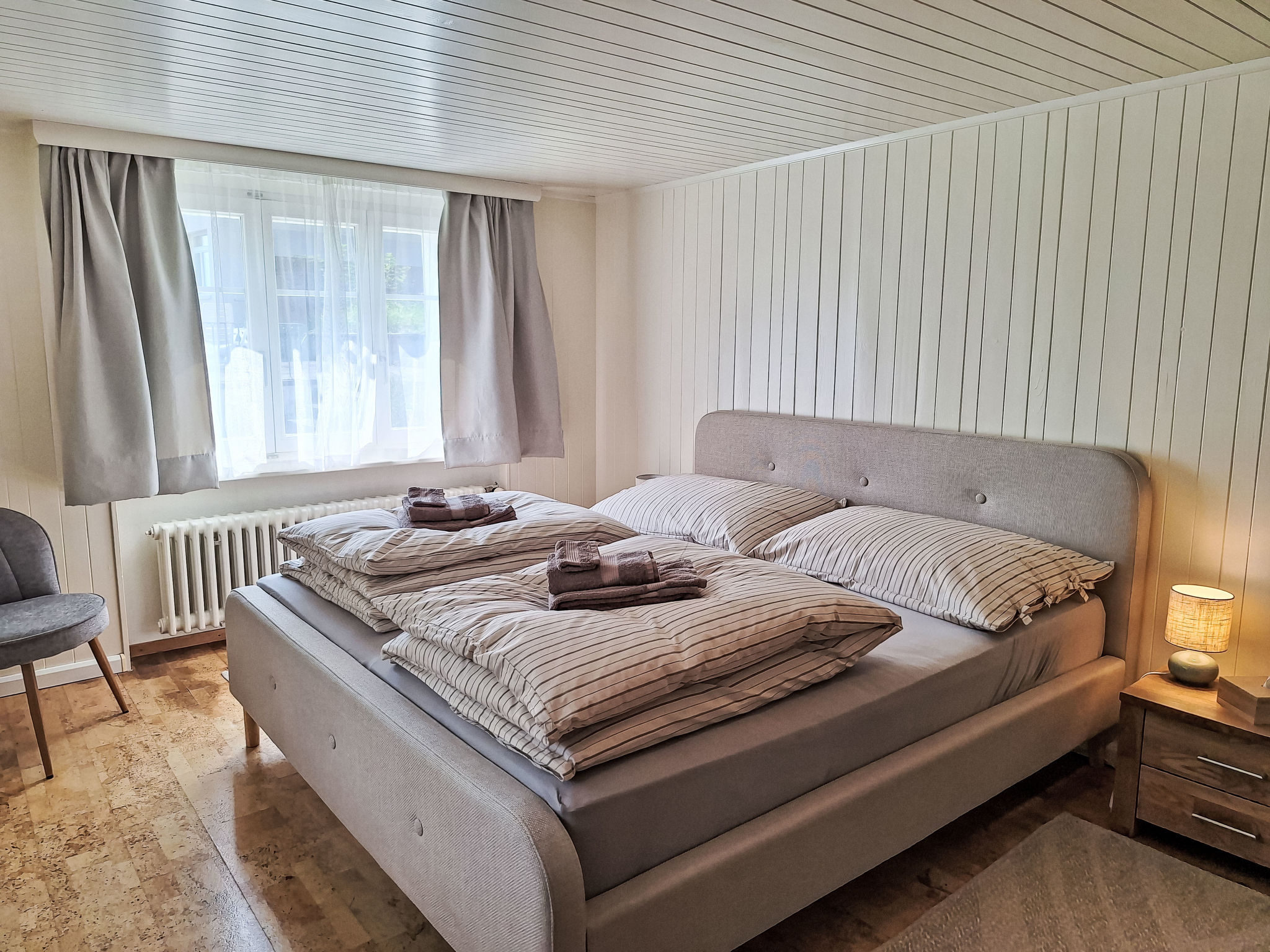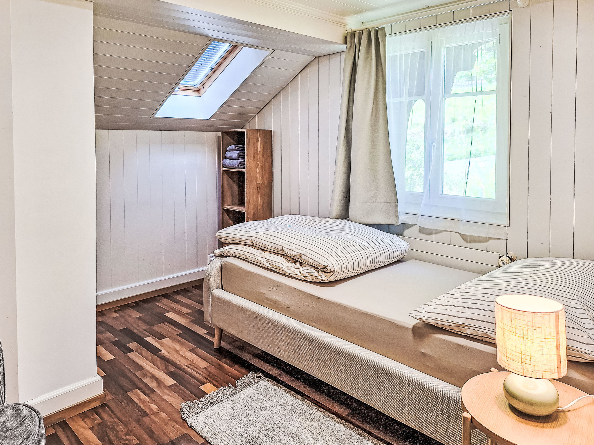 Chalet 7 locali su 3 piani. Spazioso e luminoso, arredamento confortevole e accogliente: soggiorno con stufa svedese e TV (via cavo). Sala da pranzo aperta con porta scorrevole. Uscita sul balcone. Cucina (forno, lavastoviglie, 4 piastre cottura in vetroceramica, tostapane, bollitore elettrico, forno a microonde, macchina da caffè elettrica, capsule per la macchina da caffè (Nespresso) extra, set per raclette). Uscita sul balcone. WC separato. Piano inferiore: 2 camere, ogni camera con 1 letto doppio (180 cm, lunghezza 200 cm). Doccia/WC. Piano superiore: 2 camere, ogni camera con 1 letto (90 cm, lunghezza 200 cm). 1 camera matrimoniale grande con 1 letto doppio (180 cm, lunghezza 200 cm). Uscita sul balcone. Vasca/doccia/WC, lavabo doppio. 2 balconi, esposizione sud, piccolo balcone, esposizione ovest. Magnifica vista sul lago, sulle montagne e sul paesaggio. A disposizione: asciugacapelli. Internet (wifi). Prego notare: casa per non fumatori. Allarme antifumo, estintore. La proprietà si trova direttamente sul lago e non è recintata.