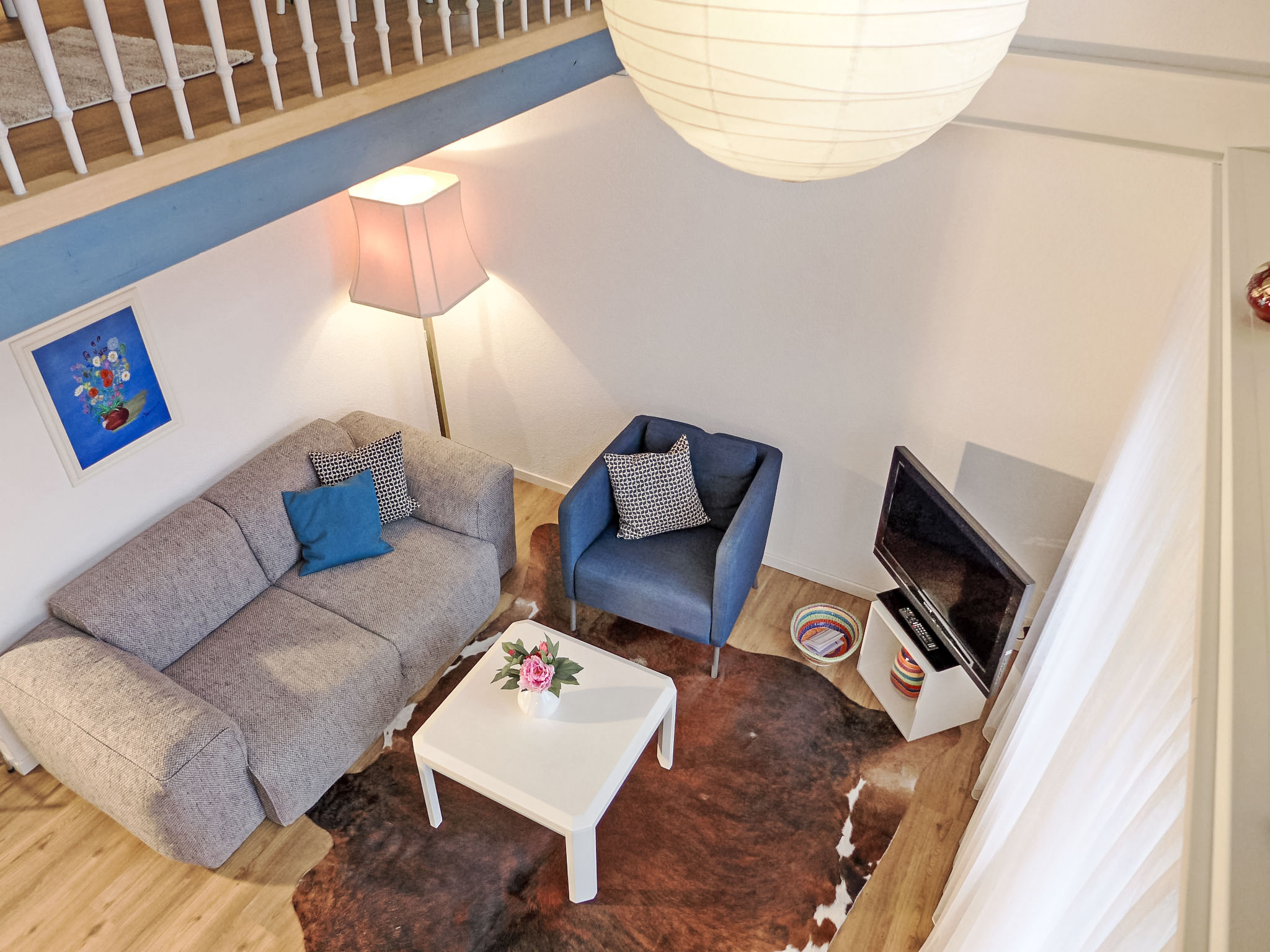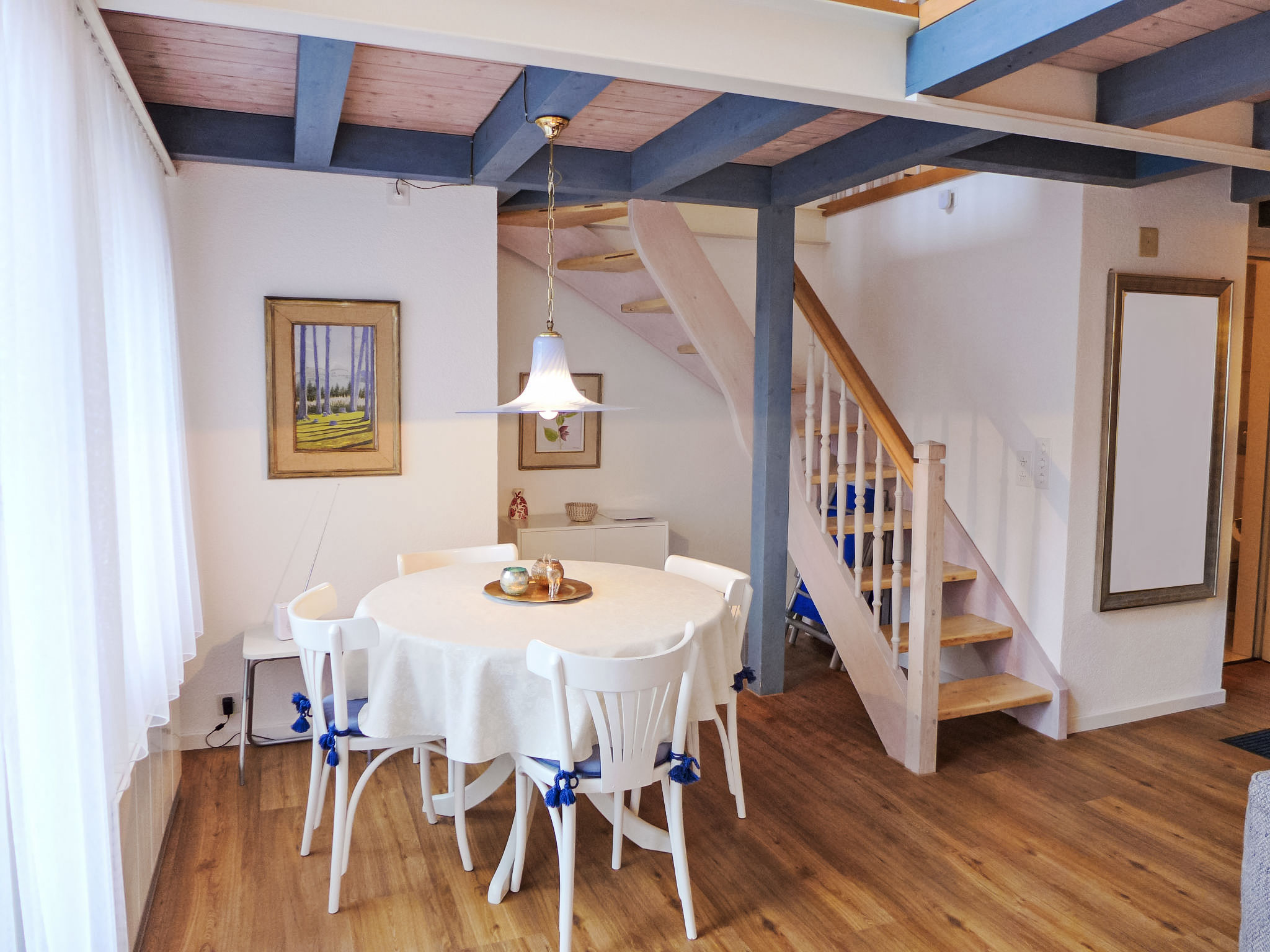 "Galeriestudio Jungfraublick" monolocale 58 m2 su 2 piani al 1. piano, esposizione sud. Spazioso e luminoso, arredamento molto confortevole e di buon gusto: soggiorno/sala da pranzo 17 m2, aperto con finestra panoramica con TV (via cavo), schermo piatto, radio, riscaldamento elettrico e tapparelle elettriche. Uscita sul balcone. Cucina 5 m2 (3 punti cottura, forno, lavastoviglie, tostapane, bollitore elettrico, forno a microonde, macchina da caffè elettrica, capsule per la macchina da caffè (Nespresso) extra). Vasca/WC. Piano superiore: (scala ripida) soppalco 23 m2, grande con finestra panoramica con 1 letto doppio (2 x 90 cm, lunghezza 200 cm), TV, TV (via cavo) e tapparelle elettriche. Balcone 7 m2, esposizione sud. Mobili da balcone. Magnifica vista sulle montagne e sulla località. A disposizione: ferro da stiro, asciugacapelli. Internet (wifi, gratis). Prego notare: Non adatto a bambini piccoli. Appartamento per non fumatori, senza parcheggio. Allarme antifumo.