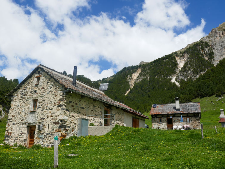 San Prou, Acquacalda 35 km da Malvaglia: Importante: L'energia è fornita da un pannello solare! Stufa, caldaia e frigorifero funzionano a gas. Gli apparecchi elettrici superiori a 250W non possono essere utilizzati. Casa singola "Rustico Edel", 1'940 m s.l.m., rustica, semplice, indipendente, circondata da prati. Nel quartiere Valle di Blenio, posizione tranquilla, soleggiata, elevata, a 20 m dal bosco, a 300 m dal fiume, immerso nel verde. In comune: terreno allo stato naturale, prato. Barbecue. Per uso privato: mobili da giardino. Nella casa: deposito biciclette. Accesso 200 m di strada (strada non asfaltata). Parcheggio presso la casa. Supermercato 17 km, ristorante 17 km, bar 17 km, panetteria 17 km, noleggio biciclette 17 km, fermata bus "Alpe Casaccia, Acquacalda 140" 300 m, stazione ferroviaria "Biasca FFS - SBB" 40 km. Sentieri per passeggiate vicino alla casa 5 m. Attrazioni nelle vicinanze: Castelli di Bellinzona UNESCO, Mercato, Museo della Valle di Blenio, Negrentino, archivio Donetta, Splash & SPA, Lido di Locarno, Swissminiature, Ascona, Locarno. Laghi famosi: Lago Retico, Lago di Luzzone, Lago Ritom, Lago Maggiore, Lago Lugano. Sentieri escursionistici: Lucomagno, Val di Blenio, Val Malvaglia, Greina. Prego notare: auto consigliata. Animali nei dintorni. Il complesso ha altre 1 chalet affittabili.