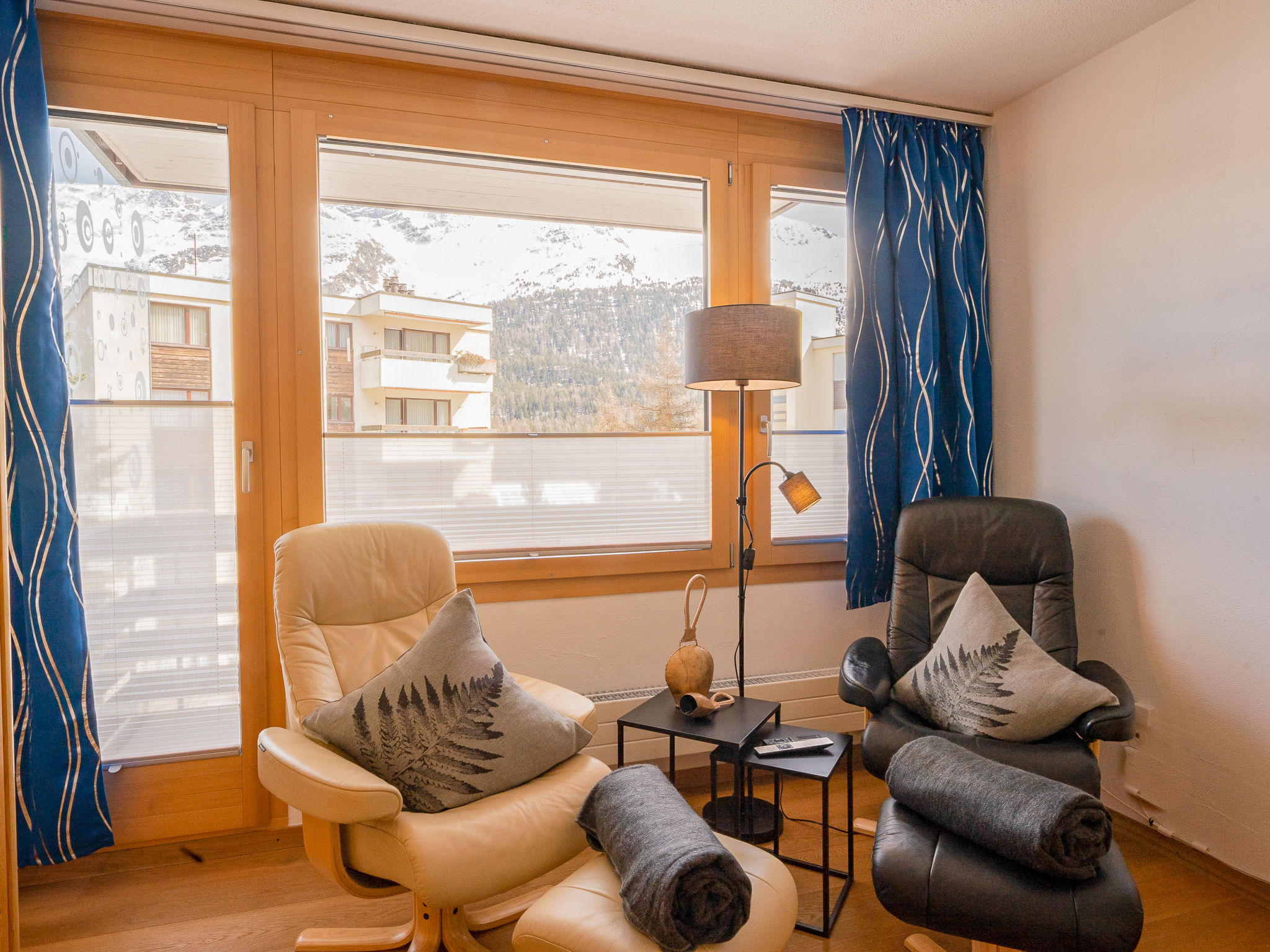 "Chesa Corvatsch 211 - Champfer" monolocale 30 m2 al 2. piano. Luminoso, arredamento accogliente e con arredo in legno: soggiorno/camera con tavolo da pranzo e TV (schermo piatto). Uscita sul balcone. Piccola cucina aperta nell'ingresso (2 piastre cottura in vetroceramica, tostapane, bollitore elettrico, forno a microonde, macchina da caffè elettrica, capsule per la macchina da caffè (Nespresso) extra) con 2 letti ad armadio (90 cm, lunghezza 200 cm). Vasca/WC. Riscaldamento. Pavimenti in legno. Mobili da balcone. Bella vista sulle montagne e sul paesaggio. A disposizione: ferro da stiro, asciugacapelli. Internet (wifi, gratis). Parcheggio nr. 211 (coperto), altezza 200 cm, larghezza 220 cm. Prego notare: appartamento sul cortile. Appartamento per non fumatori, casa per non fumatori.