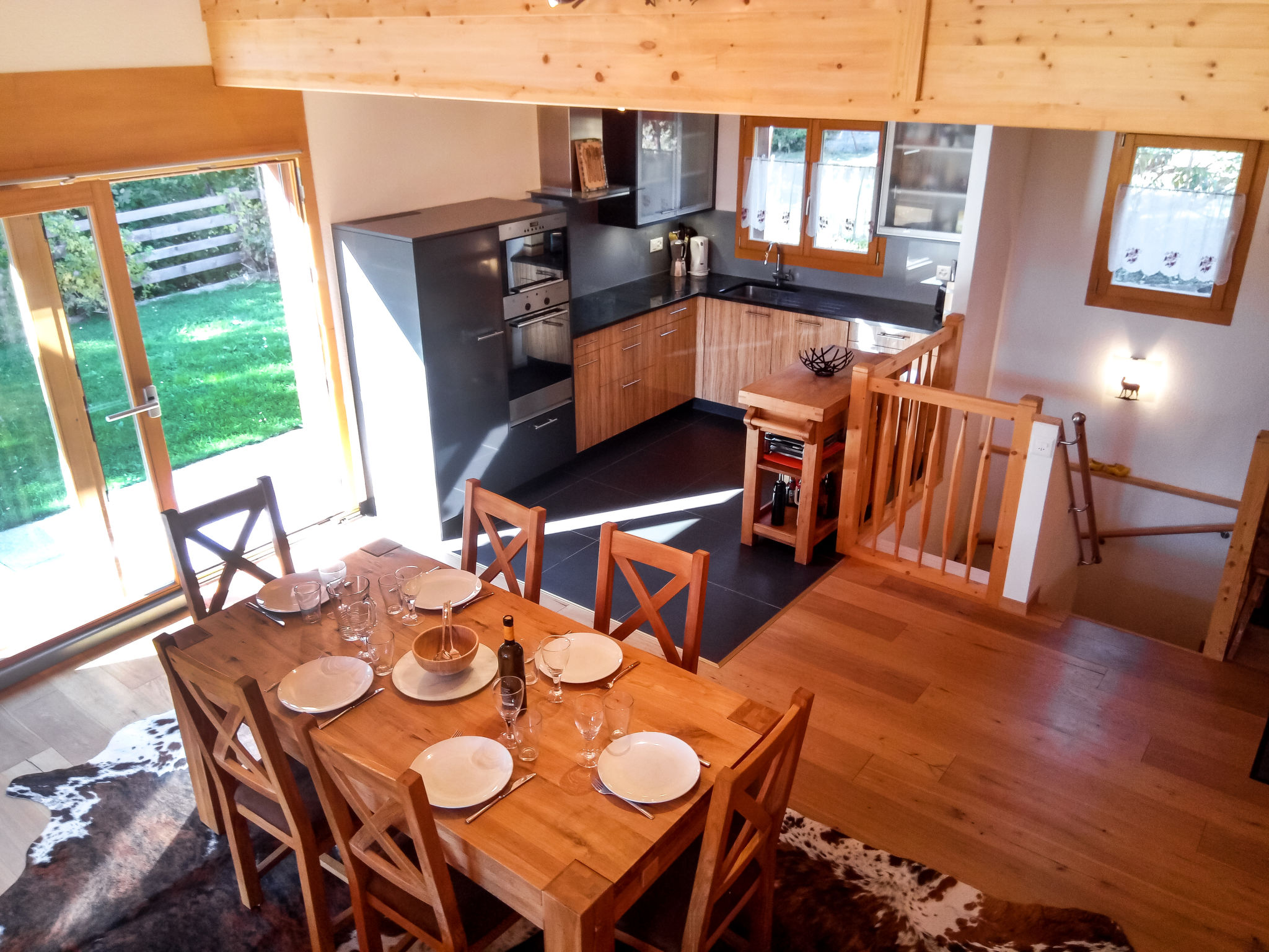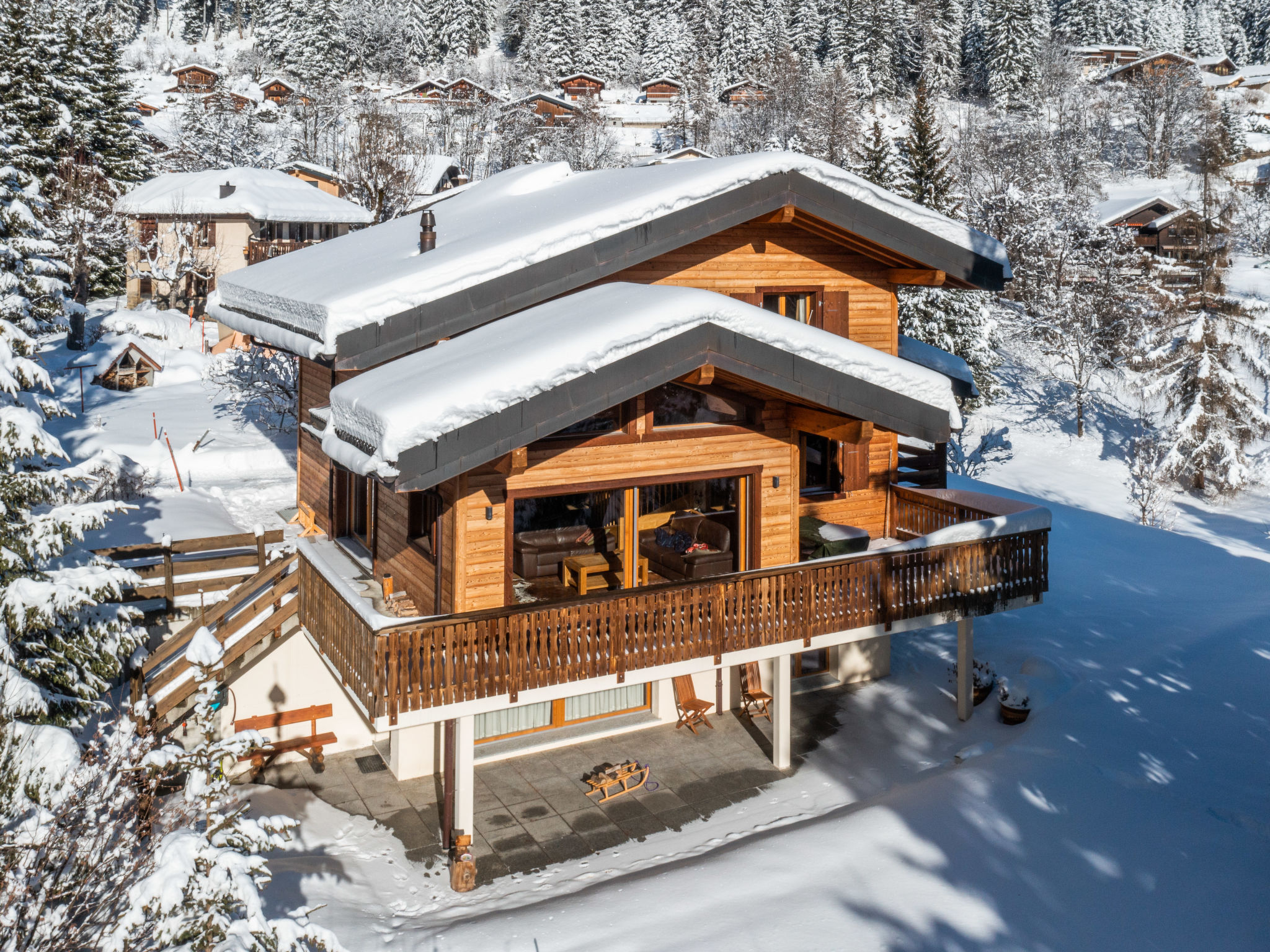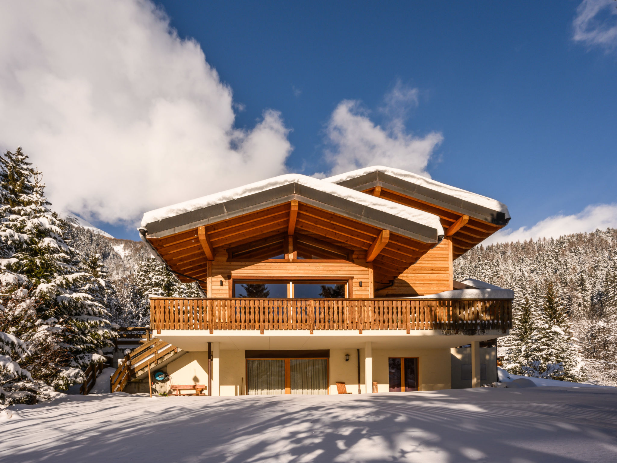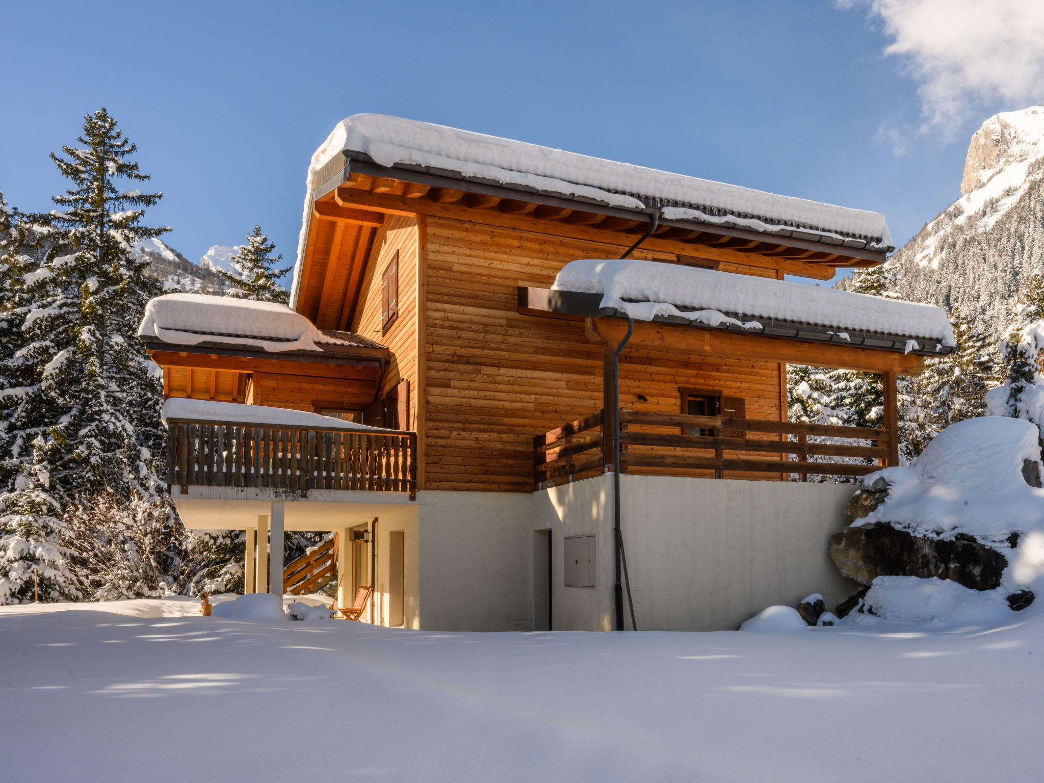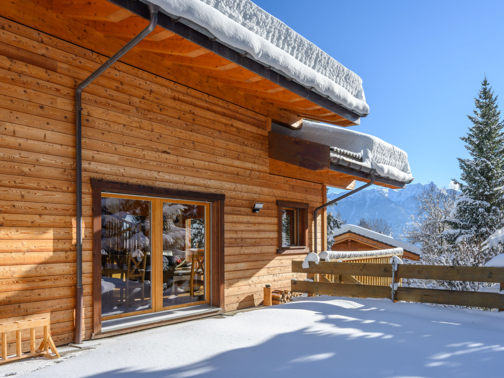 "Banksia", chalet 5 locali 180 m2 su 2 piani al 2. piano, esposizione sud-est. Spazioso, arredamento confortevole e di buon gusto: ingresso. Soggiorno/sala da pranzo grande con finestra panoramica con TV (via cavo), schermo piatto, DVD e stufa a legna. Uscita sul balcone, sulla terrazza, esposizione sud-est. 1 camera con 1 letto alla francese (180 cm, lunghezza 200 cm), WC separato, doccia, lavabo doppio e con vasca da bagno ad angolo. Cucina aperta (lavastoviglie, 4 piastre ad induzione, forno a microonde, macchina da caffè elettrica, capsule per la macchina da caffè (NESPRESSO) extra, set per raclette, set per fondue (chinoise, formaggio)). Piano superiore: 1 camera con 1 letto alla francese (180 cm, lunghezza 200 cm). 1 camera con 2 letti (90 cm, lunghezza 200 cm). 1 camera con 2 letti (90 cm, lunghezza 200 cm). Doccia/WC, lavabo doppio. Balcone 23 m2, esposizione sud-est, terrazza 15 m2, esposizione ovest. Mobili da terrazza. Bella vista sulle montagne e sulla località. A disposizione: lavatrice, asciugatrice, lettino per bimbi fino 3 anni. Internet (wifi, gratis). Parcheggio (coperto, 1 Auto) vicino alla casa. Prego notare: adatto alle famiglie. Appartamento per non fumatori.