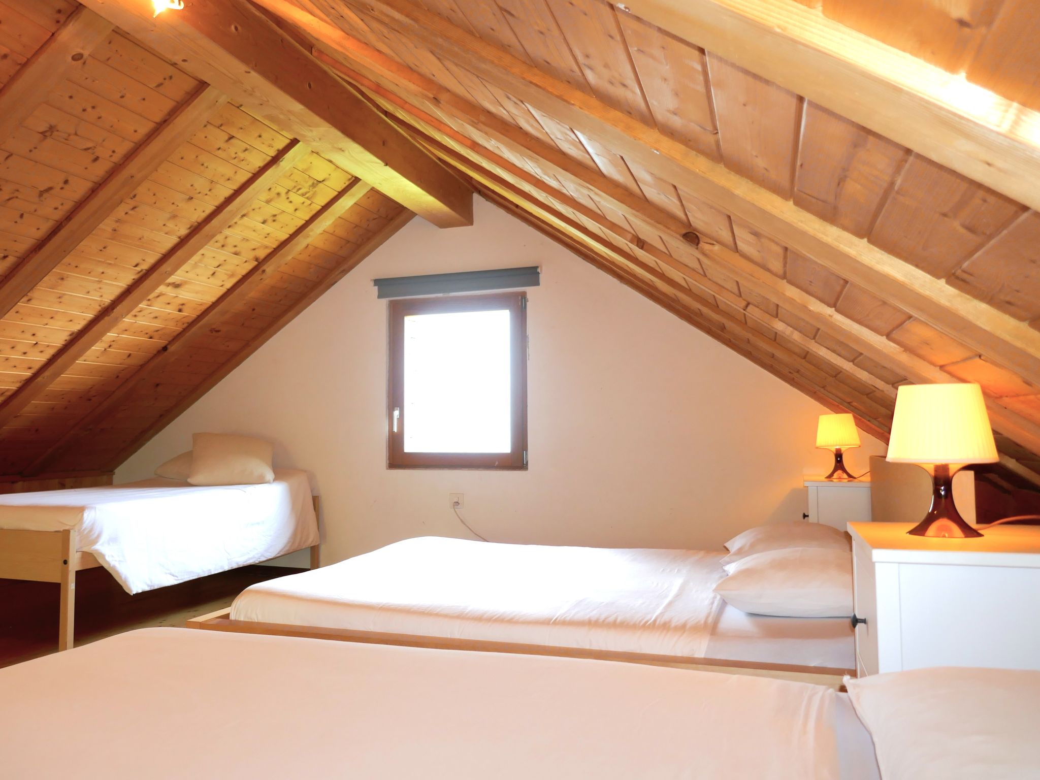 "Rustico Pamela", 2 locali casa di campagna 60 m2 su 2 piani, esposizione sud. Spazioso, in parte mansardato, arredamento semplice e rustico: soggiorno/sala da pranzo aperto con stufa svedese, TV (satellite), schermo piatto e radio. Uscita sulla terrazza, pergola. Cucina aperta (fornello a gas, 4 fuochi, set per fondue (formaggio)) con angolo pranzo. Doccia/WC. Riscaldamento a legna. Corrente da energia solare. Piano superiore: (scala senza ringhiera) soppalco mansardato, aperto con 1 letto alla francese (1 x 140 cm, lunghezza 200 cm), 1 letto doppio (1 x 160 cm, lunghezza 200 cm). Terrazza. Mobili da terrazza, barbecue, sedie a sdraio (2). Magnifica vista panoramica sulle montagne, sulla valle e sul paesaggio. A disposizione: seggiolone, lettino per bimbi fino 2 anni (extra). Prego notare: adatto alle famiglie. Casa per non fumatori. Massimo 1 animale/cane consentito. Uno o più posti letto adibiti a zona notte si trovano in area aperta o di passaggio (come soppalco, corridoio, alcova e simili). NL-00002080