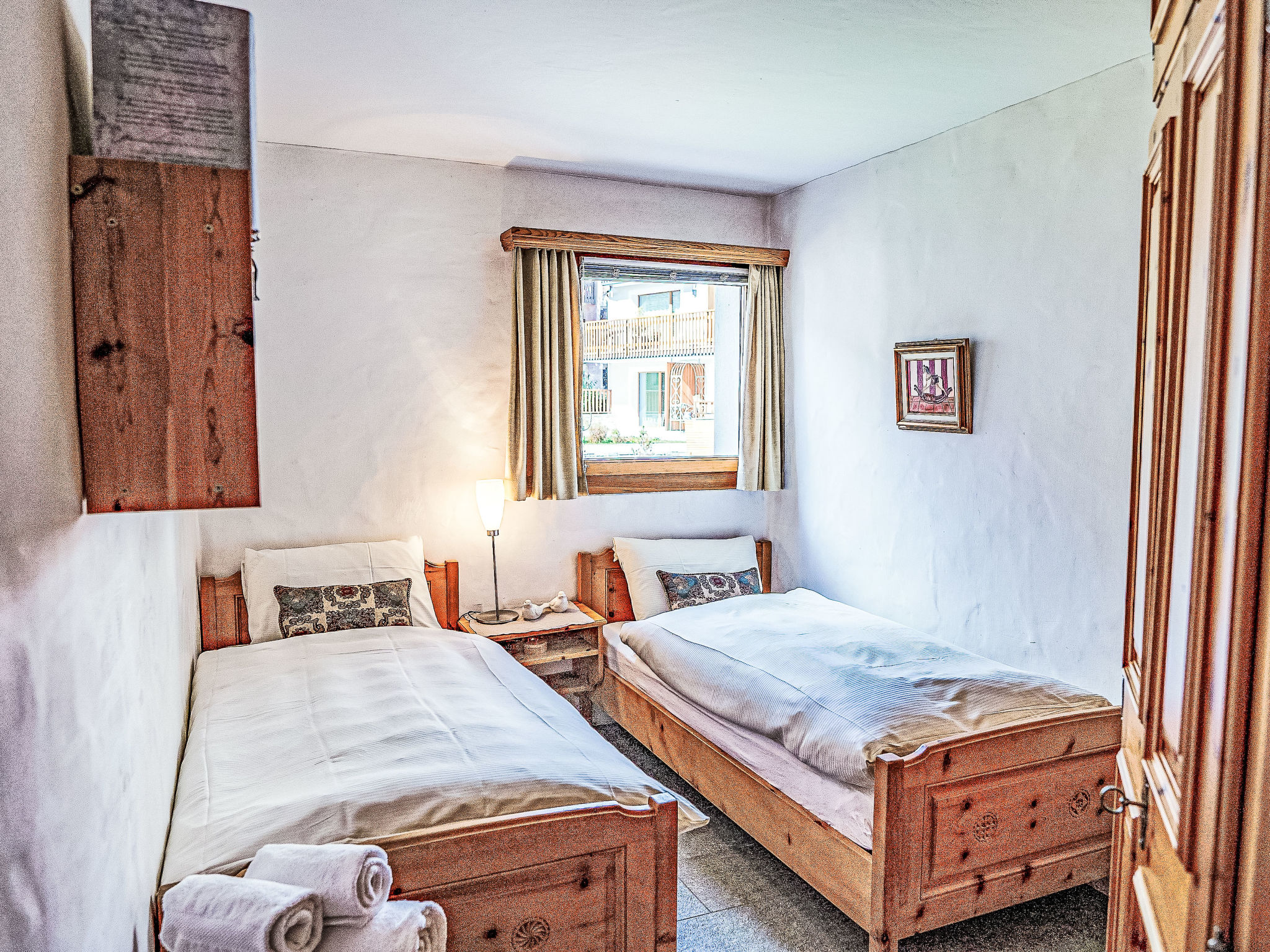 "Chesa Trais Dschembers", apt. di 3 locali 70 m2 al 1. piano. Arredamento confortevole e accogliente: soggiorno/sala da pranzo con camino e TV (schermo piatto). Uscita sul balcone. 1 camera con 1 letto doppio (2 x 90 cm, lunghezza 200 cm), vasca/WC. 1 camera con 2 letti (90 cm, lunghezza 200 cm). Cucina (forno, lavastoviglie, 4 piastre cottura in vetroceramica, tostapane, bollitore elettrico, forno a microonde, congelatore, macchina da caffè elettrica, capsule per la macchina da caffè (Nespresso) extra, set per fondue (formaggio)). Doccia/WC. Riscaldamento. Balcone. Mobili da balcone. Bella vista sulle montagne e sul paesaggio. A disposizione: ferro da stiro, asciugacapelli. Internet (wifi, gratis). Garage nr. 142 (1 Auto), altezza 215 cm, larghezza 220 cm. Prego notare: appartamento per non fumatori, casa per non fumatori. Massimo 1 animale/cane consentito. No ascensore.