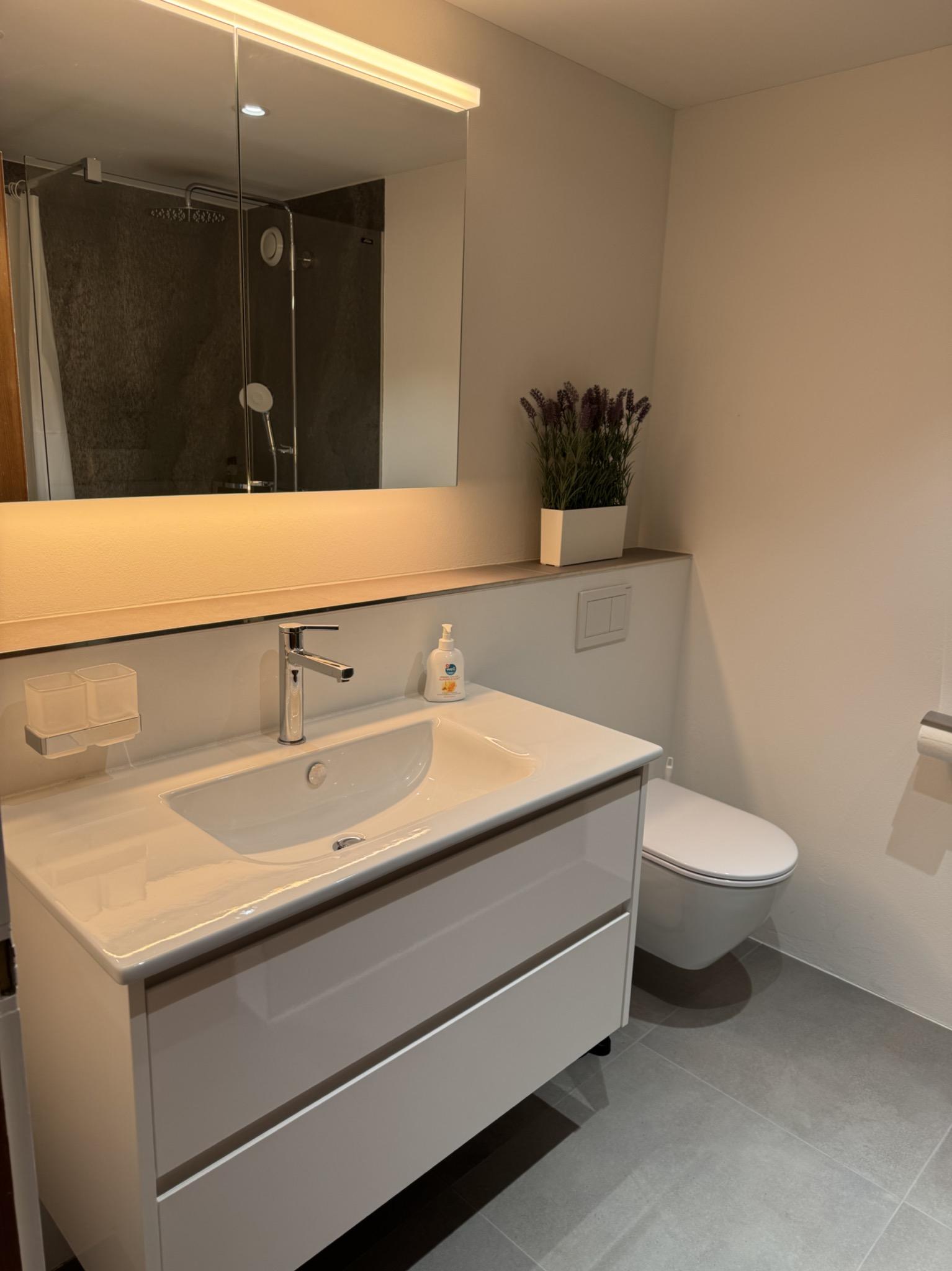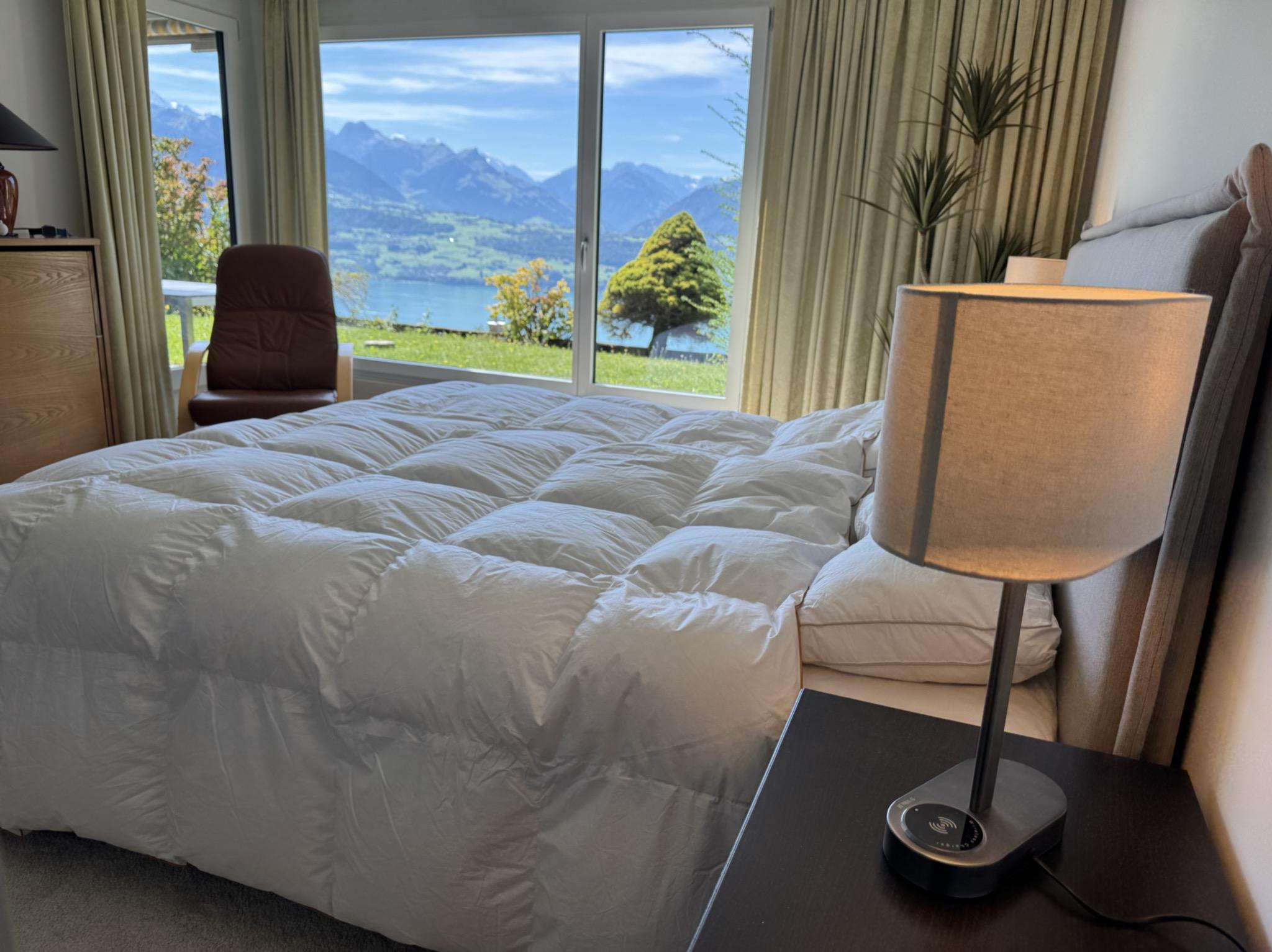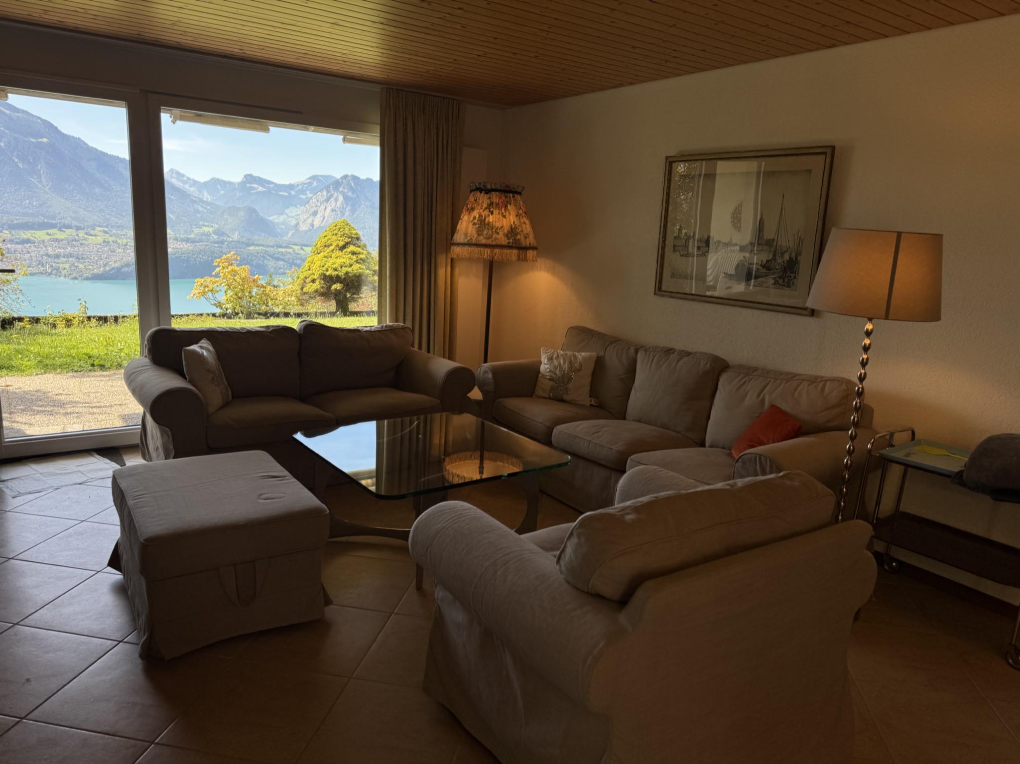 Appartamento confortevole di 3 1/2 stanze con cucina, 2 camere da letto matrimoniali, garage, grande terrazza e una meravigliosa vista panoramica sul lago e sulle montagne. La dimensione dell'appartamento è di 95m2.
