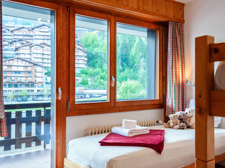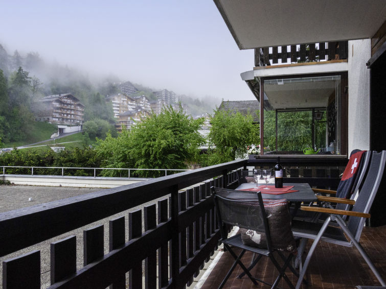 "Ecluses 2", apt. di 3 locali 62 m2 al 1. piano. In parte restaurato nel 2026, arredamento confortevole: soggiorno/sala da pranzo con camino (solo con funzione decorativa), TV (via cavo). Uscita sul balcone. 1 camera con 1 letto (90 cm, lunghezza 190 cm), 1 x 2 letti a castello (90 cm, lunghezza 190 cm). Uscita sul balcone, esposizione sud. 1 camera con 1 letto alla francese (160 cm, lunghezza 190 cm). Uscita sul balcone, esposizione sud. Cucina aperta (3 punti cottura, forno, tostapane, bollitore elettrico, set per fondue (chinoise, formaggio)). Vasca/WC, WC separato. Balcone, esposizione sud. Mobili da balcone. Vista sulla località. A disposizione: asciugacapelli. Internet (wifi, gratis). Parcheggio nr. 2 (coperto), altezza 270 cm, larghezza 240 cm. Prego notare: appartamento per non fumatori.