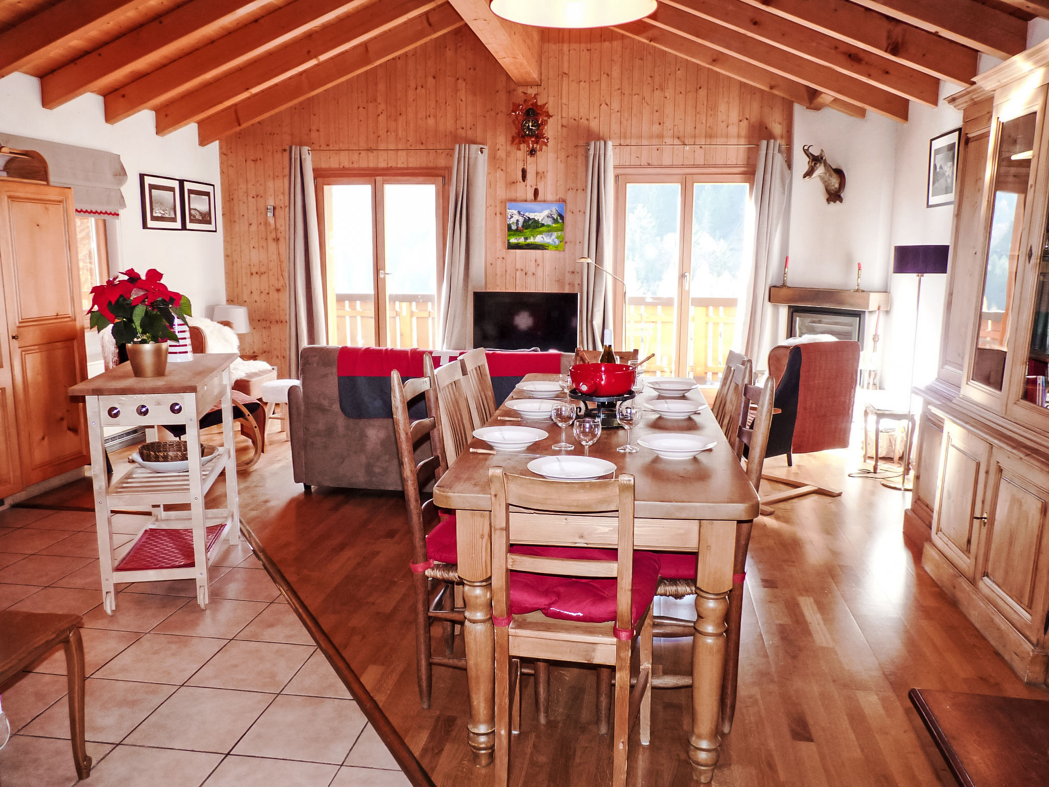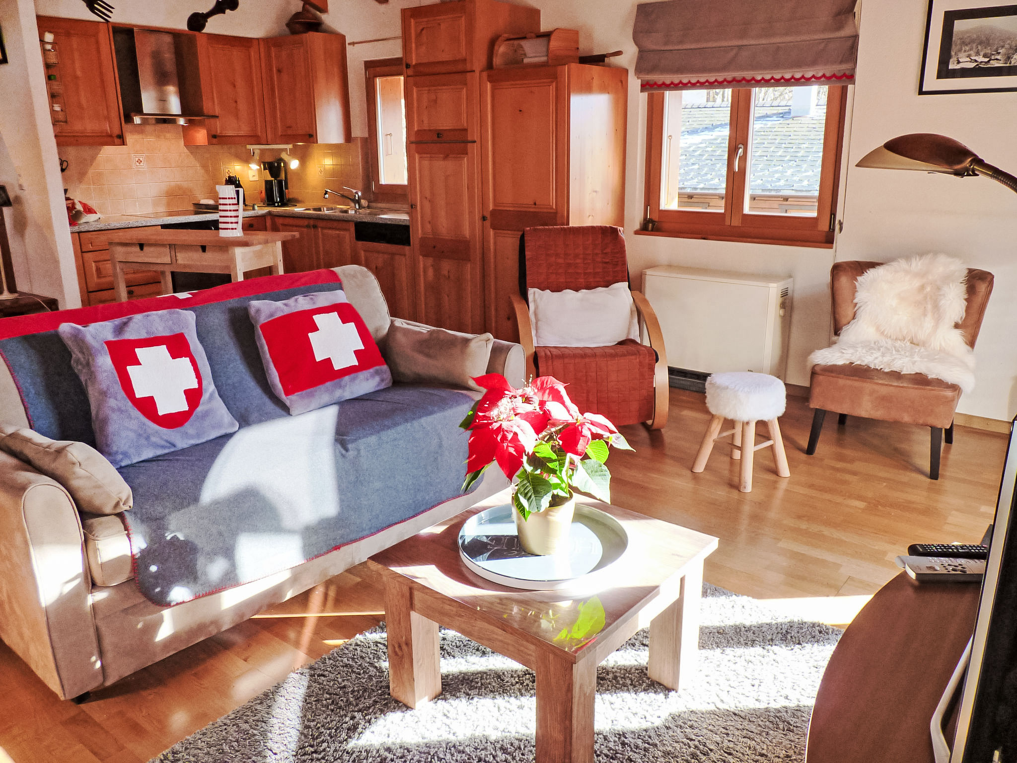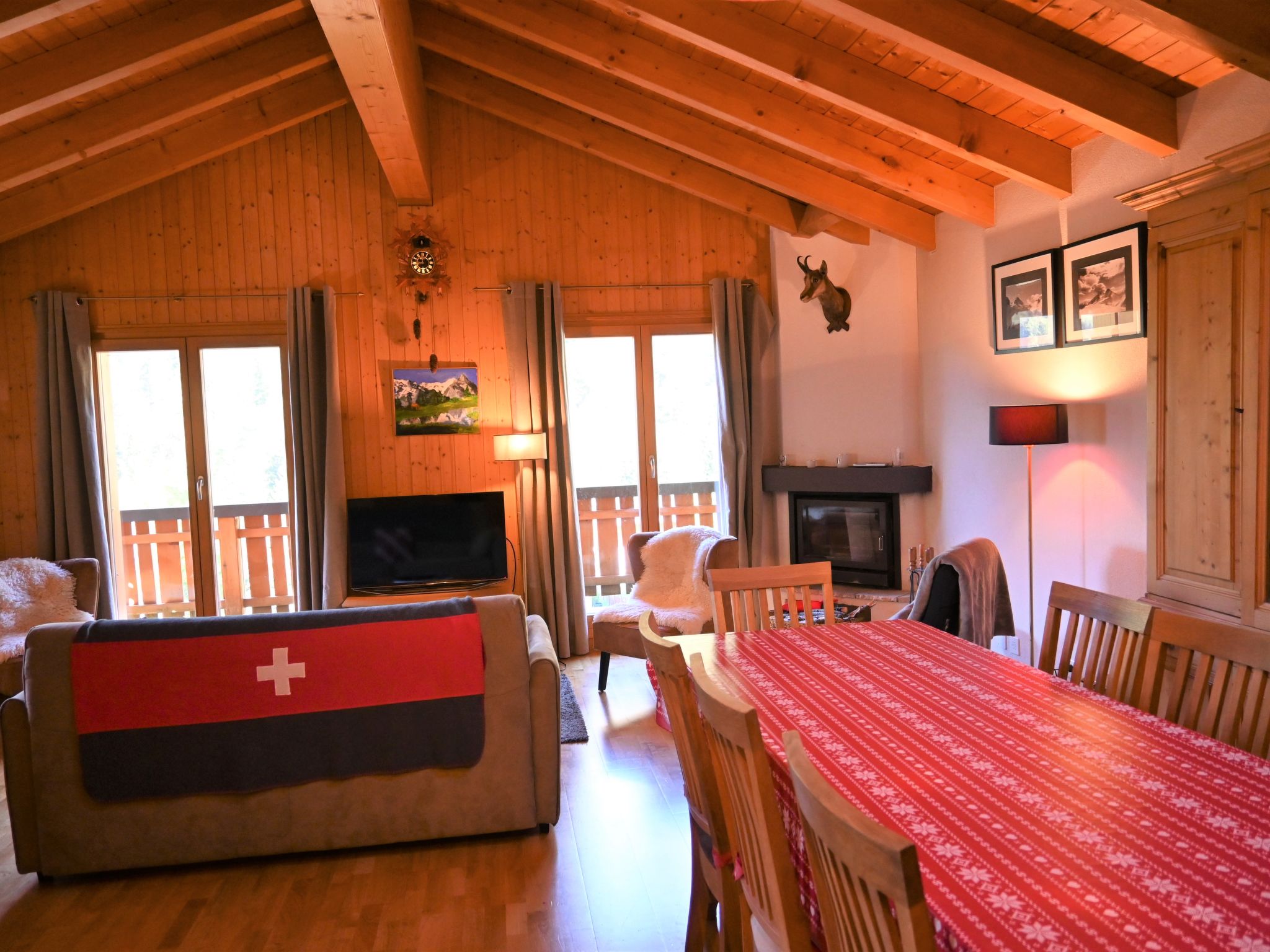 "Ropiar", chalet 5 locali 150 m2 su 2 piani, esposizione sud-ovest. Arredamento confortevole e gradevole: soggiorno/sala da pranzo grande con camino, tavolo da pranzo, TV (via cavo) e schermo piatto. Uscita sul balcone, esposizione sud-ovest. 1 camera con 2 letti (90 cm, lunghezza 190 cm). Uscita sulla terrazza, esposizione nord. Grande cucina aperta (forno, lavastoviglie, 4 piastre cottura in vetroceramica, forno a microonde, macchina da caffè elettrica, set per raclette, set per fondue (formaggio)). Doccia/WC. Piano inferiore: 1 camera con 1 letto doppio (2 x 90 cm, lunghezza 200 cm). Uscita sulla terrazza, esposizione sud. 1 camera con 1 letto doppio (2 x 90 cm, lunghezza 200 cm). Uscita sulla terrazza, esposizione sud. 1 camera con 1 x 2 letti a castello (90 cm, lunghezza 200 cm). Vasca/WC. Riscaldamento elettrico. Balcone 7 m2, esposizione sud-ovest, prato 14 m2. Mobili da terrazza, mobili da balcone, barbecue (portatile), sedie a sdraio (2). Magnifica vista sulle montagne. A disposizione: lavatrice, ferro da stiro, asciugacapelli. Internet (wifi, gratis). Parcheggio (3 Auto) vicino alla casa. Prego notare: appartamento per non fumatori. Gatti non ammessi.