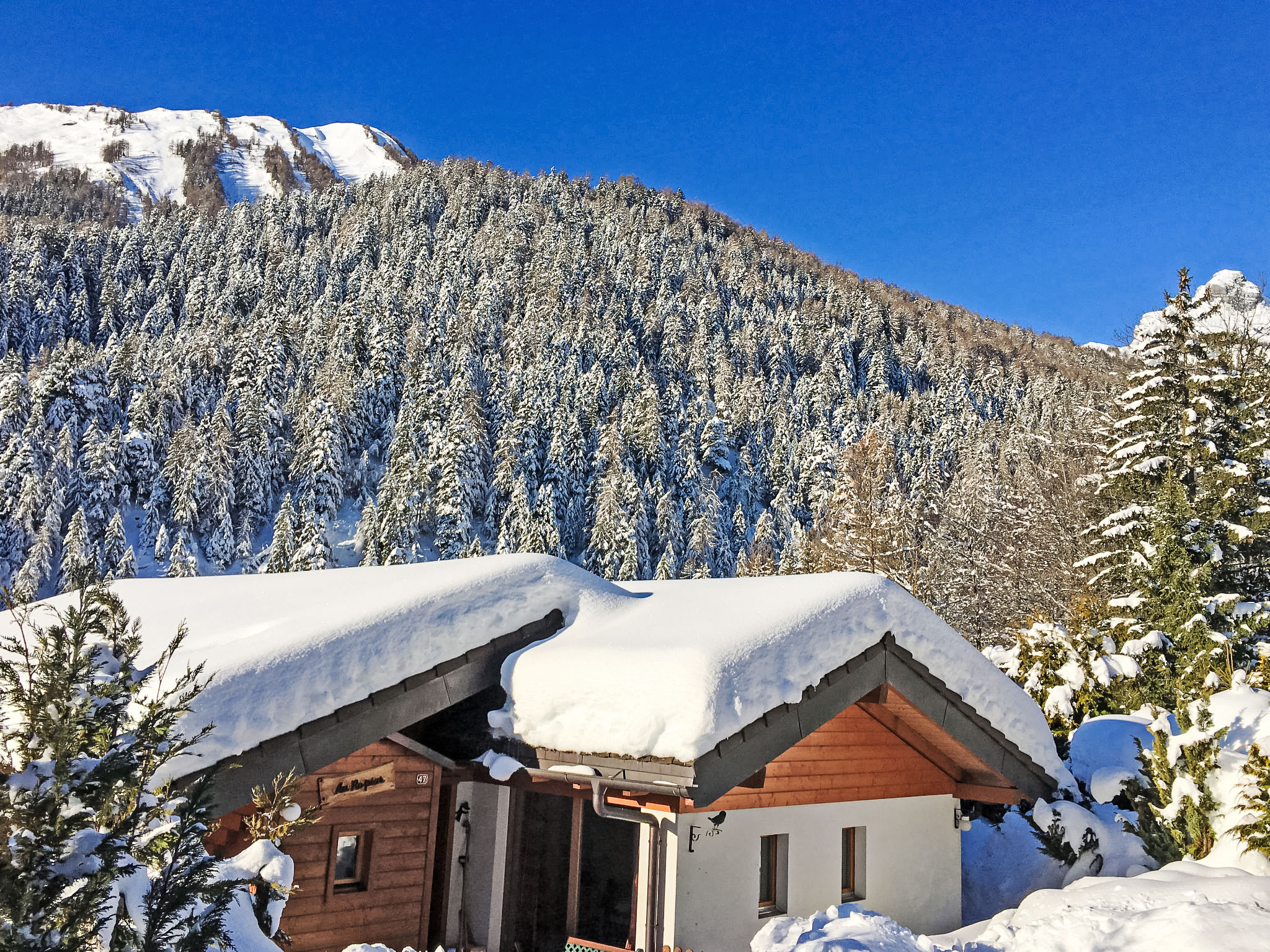 Ovronnaz: Chalet "Ropiar", piacevole su 2 piani, circondato da alberi. Nella frazione Chemin du Bisse, posizione tranquilla, soleggiata, a 1.8 km dall'area sciistica, in una strada senza uscita, immerso nel verde, esposizione sud-ovest. Per uso privato: terreno, prato 14 m2. Nella casa: deposito sci. Accesso fino alla casa. Parcheggio (per 3 auto, numero posti limitato, in inverno). Negozio alimentare 1 km, ristorante 650 m, panetteria 1 km, cafe 650 m, fermata bus "Morthey" 650 m, stazione ferroviaria "Riddes" 10.5 km, piscina termale 1.4 km. Tennis 1.3 km, noleggio sci 100 m, fermata ski bus 350 m, scuola di sci 100 m, pista di fondo 2.4 km. Prego notare: auto consigliata. Servizio Skibus gratuito per il comprensorio sciistico d'Ovronnaz. Prego notare: autostrada 9.7 km dalla casa.