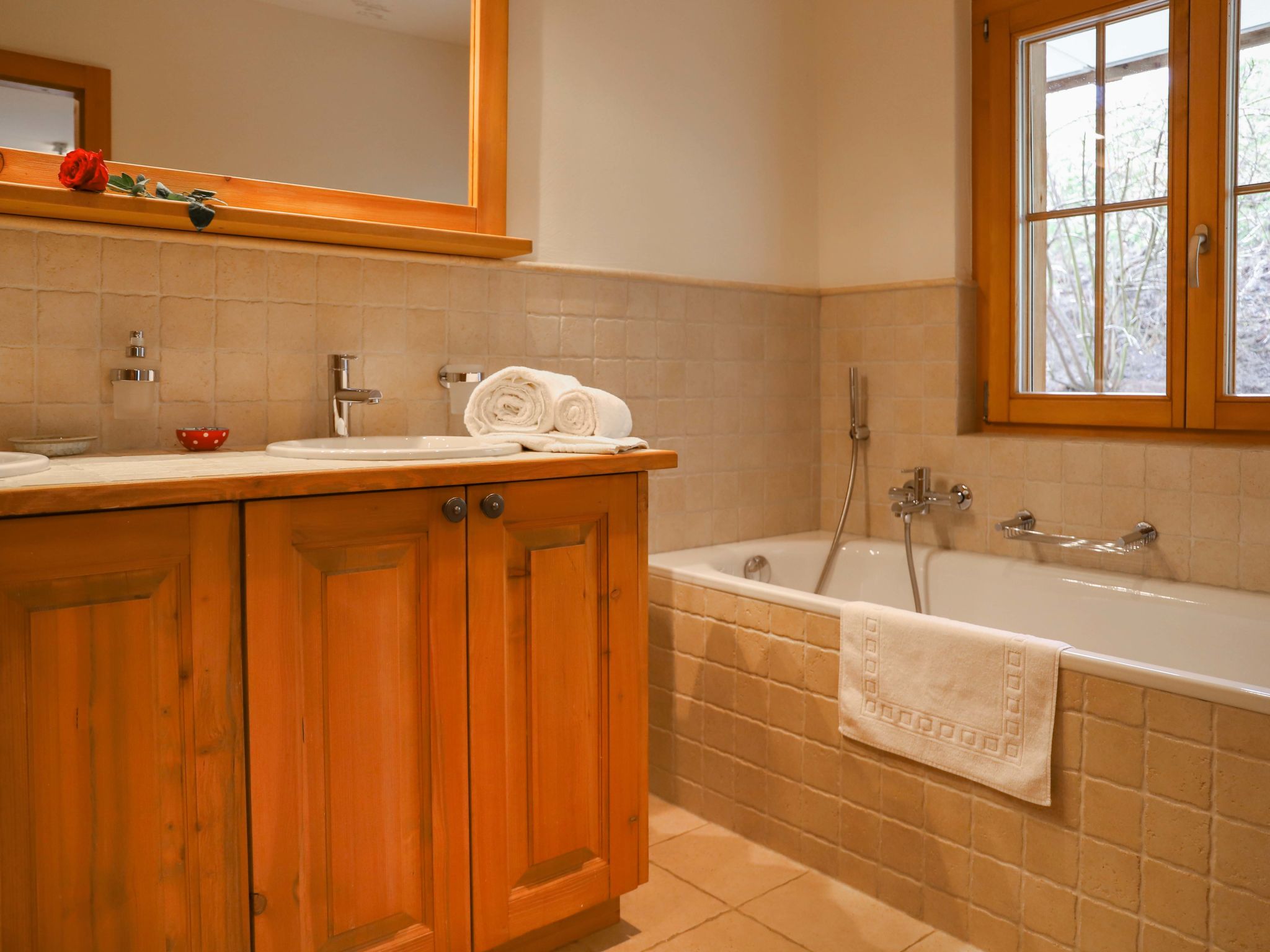 "Terrasses du Paradis 5B", apt. di 4 locali 120 m2 al 2. piano. Spazioso, arredamento di buon gusto e accogliente: soggiorno/sala da pranzo con camino e TV (via cavo). Uscita sul balcone. 1 camera con 1 letto alla francese (160 cm, lunghezza 200 cm), vasca/doccia/WC, TV e DVD. Uscita sul balcone. 1 camera con 1 letto alla francese (160 cm, lunghezza 200 cm). Uscita sul balcone. 1 camera con 1 letto alla francese (140 cm, lunghezza 200 cm). Uscita sul balcone. Cucina aperta (forno, lavastoviglie, 4 piastre cottura in vetroceramica, tostapane, bollitore elettrico, forno a microonde, congelatore, macchina da caffè elettrica, capsule per la macchina da caffè (nespresso) extra, set per raclette, set per fondue (formaggio)). Vasca/WC. Grande balcone, esposizione nord e esposizione ovest. Splendida vista sulle montagne e sulla valle. A disposizione: lavatrice, asciugatrice, seggiolone. Internet (wifi, gratis). Parcheggio nr. 5b, garage nr. 5b, altezza 190 cm, larghezza 250 cm. Prego notare: appartamento per non fumatori. Massimo 1 animale/cane consentito.