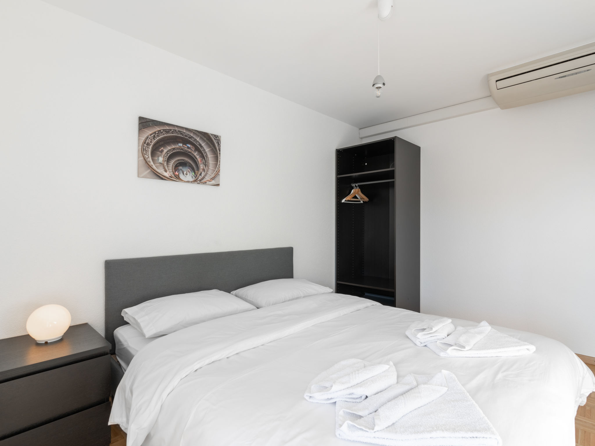 "Vasco de Gama B11/R", apt. di 4 locali 142 m2 su 2 piani, al pianterreno. Arredamento confortevole e di buon gusto: soggiorno/sala da pranzo con angolo pranzo e TV (via cavo). Uscita sulla terrazza. Cucina aperta (4 punti cottura, forno, lavastoviglie, 4 piastre cottura in vetroceramica, tostapane, bollitore elettrico, forno a microonde, congelatore, macchina da caffè elettrica, capsule per la macchina da caffè (Nespresso) extra). WC separato. Piano superiore: 1 camera grande con 1 letto doppio (160 cm, lunghezza 200 cm), vasca/WC. Uscita sul balcone. 1 camera piccola con 1 letto doppio (140 cm, lunghezza 200 cm) (2 pers.). 1 camera con 1 letto doppio (160 cm, lunghezza 200 cm). Doccia/WC. Mobili da terrazza, barbecue (portatile). Bella vista sul paesaggio e sul canale. A disposizione: lavatrice, asciugatrice, ferro da stiro, seggiolone, lettino per bimbi fino 3 anni (extra), asciugacapelli. Internet (wifi, gratis). Parcheggio nr. 48 (coperto). Prego notare: appartamento per non fumatori. Massimo 1 animale/cane di piccola taglia consentito.