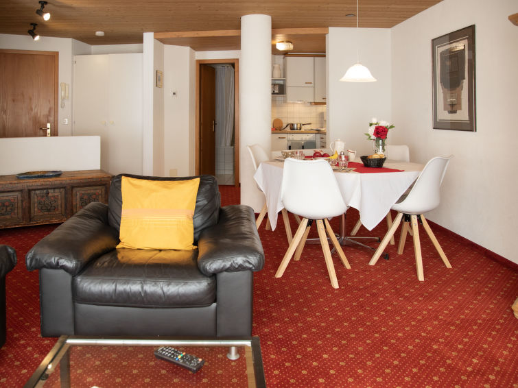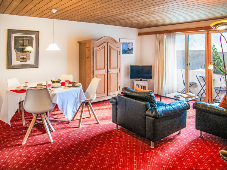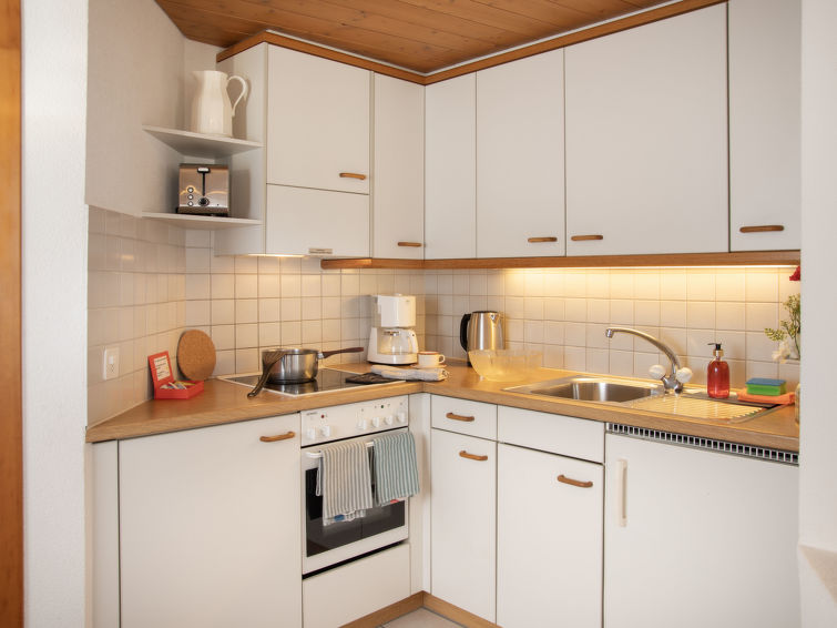 Apt. di 2 locali 47 m2 al 1. piano, esposizione sud. Soggiorno/sala da pranzo con TV (via cavo) (schermo piatto). 1 camera matrimoniale. Cucina aperta (forno, 4 piastre cottura in vetroceramica, tostapane, bollitore elettrico, macchina da caffè elettrica). Vasca/WC. Piccolo balcone, esposizione sud. Bella vista sulle montagne e Eiger. A disposizione: asciugacapelli. Internet (wifi, gratis). Prego notare: appartamento per non fumatori. Massimo 1 animale/cane consentito. Alla reception è possibile prendere in prestito un set per fonduta (carne o formaggio) e un forno per raclette. Balcone molto stretto. Nessun mobile da balcone.