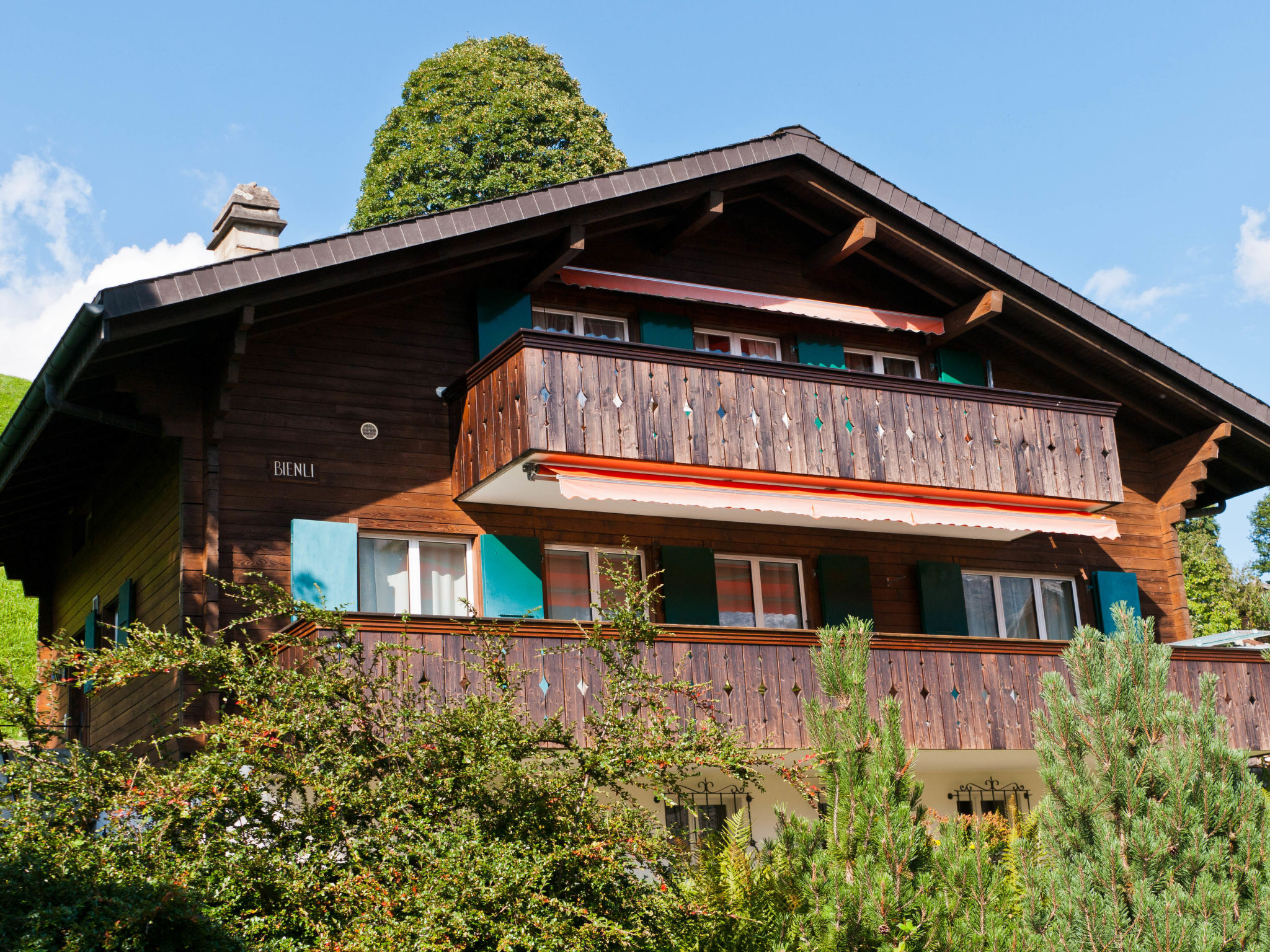 "Chalet Bienli Oben", apt. di 3 locali al piano sottotetto, esposizione sud. Oggetto adatto a 4 adulti + 2 bambini. In parte mansardato, in parte restaurato nel 2024, arredamento accogliente e con arredo in legno: soggiorno/camera mansardato, aperto con 1 letto doppio (160 cm, lunghezza 200 cm), camino (solo con funzione decorativa), tavolo da pranzo e TV (via cavo). Uscita sul balcone, esposizione sud. 1 camera mansardata con 1 letto doppio (2 x 80 cm, lunghezza 200 cm). Uscita sul balcone. 1 camera per bambini mansardata piccola con 2 letti (90 cm, lunghezza 200 cm). Cucina aperta (forno, lavastoviglie, 4 piastre cottura in vetroceramica, tostapane, bollitore elettrico, forno a microonde, macchina da caffè elettrica, set per raclette, set per fondue (chinoise, formaggio)). Vasca/WC. Moquette. Grande balcone, esposizione sud. Mobili da balcone. Magnifica vista panoramica sulle montagne. A disposizione: asciugacapelli. Internet (wifi, gratis). Parcheggio a 50 m. Prego notare: appartamento per non fumatori. Estintore.