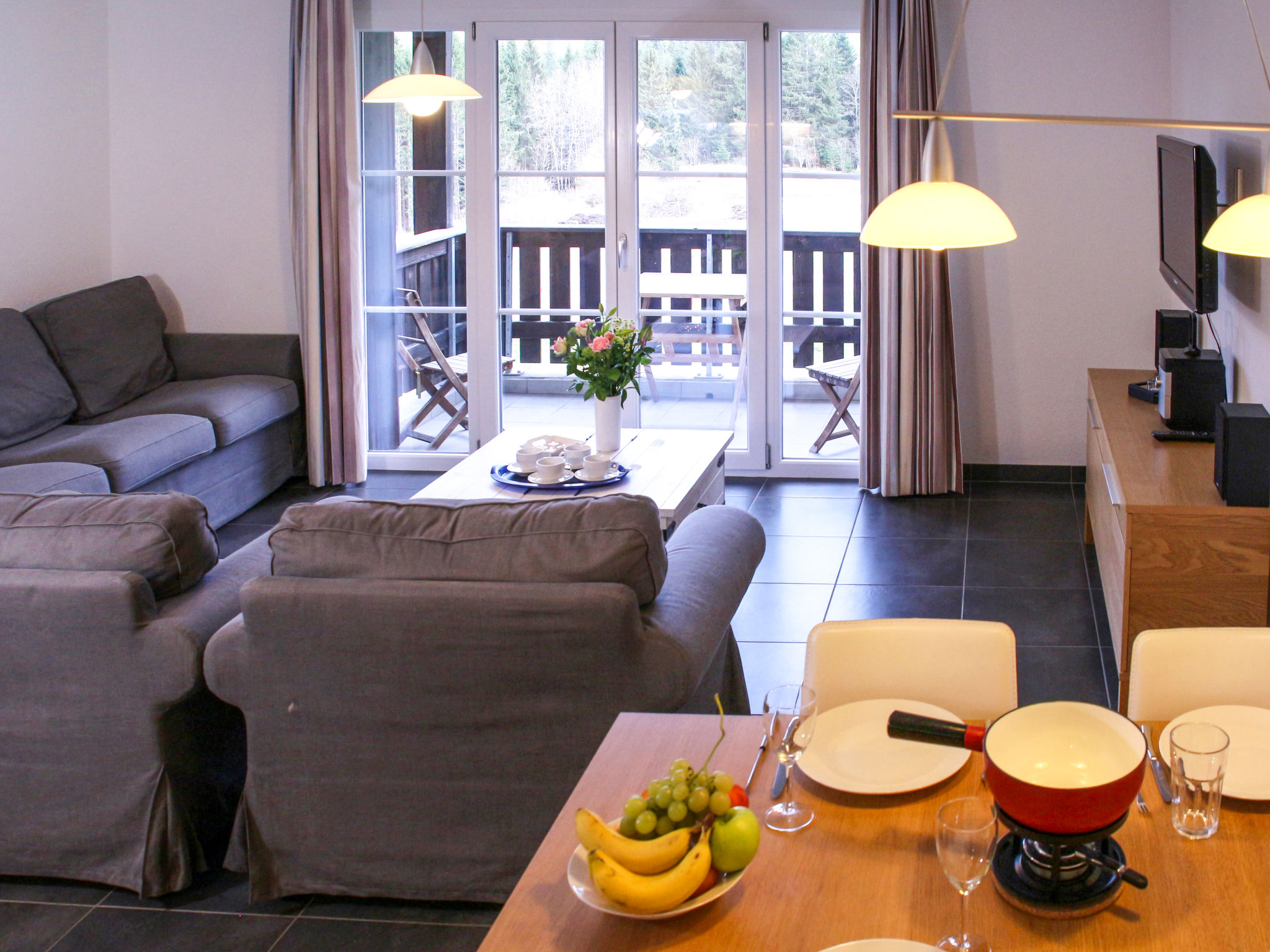 "Andromède 6", apt. di 2 locali 53 m2. Arredamento confortevole e accogliente: soggiorno/sala da pranzo con 1 divano letto doppio e TV (via cavo) (schermo piatto), impianto stereo. Uscita sul balcone. 1 camera con 1 letto doppio. Cucina aperta (forno, lavastoviglie, 4 piastre cottura in vetroceramica, forno a microonde, macchina da caffè elettrica, capsule per la macchina da caffè (Nespresso) extra, set per fondue (formaggio)). Doccia/WC. Balcone. Mobili da balcone. Bella vista sulle montagne e sul paesaggio. A disposizione: asciugacapelli. Internet (wifi, gratis). Prego notare: appartamento per non fumatori. Massimo 2 animali/cani consentiti.