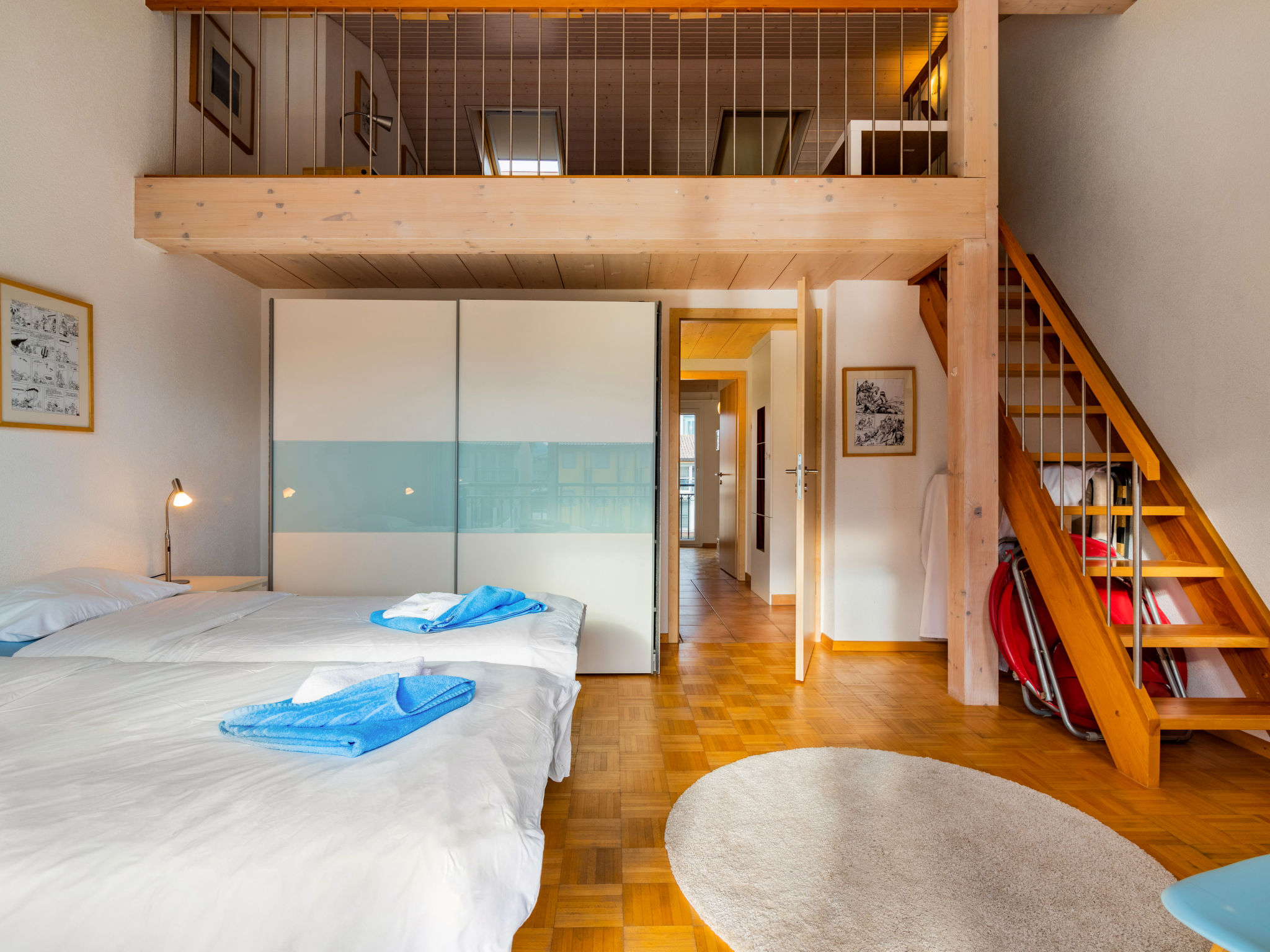 "Vasco de Gama B8/R", casa a schiera 5 locali 173 m2 su 3 piani, esposizione sud-est. In parte mansardata, arredamento confortevole e di buon gusto: soggiorno/sala da pranzo con angolo pranzo, WC separato, TV (satellite), radio, CD, impianto stereo, DVD, Home cinema e boiler (100 litri). Uscita sul balcone, esposizione sud-est. Cucina aperta (forno, lavastoviglie, 4 piastre cottura in vetroceramica, forno a microonde, congelatore, macchina da caffè elettrica, capsule per la macchina da caffè (Nespresso) extra). Piano superiore: 1 camera con 2 letti (90 cm, lunghezza 190 cm). Uscita sul balcone, esposizione sud-est. 1 camera con 1 letto (90 cm, lunghezza 190 cm). Vasca/WC. 2. piano superiore: 1 camera con 2 letti (90 cm, lunghezza 190 cm). Uscita sul balcone, esposizione sud-est. 1 camera con 1 letto (90 cm, lunghezza 190 cm). Uscita sul balcone, esposizione sud e esposizione est. Soppalco con 2 letti (90 cm, lunghezza 190 cm). Vasca/WC. Balcone, esposizione sud-est. Mobili da terrazza. Bella vista sulle montagne, sul canale e sul porto. A disposizione: lavatrice, asciugatrice, ferro da stiro. Internet (wifi, gratis). Parcheggio nr. 40 (coperto). Uno o più posti letto adibiti a zona notte si trovano in area aperta o di passaggio (come soppalco, corridoio, alcova e simili).