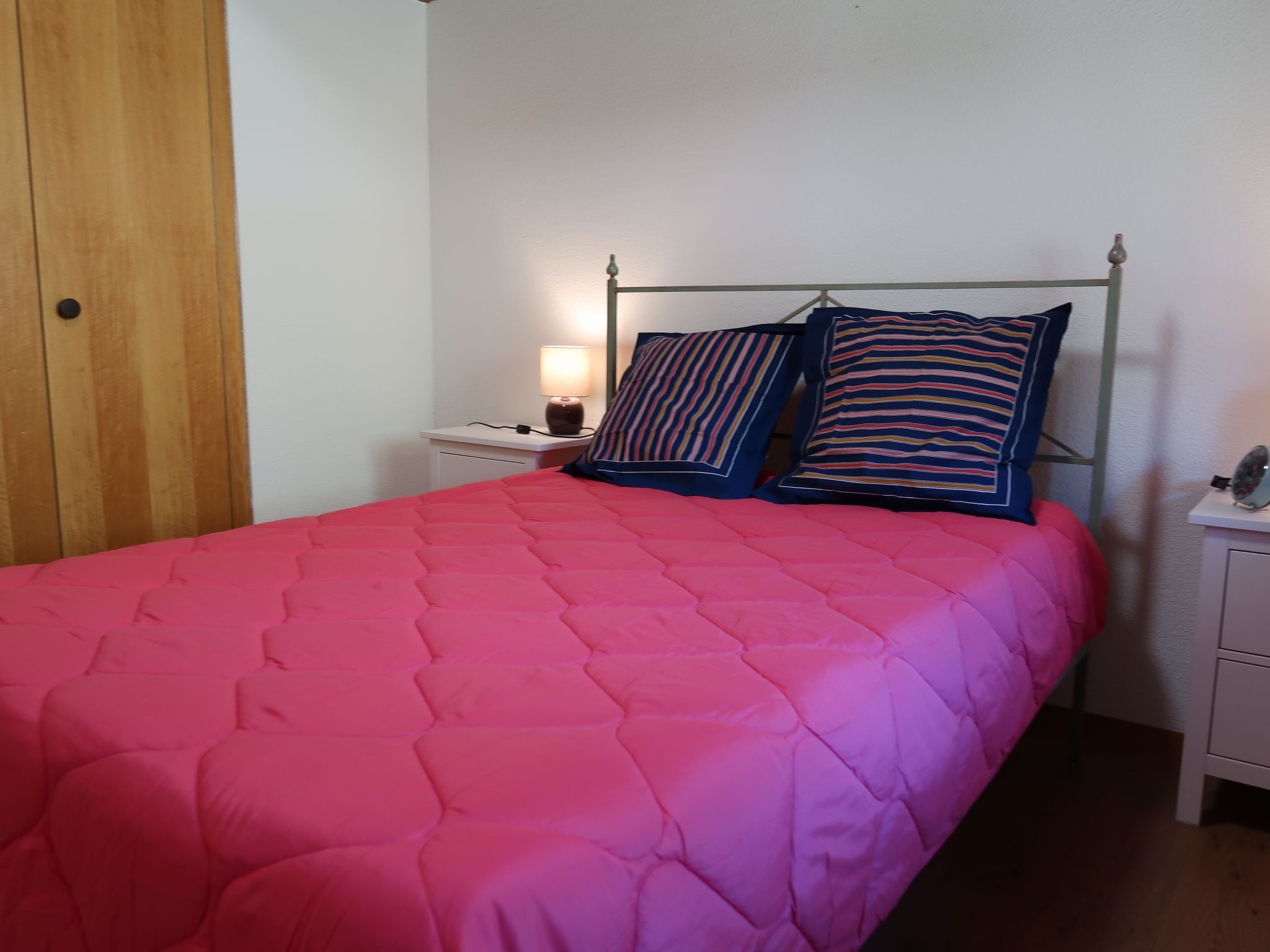 "Cassiopée 26", attico di 3 locali 56 m2 al 3. piano, esposizione sud. Oggetto adatto a 2 adulti + 1 bambino. Luminoso, arredamento di buon gusto e con arredo in legno: soggiorno/sala da pranzo con camino (solo con funzione decorativa), angolo pranzo e TV. Uscita sul balcone. 1 camera con 1 letto doppio (140 cm, lunghezza 200 cm). 1 camera per bambini mansardata piccola, altezza del soffitto 35 - 170 cm con 1 letto estraibile (2 pers. 2 x 80 cm, lunghezza 200 cm). Cucina aperta (lavastoviglie, 4 piastre cottura in vetroceramica, tostapane, bollitore elettrico, forno a microonde, congelatore, macchina da caffè elettrica, capsule per la macchina da caffè (Nespresso), set per raclette, set per fondue (formaggio)). Bagno, WC separato. Riscaldamento a gas. Balcone 8 m2, esposizione sud. Magnifica vista sulle montagne e sulla valle. A disposizione: asciugacapelli. Internet (wifi, gratis). Prego notare: appartamento per non fumatori.