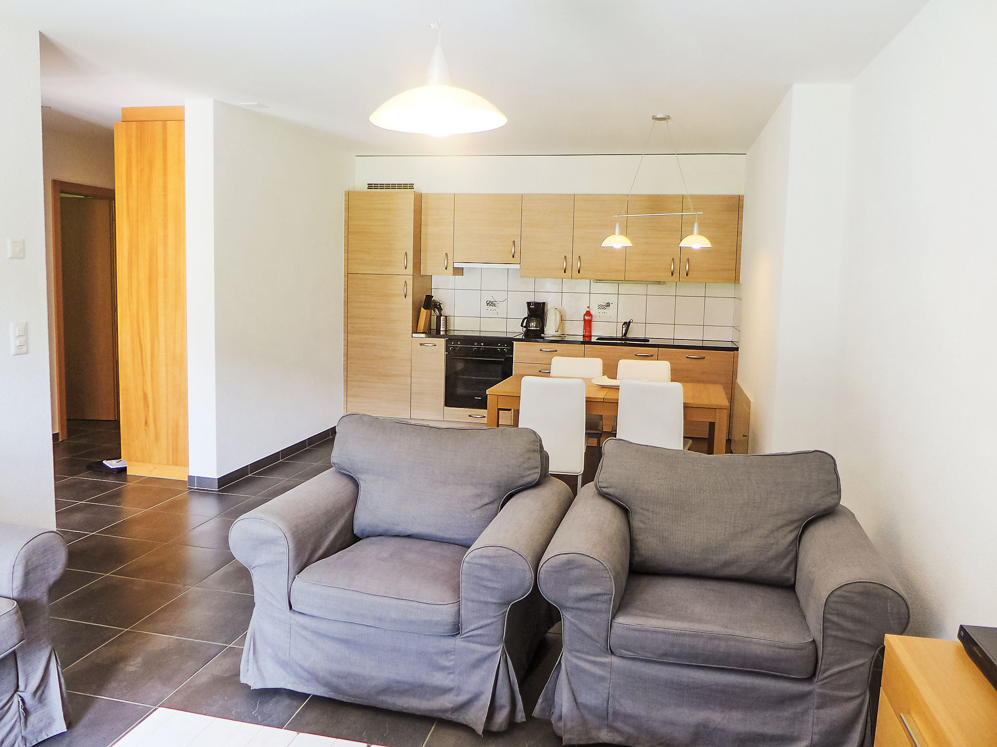 "Andromède 2-pièces A24", apt. di 2 locali 50 a 63 m2. Arredamento confortevole e accogliente: soggiorno/sala da pranzo con 1 divano letto doppio e TV (via cavo) (schermo piatto), impianto stereo. 1 camera matrimoniale con 1 letto doppio. Uscita verso il patio. Cucina aperta (forno, lavastoviglie, 4 piastre cottura in vetroceramica, forno a microonde, macchina da caffè elettrica, set per fondue (formaggio)). Vasca/WC. Bella vista sulle montagne e sulla località. A disposizione: Internet (wifi, gratis). Prego notare: appartamento per non fumatori. Massimo 2 animali/cani consentiti. L'oggetto in affitto è una casa-tipo / un appartamento-tipo.
