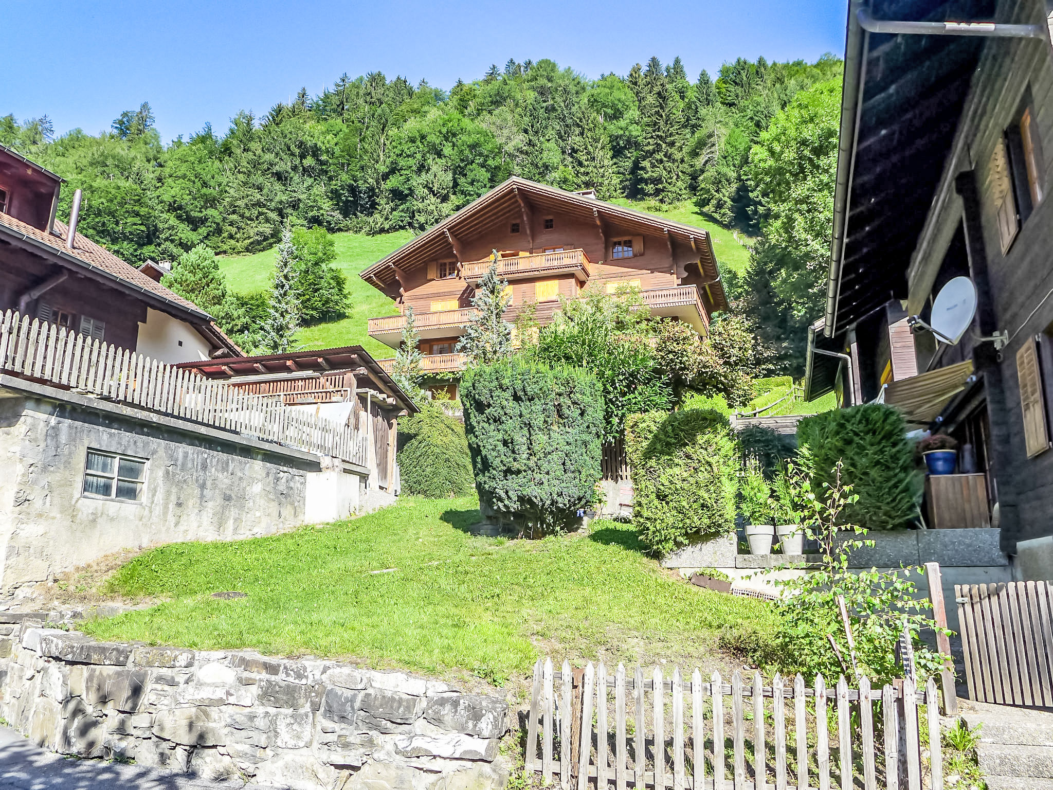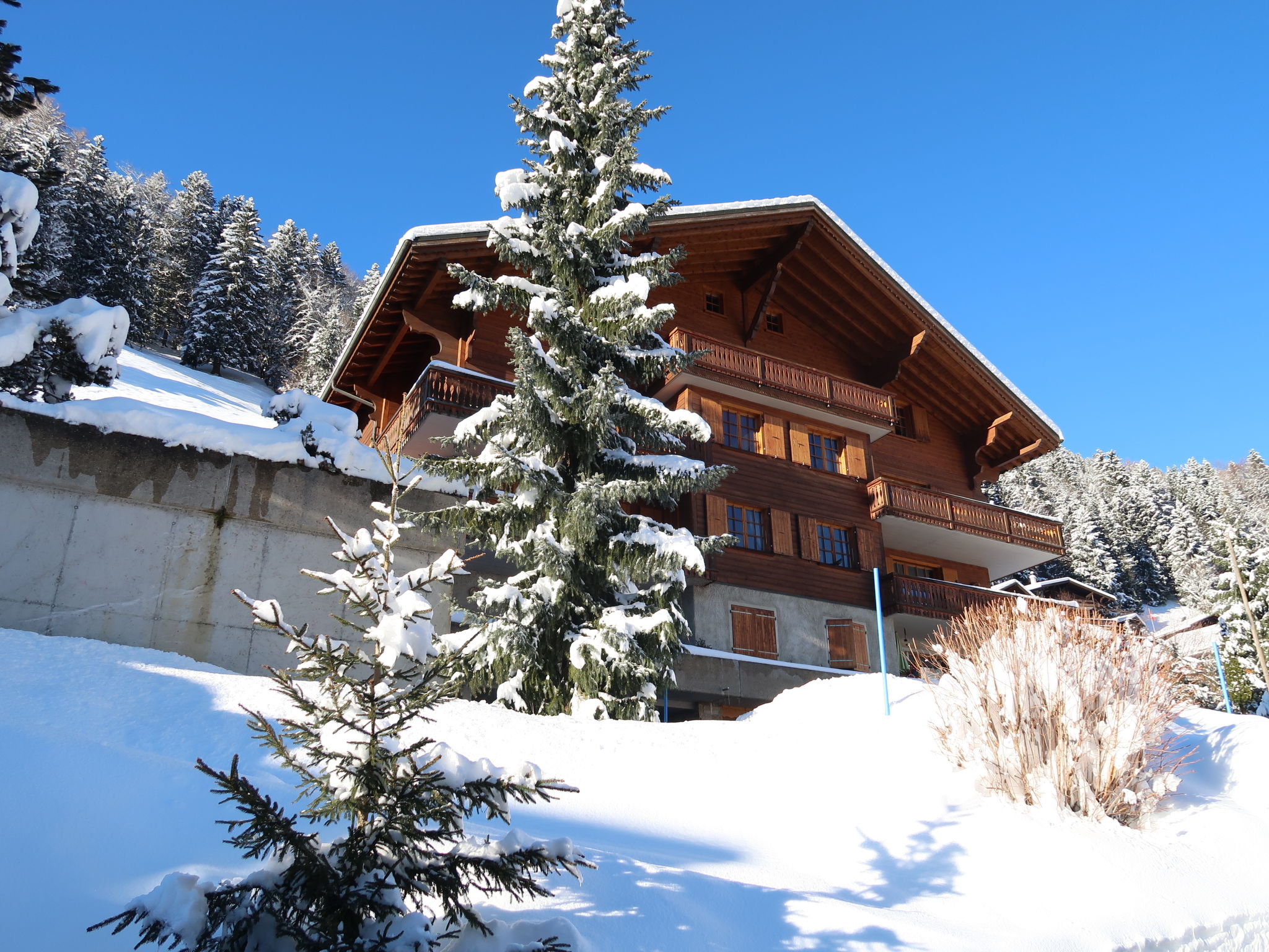 Residence "La Tour d'Antheme", piccola. Nella località, posizione tranquilla, soleggiata, elevata, in una strada senza uscita. Nella casa: deposito sci, lavatrice, asciugatrice (in comune). Parcheggio presso la casa. Negozio alimentare 200 m, supermercato 800 m, ristorante 100 m, panetteria 600 m, cafe 500 m, 2 minuti a piedi dal centro, fermata bus 50 m, stazione ferroviaria "Champèry Village" 300 m. Tennis 550 m, sentieri per passeggiate vicino alla casa 1 m, funicolare 700 m, noleggio sci 600 m, pattinaggio 550 m. Attrazioni nelle vicinanze: Les Dents du Midi, Val d'Illiez 5 km, Monthey 12 km, Champéry Aventure Parc 2 km, Montreux 35 km. Rinomate località sciistiche: Portes du Soleil. Sentieri escursionistici: Portes du Soleil.