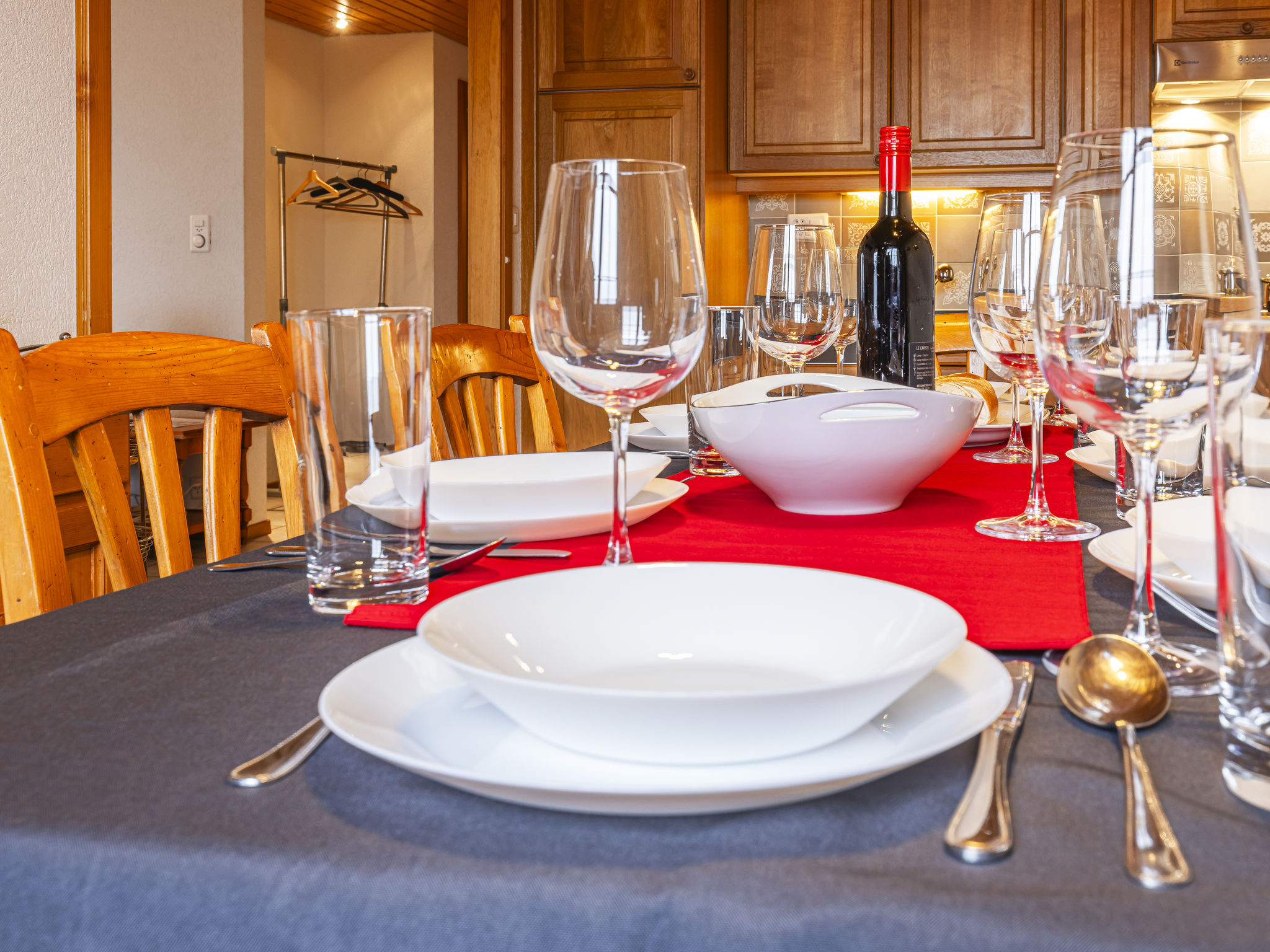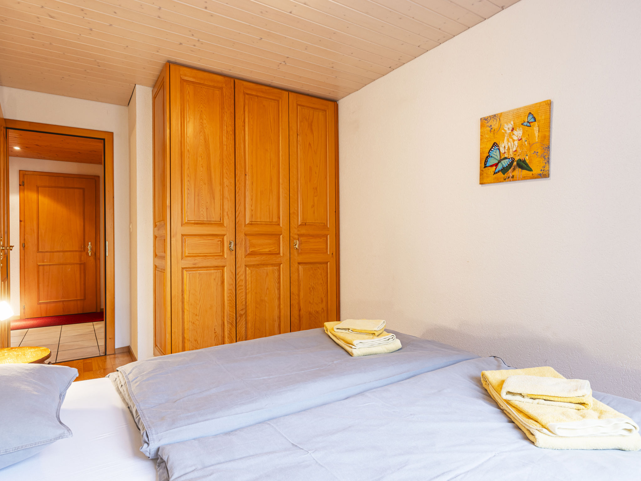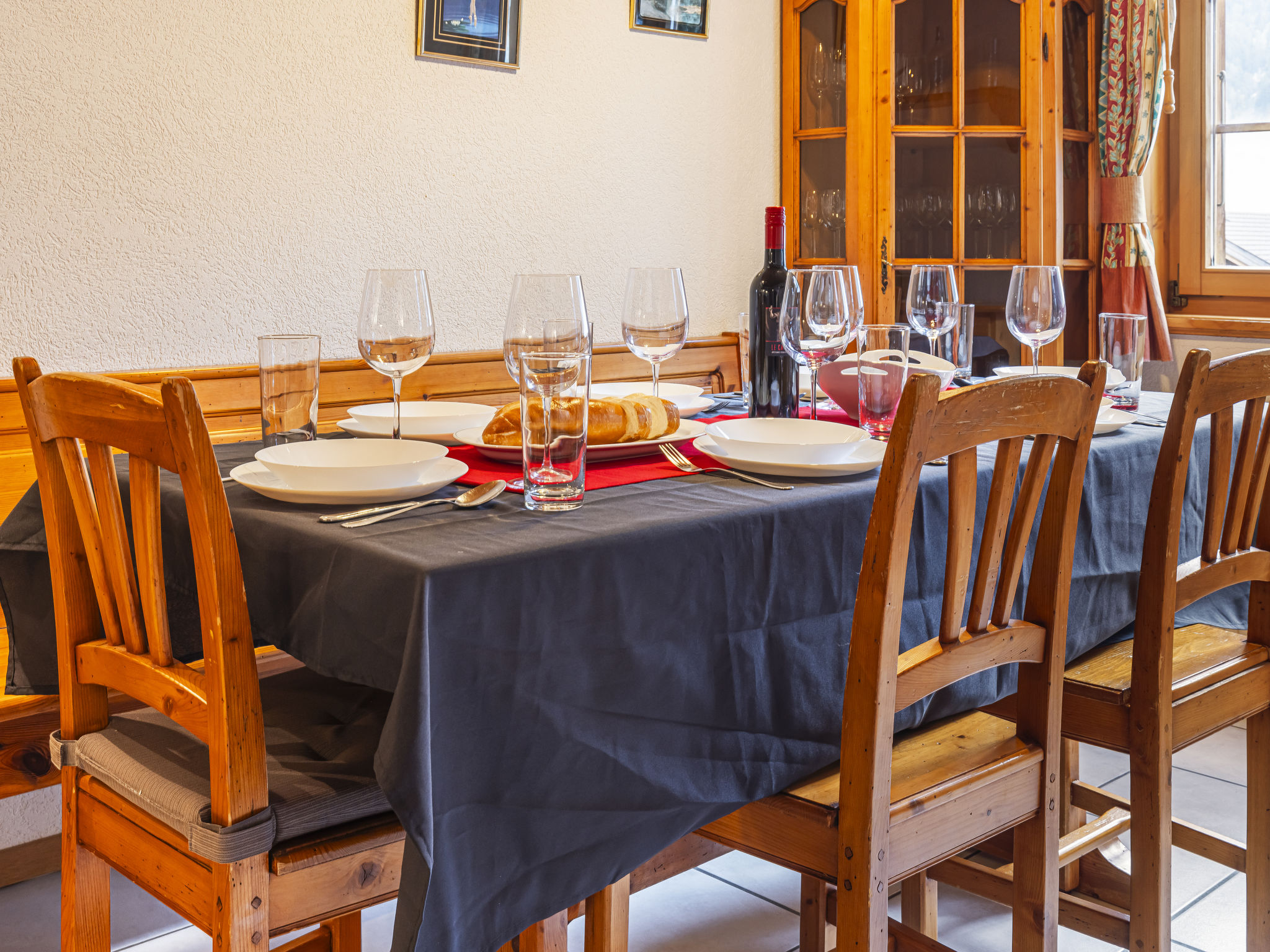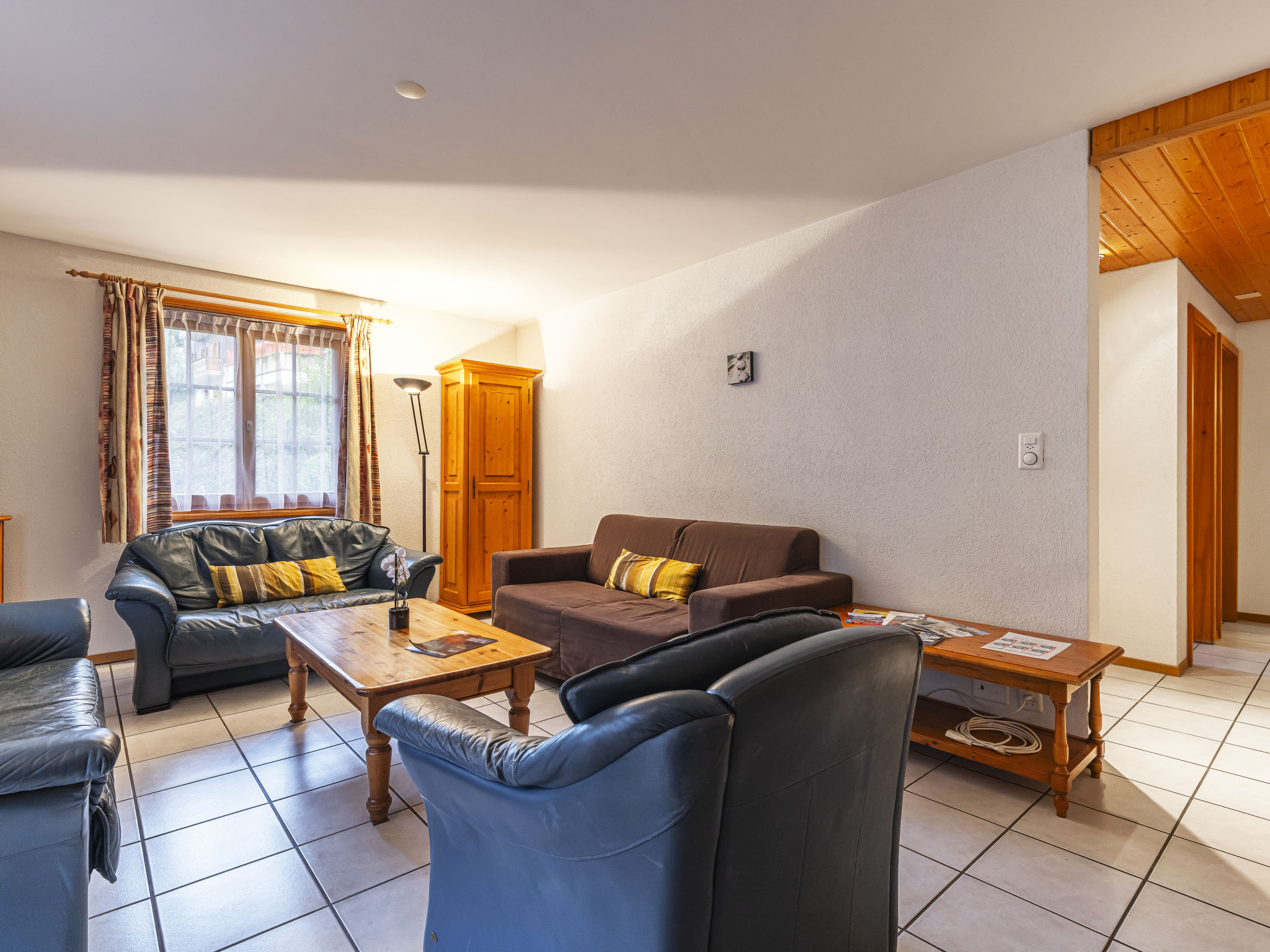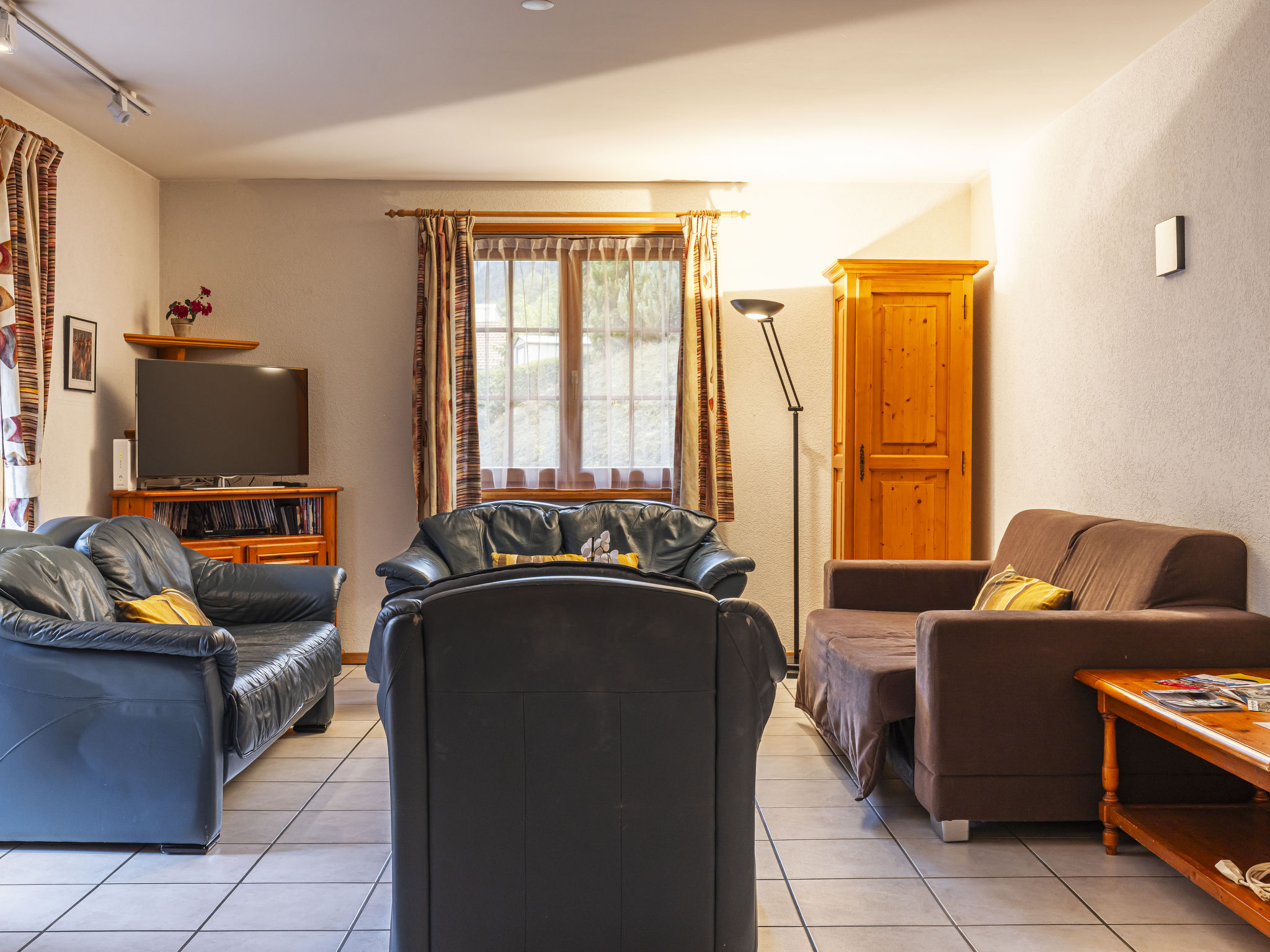 "La Tour d'Antheme", apt. di 3 locali 90 m2 al 2. piano. Oggetto adatto a 5 adulti + 2 bambini. Spazioso e luminoso, arredamento confortevole e di buon gusto: soggiorno/sala da pranzo con 1 divano letto (140 cm, lunghezza 200 cm), camino (solo con funzione decorativa), TV, DVD e raccolta di dvd a disposizione. Uscita sul balcone. 1 camera matrimoniale con 1 letto doppio (2 x 90 cm, lunghezza 190 cm). 1 camera con 1 letto (80 cm, lunghezza 190 cm), 1 x 2 letti a castello (80 cm, lunghezza 190 cm). Uscita verso il patio. Grande cucina aperta (4 punti cottura, forno, lavastoviglie, forno a microonde, macchina da caffè elettrica, set per raclette, set per fondue (chinoise, formaggio)) con tavolo da pranzo. Vasca/WC, doccia/WC. Riscaldamento elettrico. Balcone, esposizione sud-est, piccolo patio, esposizione sud-ovest. Mobili da balcone, barbecue (portatile). Splendida vista sulle montagne, sul paesaggio e sulla località. A disposizione: Internet (wifi, gratis). Prego notare: appartamento per non fumatori.