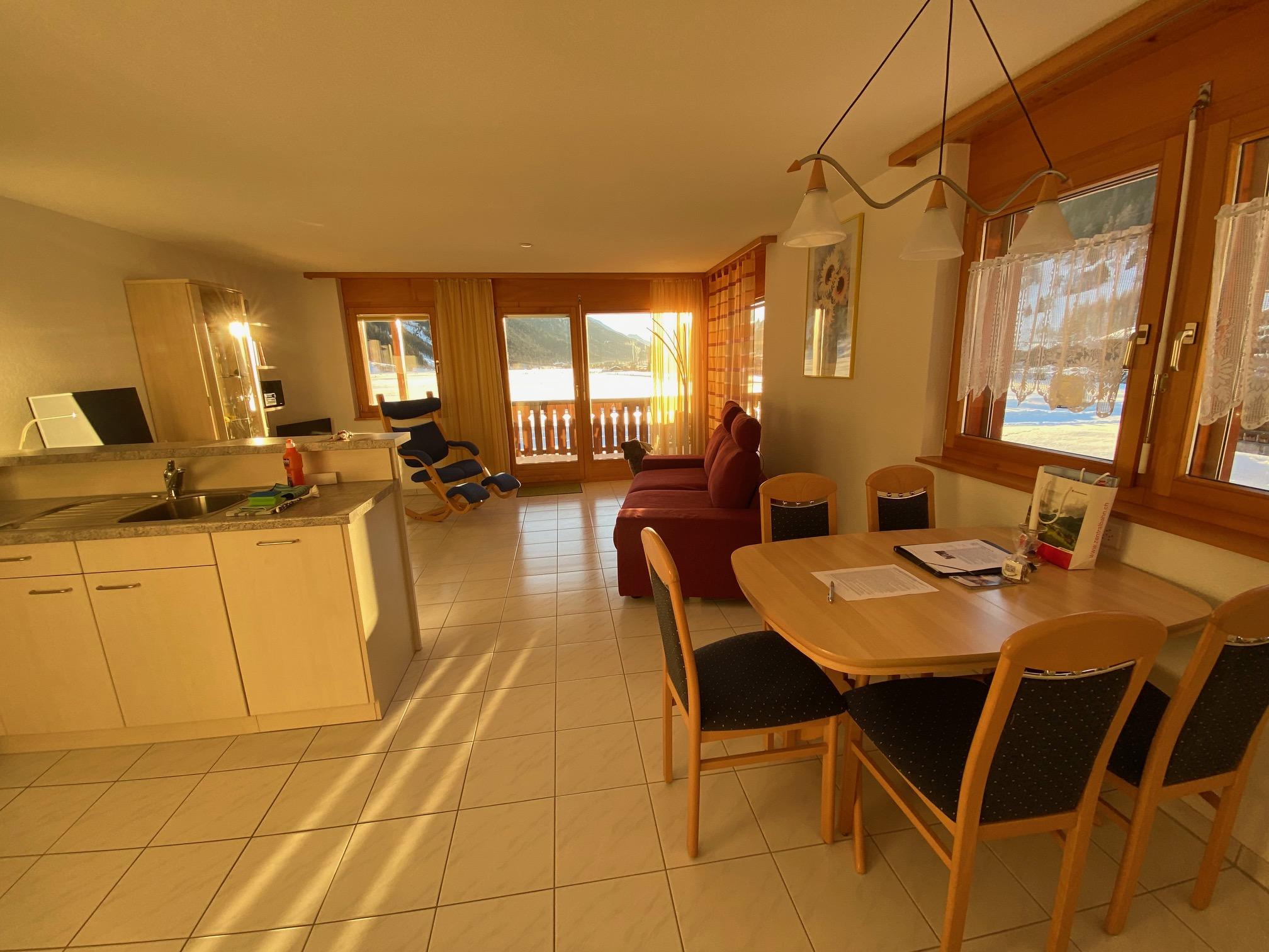 Appartamento luminoso di 2,5 locali al primo piano di una casa con grande balcone. Godetevi la vista mozzafiato del Weisshorn e i tramonti dal balcone o dal soggiorno.