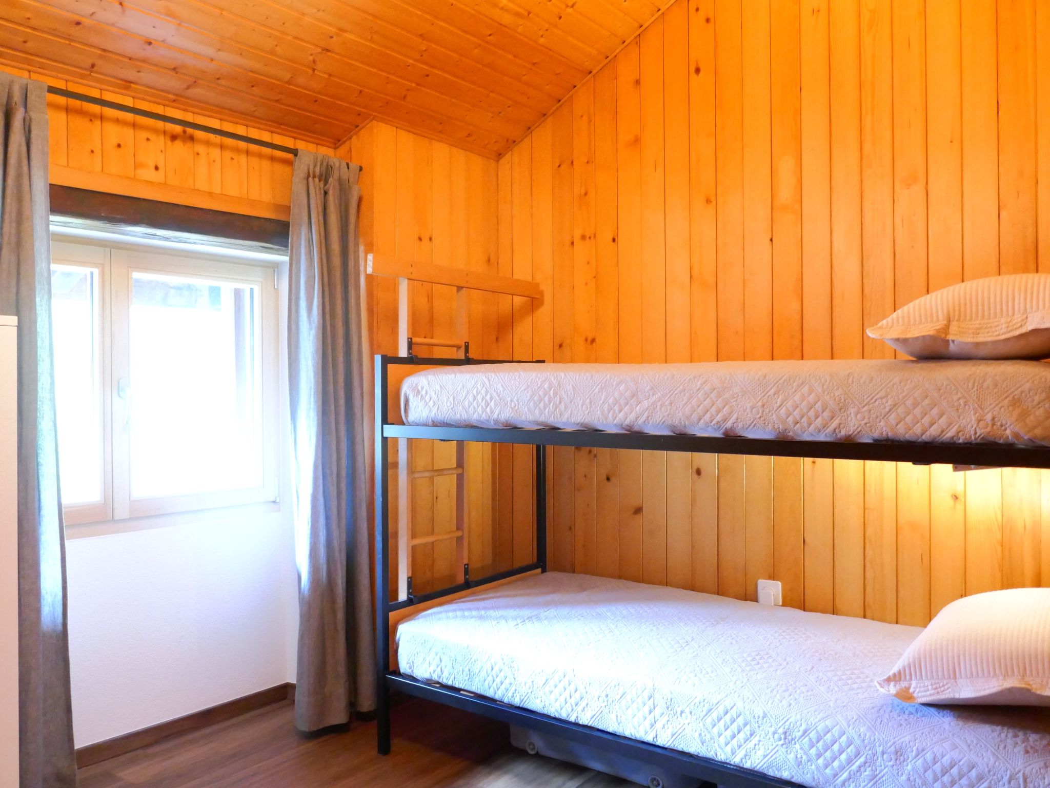 "Rustico Emilio", casa 3 locali 64 m2. Oggetto adatto a 2 adulti + 2 bambini. In parte restaurata nel 2025, arredamento gradevole e accogliente: soggiorno/sala da pranzo aperto con tavolo da pranzo, radio e stufa. Uscita sulla terrazza. Grande cucina aperta (forno, lavastoviglie, 4 piastre ad induzione, bollitore elettrico, macchina da caffè elettrica, capsule per la macchina da caffè (Nespresso) extra, set per fondue (formaggio)). Piano superiore: (scala a chiocciola) 1 camera matrimoniale altezza del soffitto 240 - 400 cm con 1 letto doppio (1 x 160 cm, lunghezza 200 cm). Uscita sul balcone, esposizione sud e esposizione ovest. (scala a chiocciola) 1 camera con 1 x 2 letti a castello (90 cm, lunghezza 190 cm). Doccia/WC. Riscaldamento a legna. Balcone, terrazza 16 m2. Mobili da terrazza. Bella vista sulle montagne, sul paesaggio e sulla località. A disposizione: lavatrice, ferro da stiro, zanzariere, seggiolone, lettino per bimbi fino 2 anni (extra), asciugacapelli. Internet (wifi, gratis). Prego notare: adatto alle famiglie. Casa per non fumatori.