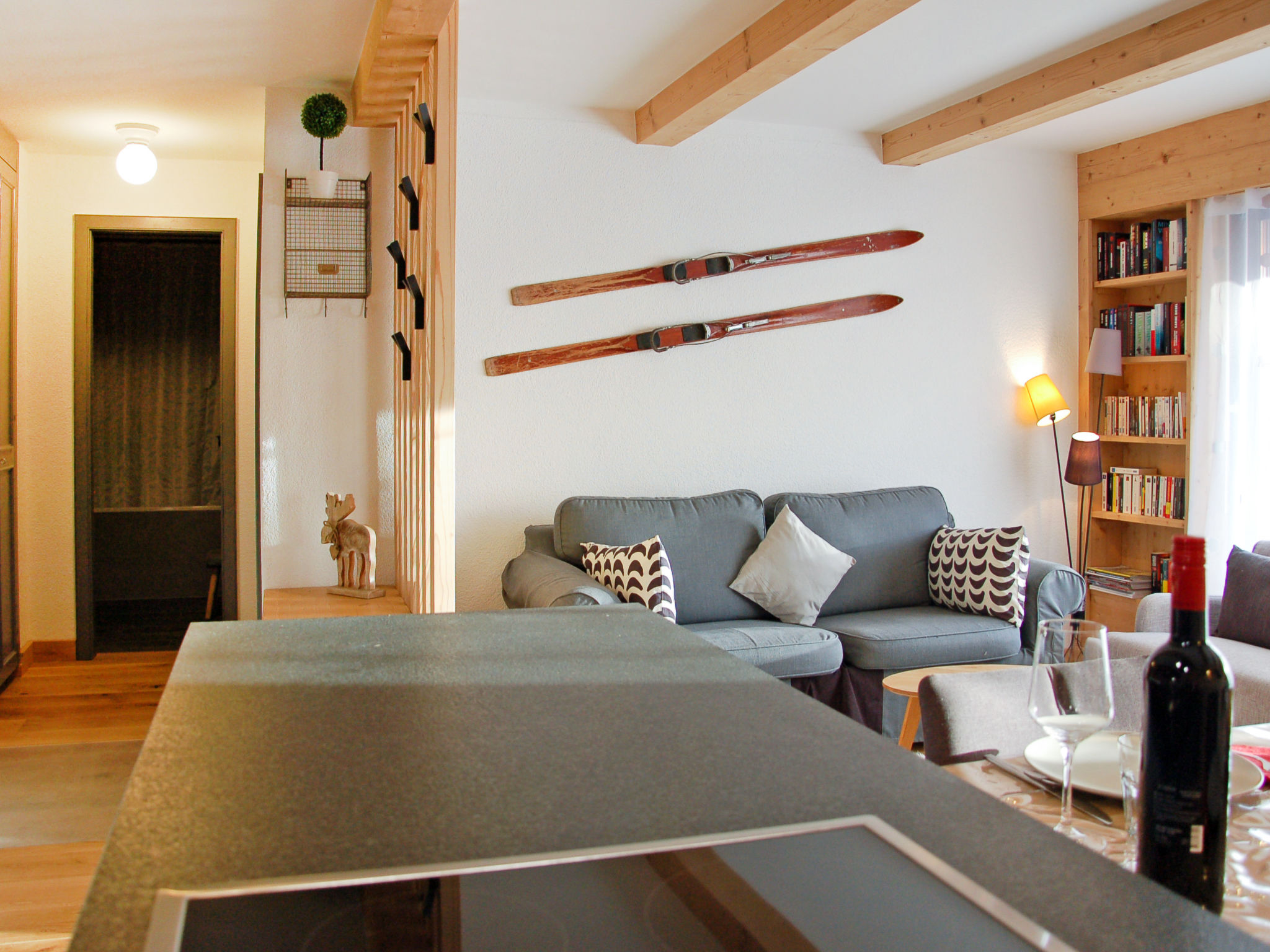 "Opale 34", apt. di 2 locali 55 m2 al 3. piano, esposizione sud. In parte restaurato nel 2017, arredamento confortevole e gradevole: soggiorno/sala da pranzo con finestra panoramica con 1 divano letto doppio, tavolo da pranzo e TV (schermo piatto). Uscita sul balcone, esposizione sud. 1 camera con finestra panoramica, senza armadio con 1 x 2 letti a castello, 1 letto alla francese (140 cm, lunghezza 200 cm). Uscita sul balcone, esposizione sud. Cucina aperta (3 punti cottura, forno, lavastoviglie, tostapane, bollitore elettrico, forno a microonde, congelatore, set per raclette, set per fondue (formaggio)). Vasca/WC. Grande balcone, esposizione sud. Mobili da balcone. Splendida vista sulle montagne. A disposizione: asciugacapelli. Internet (wifi, gratis). Prego notare: appartamento per non fumatori. Massimo 1 animale/cane consentito.