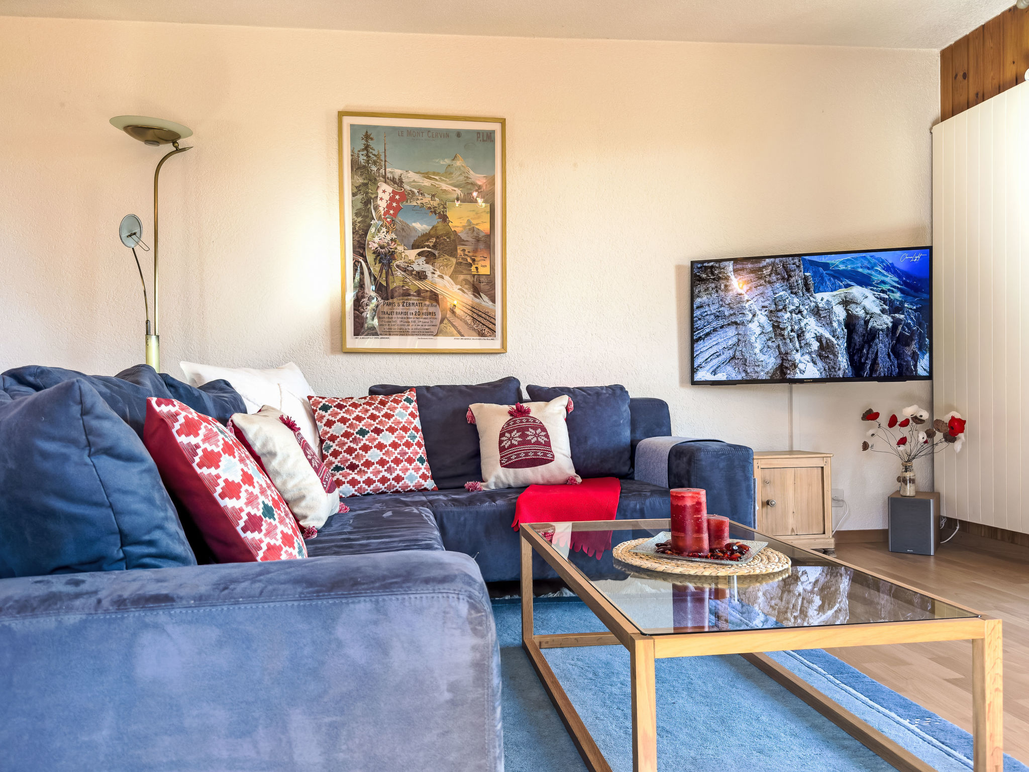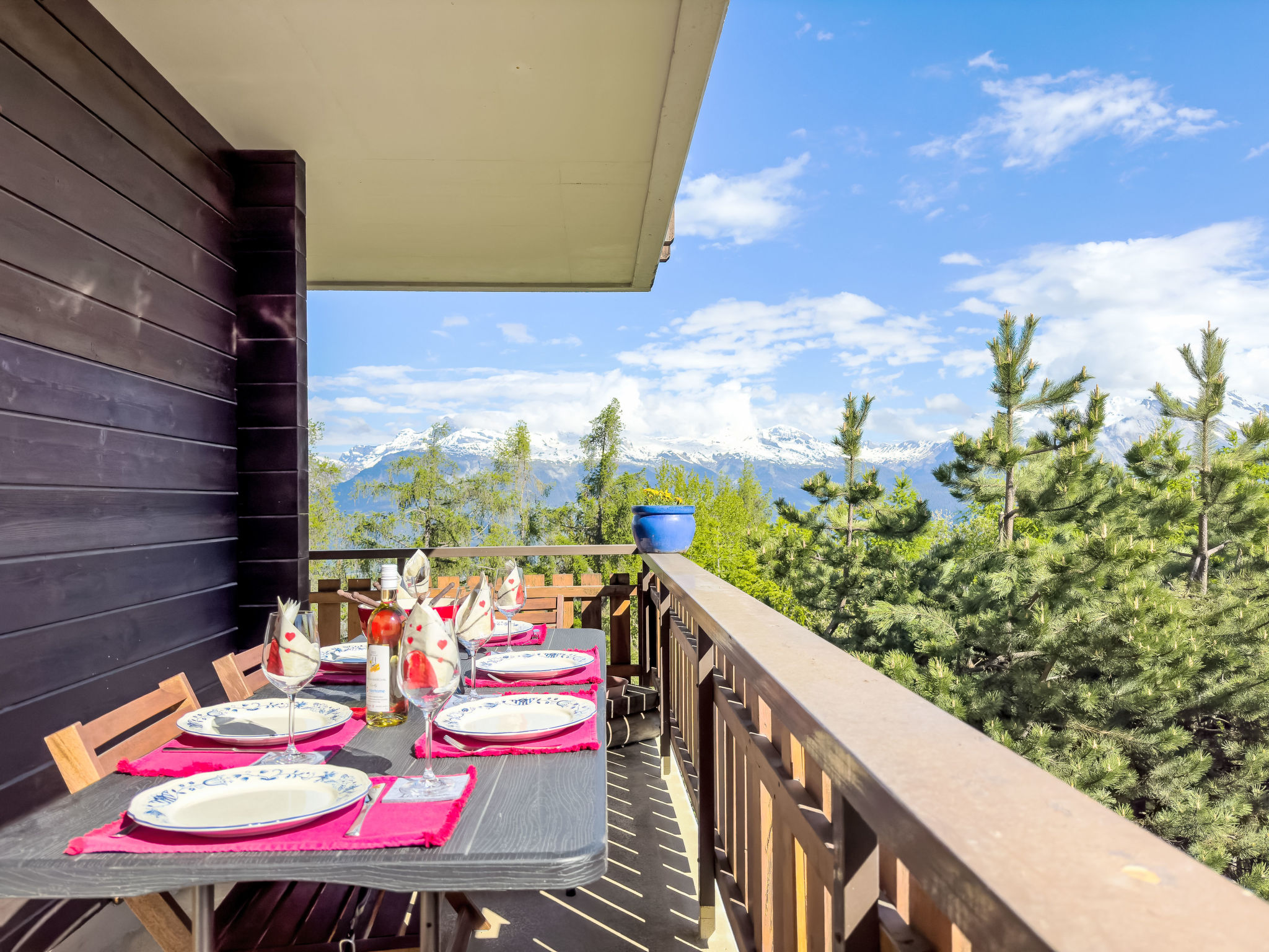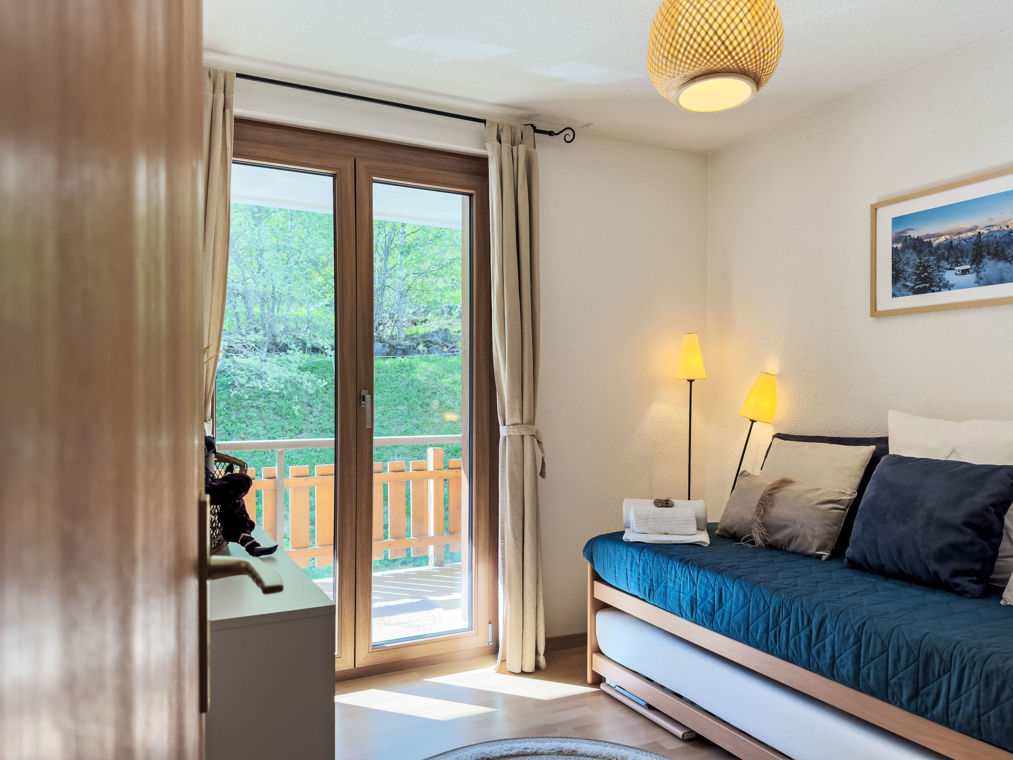 "Chamois AZ10", apt. di 4 locali 100 m2 al 1. piano. Luminoso, in parte restaurato, arredamento gradevole e di buon gusto: ingresso. Soggiorno/sala da pranzo con stufa svedese e TV (via cavo). Uscita sul balcone. 1 camera con 1 x 2 letti a castello (90 cm, lunghezza 190 cm). 1 camera con 1 letto alla francese (160 cm, lunghezza 200 cm). Uscita sul balcone. 1 camera con 1 letto estraibile (2 pers. 2 x 90 cm, lunghezza 190 cm). Uscita sul balcone. Cucina aperta (forno, lavastoviglie, 4 piastre cottura in vetroceramica, bollitore elettrico, forno a microonde, macchina da caffè elettrica, capsule per la macchina da caffè (Nespresso) extra, set per raclette, set per fondue (formaggio)). Vasca/WC, doccia/WC. 2 grandi balconi, esposizione nord-est e esposizione sud-est. Mobili da balcone, barbecue. Splendida vista sulle montagne. A disposizione: Internet (wifi, gratis). Prego notare: appartamento per non fumatori.