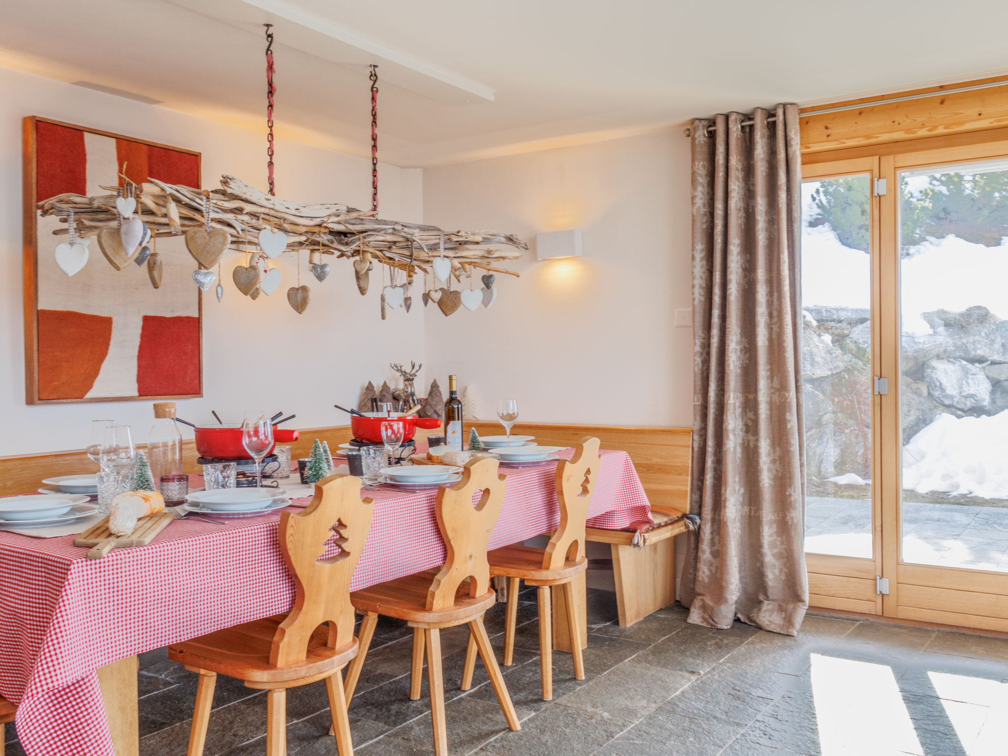 "Ratatouille", chalet 5 locali 210 m2 su 3 piani. Arredamento gradevole e di buon gusto: soggiorno/sala da pranzo con camino e TV (satellite). Cucina aperta (forno, lavastoviglie, 5 piastre cottura in vetroceramica, tostapane, bollitore elettrico, forno a microonde, macchina da caffè elettrica, capsule per la macchina da caffè (Nespresso) extra, set per raclette, set per fondue (formaggio)) con bancone. Riscaldamento elettrico. Piano inferiore: 1 camera con 1 letto alla francese. 2 camere, ogni camera con 2 letti (90 cm, lunghezza 200 cm). Vasca/WC, doccia, WC separato. Piano superiore: 1 camera con 2 letti (90 cm, lunghezza 200 cm). Doccia/WC. Pavimenti in pietra. Grande balcone, esposizione nord e esposizione ovest, piccolo balcone, esposizione est terrazza, esposizione ovest. Mobili da terrazza, barbecue, sedie a sdraio. Splendida vista sulle montagne e sulla valle. A disposizione: lavatrice, asciugatrice, seggiolone, lettino per bimbi, asciugacapelli. Internet (wifi, gratis). Garage (2 Auto), altezza 195 cm, larghezza 275 cm. Prego notare: casa per non fumatori. Massimo 1 animale/cane consentito.