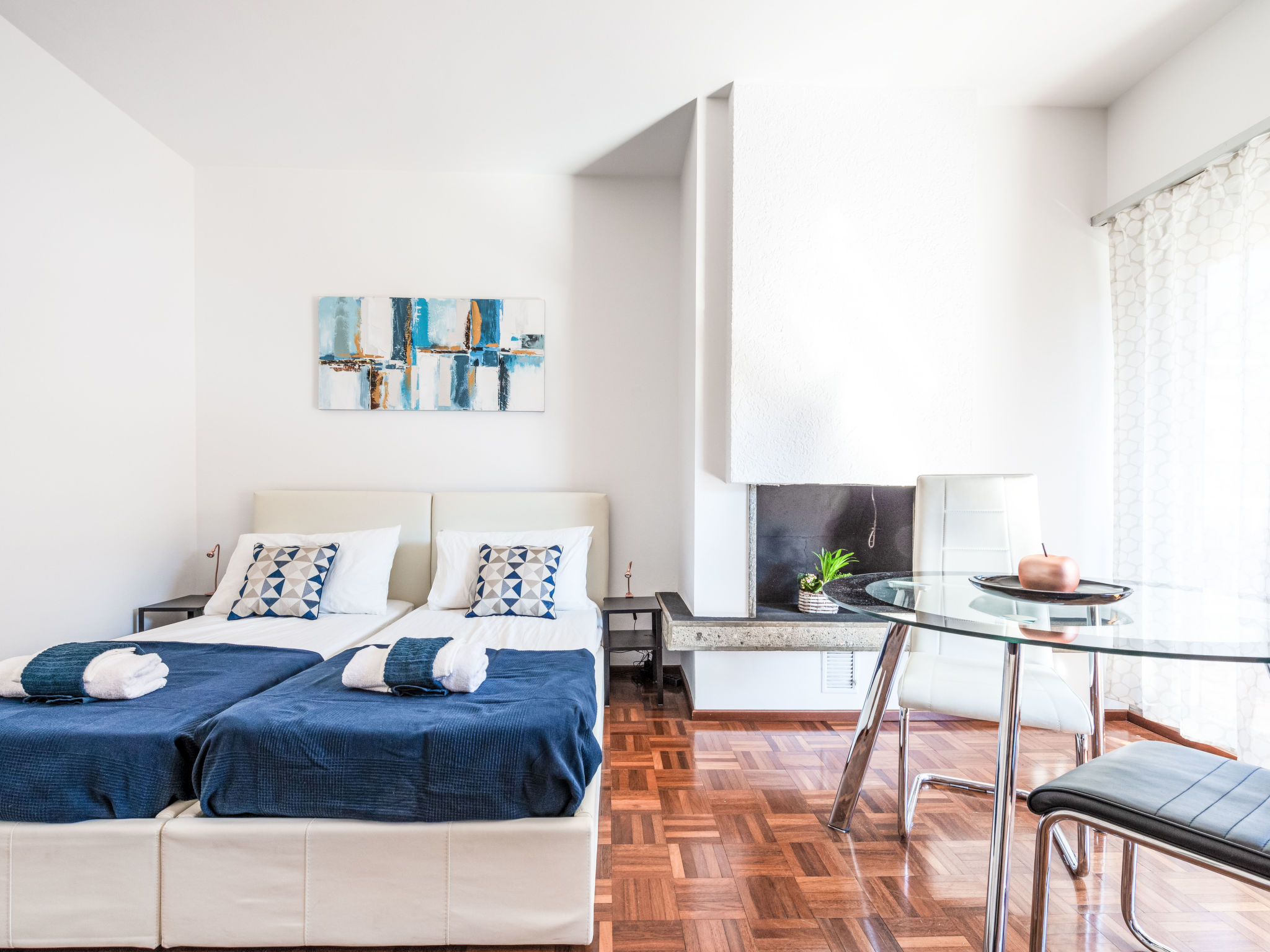 "Shina App. 8" monolocale 35 m2 al 3. piano. Luminoso, in parte restaurato nel 2019, arredamento confortevole e accogliente: soggiorno/camera aperto con 2 letti (90 cm, lunghezza 200 cm), tavolo da pranzo e TV (via cavo) (schermo piatto), radio. Uscita sul balcone. Piccola cucina aperta (4 punti cottura, forno a microonde, macchina da caffè elettrica, capsule per la macchina da caffè (Dolce Gusto) extra). Vasca/bidet/WC. Riscaldamento. Balcone 7 m2. Mobili da balcone. Vista sul paesaggio e sulla località. A disposizione: seggiolone, lettino per bimbi fino 2 anni (extra), asciugacapelli. Internet (wifi, gratis). Prego notare: appartamento per non fumatori. NL-00003628