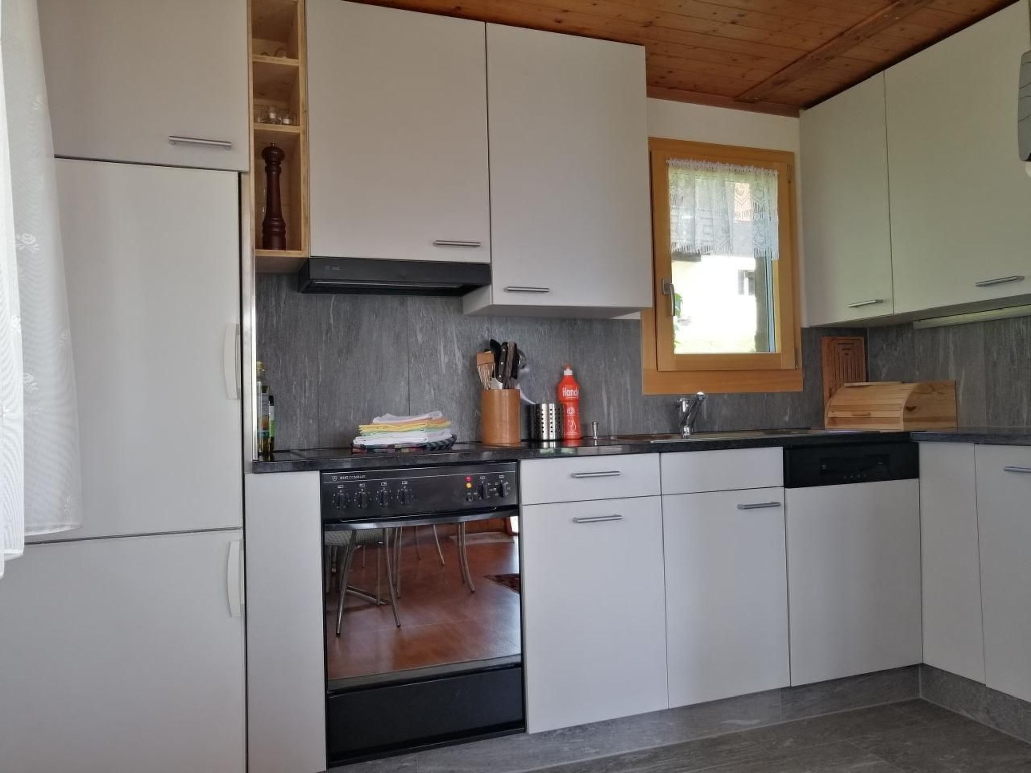 Holiday home for single useIn the entrance area there is a living room with a large dining table and fully equipped kitchen as well as a cosy fireplace.On the same level there is a bedroom, a living room with a sofa bed and the bathroom.The electric stove heats all rooms in winterA staircase leads to the bedroom on the upper floorBoth bedrooms have a built-in wardrobe or sideboardThere is another sleeping option for 1 person or 2 children in the living roomon a pull-out sofa bedThe living room is equipped with SAT-TV, WLAN, music system and booksThe small bathroom has a WC, shower, washbasin and hairdryerIn the basement you will find a washing machine, a washer-dryer andbarbecue and cleaning equipment.Outside, the covered terrace offers a great view, the seating area with a large barbecue invites you to linger with its sunbathing lawn and a small viewing bench.The HotPot with panoramic view can be booked on request and with advance notice at extra cost.Two unallocated parking spaces are located directly under the house. The house is reached via a staircase with approx. 50 steps.Location of the holiday chalet:Quiet house situated at 930 metres above sea level with great panoramic views.The house can be reached in approx. 13 minutes by car from the end of Lake Sarnen, exit Giswil Nord. It lies in the middle of the route between Lucerne and Interlaken.S O M M E R : Hiking directly from the house or in the surrounding area. Varied bike trails. Swimming in the lakes: Lake Sarnen, Lake Lungern, Lake Lucerne, Lake Brienz and numerous mountain lakes. Wonderful excursion destinations in the near and far surroundings. Flüeli-Ranft pilgrimage site to St Niklaus von Flüe, known as Brother Klaus.W I N T E R : Snowshoeing: Langis-Glaubenberg, Lungern-Schönbühl, Melchsee-Frutt. Cross-country skiing : Langis-Glaubenberg, Melchsee-Frutt, Hasliberg. Skiing and snowboarding : Mörlialp family ski area, Melchsee-Frutt, Klewenalp, Hasliberg.