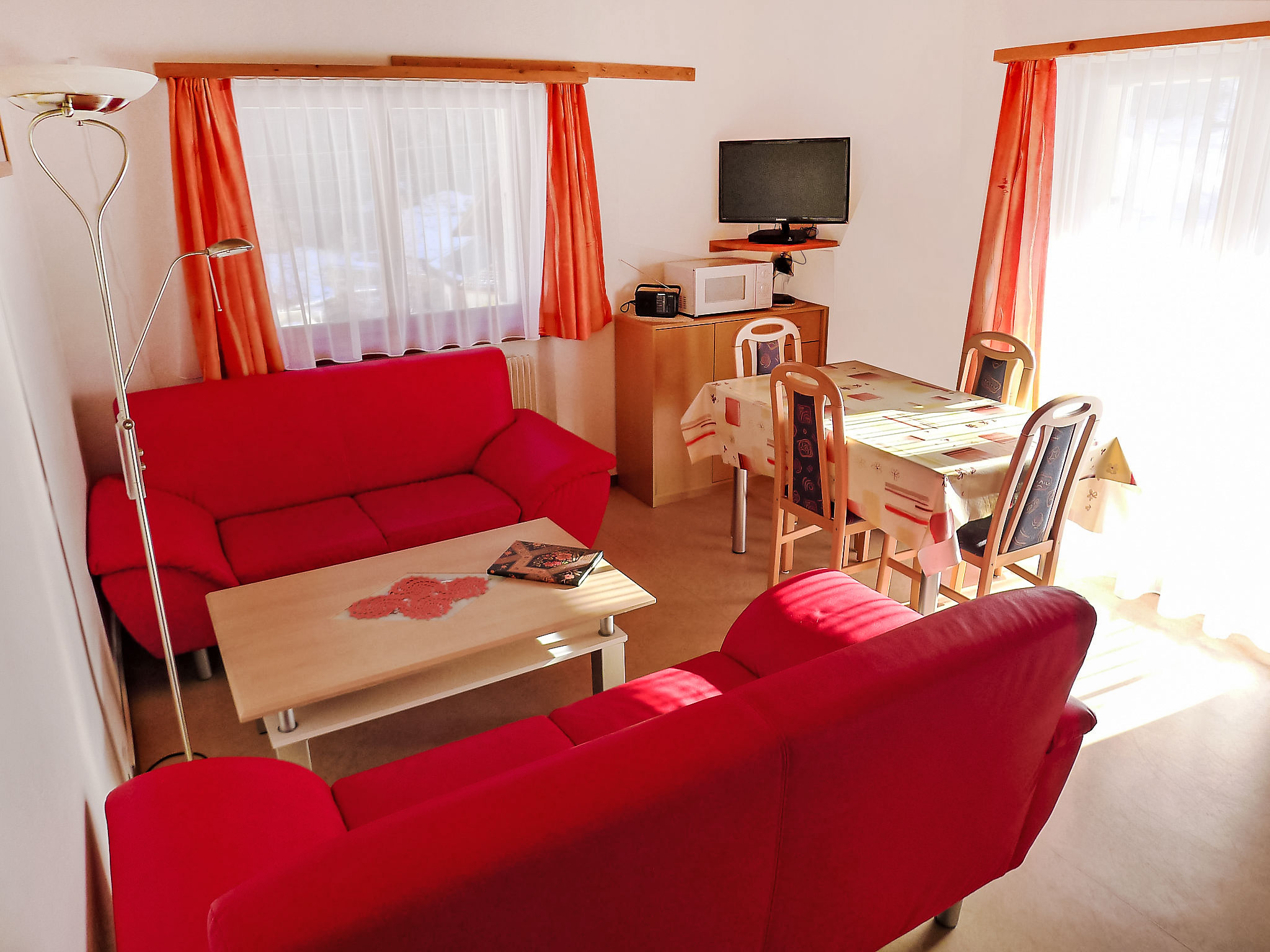Apt. di 3 locali 49 m2, al pianterreno. Arredamento confortevole e accogliente: soggiorno/sala da pranzo con TV (satellite) (schermo piatto), radio. 1 camera matrimoniale. Uscita verso il patio. 1 camera con 2 letti. Cucina aperta (forno, lavastoviglie, 4 piastre cottura in vetroceramica, forno a microonde, set per raclette, set per fondue (chinoise, formaggio)). Doccia/WC. Patio, esposizione sud. Mobili da terrazza. Magnifica vista sulle montagne. A disposizione: Internet (wifi, gratis). Parcheggio a 30 m. Prego notare: appartamento per non fumatori.