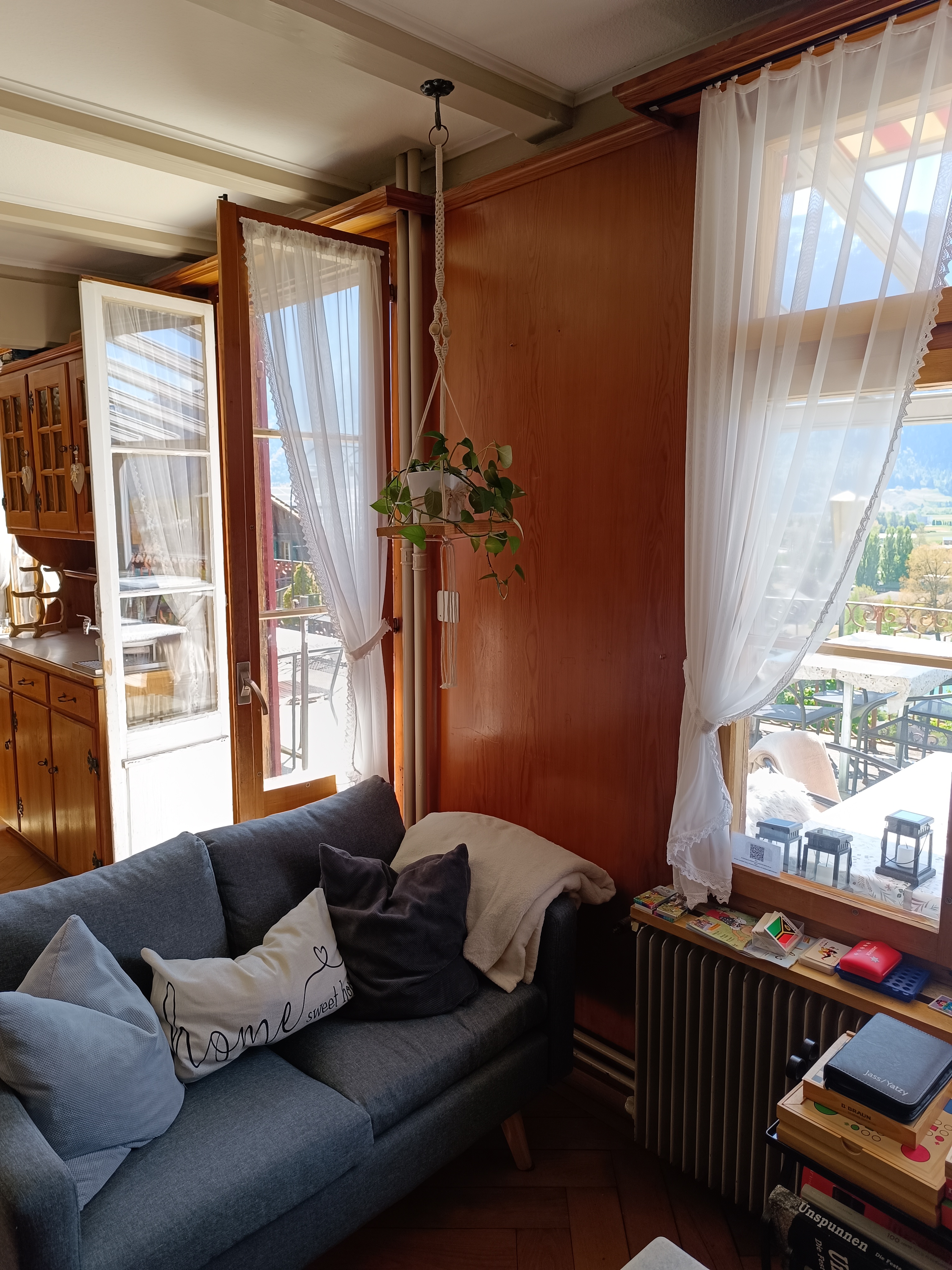 La casa in legno, risalente a 200 anni fa, è situata sopra Interlaken, con una vista unica sul Bödeli e sull'imponente natura della regione della Jungfrau.