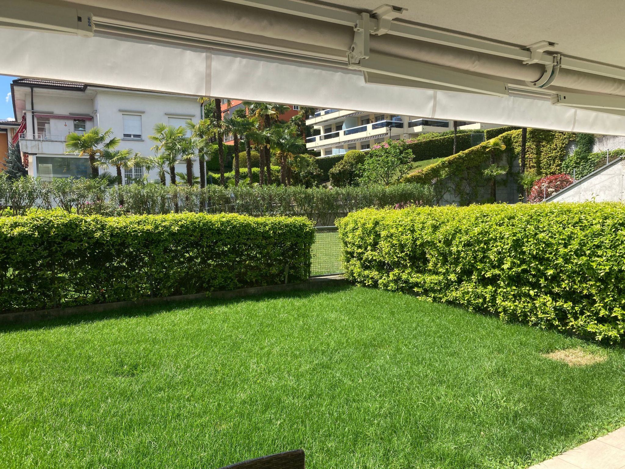 Il giardino, circondato da una recinzione di gelsomino completamente chiusa, garantisce non solo privacy ma anche un ambiente sicuro e tranquillo per rilassarsi all'esterno. L'appartamento si fregia di un'area benessere comune che include bagno turco, sauna e sala relax, offrendo così opportunità uniche per distendere corpo e mente.