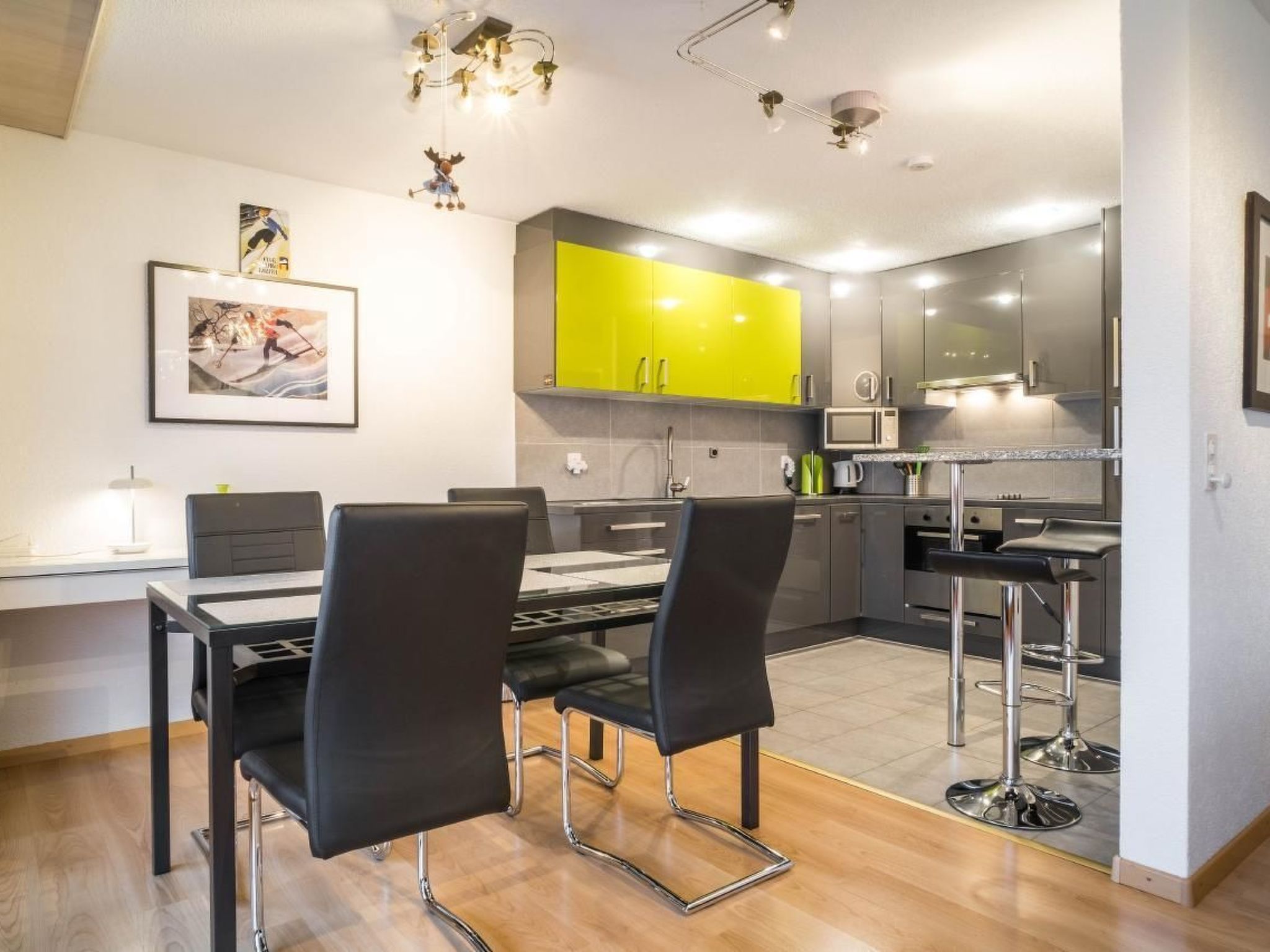 The 90m2 3.5-room apartment on the 2nd floor has a bedroom with double bed, a bedroom with two single beds, a bathroom with shower, toilet and bidet and a bathroom with bath and toilet. The well-equipped kitchen adjacent to the cosy dining/living area. From the balcony you can enjoy the unique mountain panorama.The house is located 5 minutes’ walk from the village centre. The bus stop is close by. WiFi and a parking space are included in the rent.Pets and smoking are not allowed in the house. Whether you are looking for an apartment or a chalet, you have come to the right place - the GRIWA RENT AG! Our teams in Interlaken and Grindelwald will be happy to advise you. We respond to your wishes and find your suitable holiday property. Guest satisfaction is important to us. You should spend unforgettable holidays with us. No matter whether you are traveling alone or in a group. We have the right vacation home for you!The glacier village of Grindelwald nestles in a diverse, unspoilt Alpine landscape. It is world famous for its backdrop of snow-covered mountains including the Wetterhorn, Eiger, Mönch and Jungfrau. In summer, some 500 kilometers of well-marked walking, hiking and mountain trails wait to be explored. En route you will find you’ll find rustic mountain restaurants offering a wide selection of good food, ideal spots to take a relaxing break. The region has many other summer activities to enjoy, such as 120 kilometers of marked mountain-biking routes, paragliding, bungee jumping in the glacier gorge, scooter bike run, summer roller-sledge run, First cliff walk and much more. In winter, 45 mountain railways, aerial cableways and ski lifts offer an invitation to enjoy great fun in the Jungfrau Region. The tree areas of, Grindelwald-First, Kleine Scheidegg-Männlichen and Mürren-Schilthorn offer over 200 kilometers of pistes, with a choice of thrilling or easy downhill runs. Non-skiers are well created for with 100 kilometers of winter-walking trails. The region is also a paradise for sledding fans. The 15-kilometre sledge run from the Faulhorn summit down to Grindelwald is the longest in the Alps. And there’s plenty more snow sport on offer in the Jungfrau Region, including snowshoe tours, cross country skiing and ice sport.Nearby sports facilities: Mountain climbing, Ice skating, Golf course, Climbing, Mountainbiking, Paragliding, Bike tours, Skiing (alpin), Cross-country skiing, Sport center
