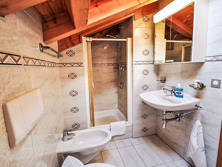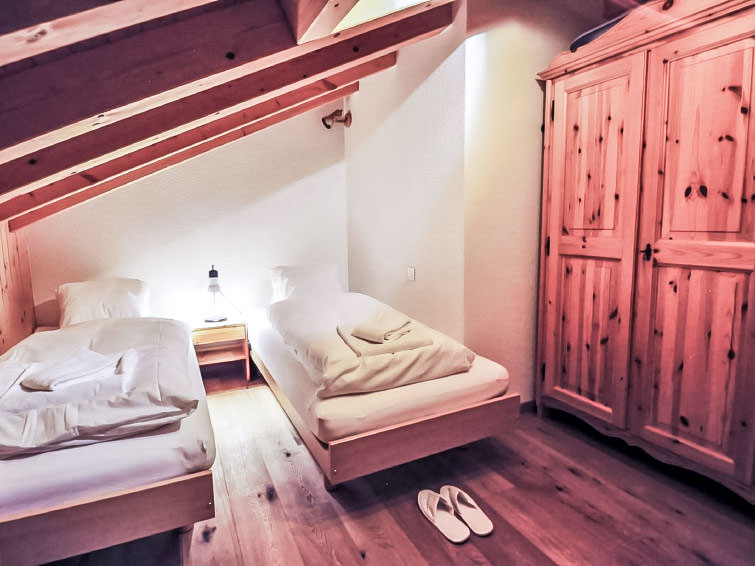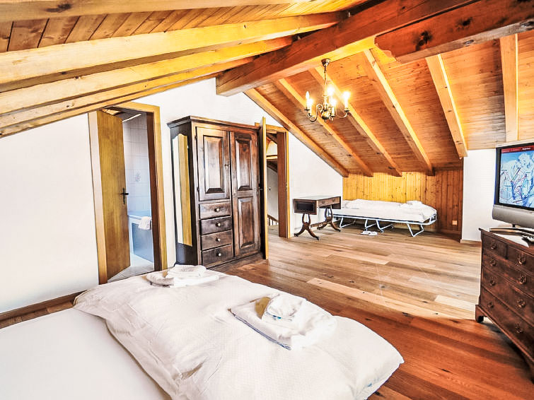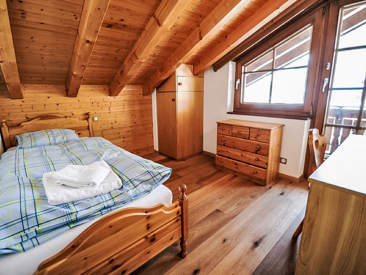 Attico di 5 locali 114 m2 su 2 piani al 3. piano, esposizione sud. Spazioso, arredamento gradevole e accogliente: soggiorno con camino, tavolo da pranzo, TV, CD e DVD. Uscita sul balcone, esposizione sud. Grande cucina (forno, lavastoviglie, 4 piastre cottura in vetroceramica, tostapane, bollitore elettrico, forno a microonde, congelatore, macchina da caffè elettrica, microonde combinato, set per fondue (formaggio)). Doccia/WC, WC separato. Riscaldamento. Piano superiore: mansardato 1 camera matrimoniale con 1 letto doppio (1 x 160 cm, lunghezza 200 cm), vasca/WC. Mansardato 1 camera con 2 letti (90 cm, lunghezza 200 cm). Mansardato 1 camera con 1 letto (90 cm, lunghezza 200 cm). Uscita sul balcone, esposizione nord. Mansardato 1 camera con 2 letti (90 cm, lunghezza 200 cm), lavabo. Uscita sul balcone. Pavimenti in parquet. 2 balconi, esposizione sud e esposizione nord. Mobili da balcone. Splendida vista sul Cervino. A disposizione: asciugacapelli. Internet (wifi). Prego notare: appartamento per non fumatori.