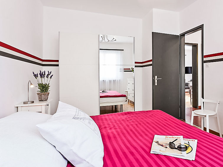 "Junior Suite", apt. di 2 locali 50 m2 al 2. piano, esposizione sud. Arredamento moderno e di buon gusto: soggiorno/sala da pranzo con 1 divano letto (160 cm, lunghezza 200 cm), TV (satellite), schermo piatto e radio. Uscita sul balcone. 1 camera con 2 letti (90 cm, lunghezza 200 cm). Cucina (forno, lavastoviglie, 4 piastre cottura in vetroceramica, macchina da caffè elettrica, capsule per la macchina da caffè (Nespresso) extra). Vasca/WC. Riscaldamento, riscaldamento ad aria calda. Balcone. Mobili da terrazza. A disposizione: Internet (wifi, gratis). Prego notare: appartamento per non fumatori. Massimo 1 animale/cane consentito. NL-00008122