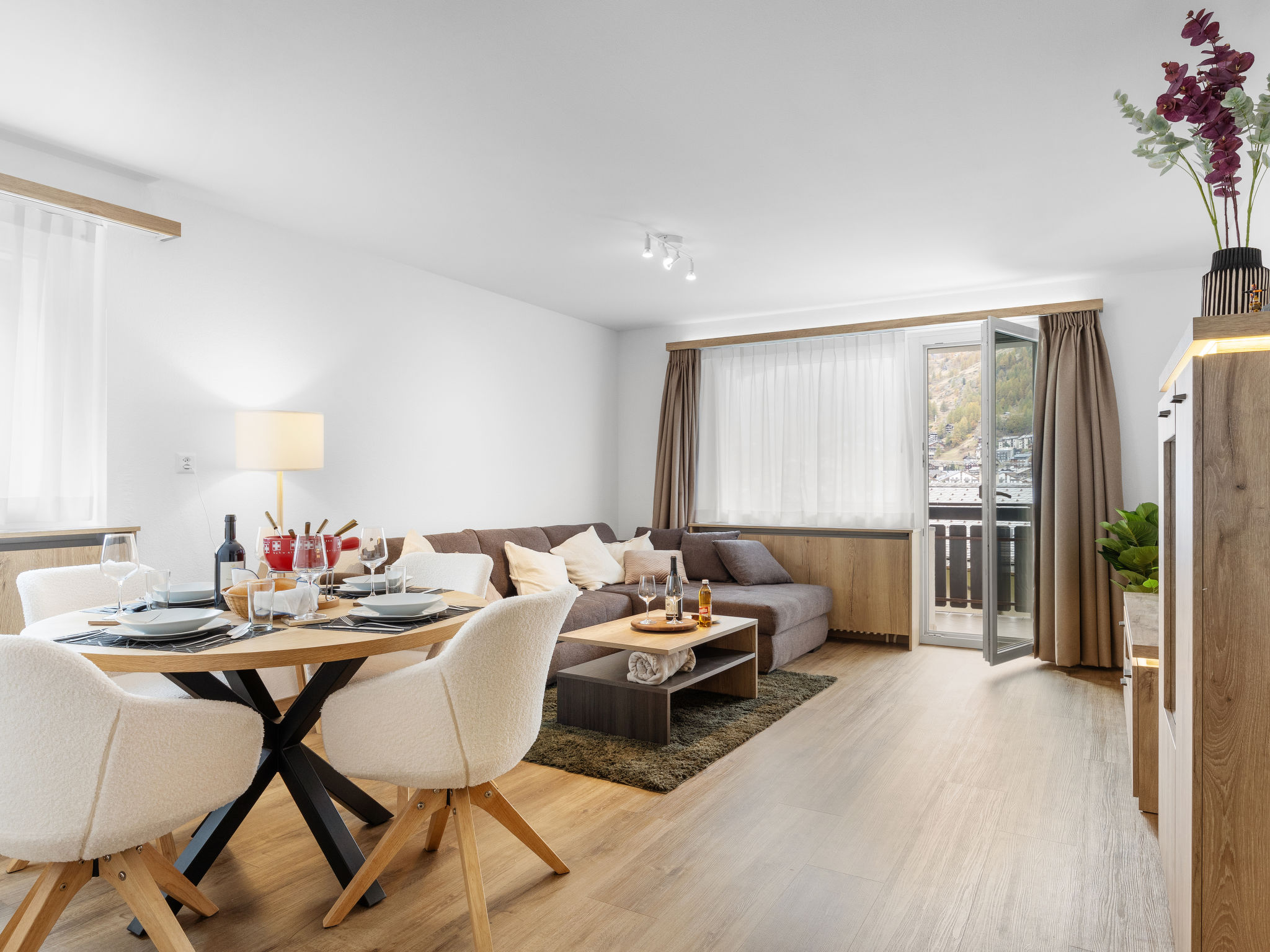 Apt. di 3 locali 72 m2 al 1. piano, esposizione sud. Luminoso, arredamento gradevole e accogliente: soggiorno con TV (via cavo). Uscita sul balcone, esposizione sud. 1 camera con 2 letti (90 cm, lunghezza 200 cm). 1 camera con 1 letto doppio (1 x 160 cm, lunghezza 200 cm). Cucina (forno, lavastoviglie, 4 piastre cottura in vetroceramica, tostapane, bollitore elettrico, forno a microonde, congelatore, macchina da caffè elettrica). Doccia/WC. Riscaldamento. Balcone, esposizione sud. Mobili da balcone. Bella vista sul Cervino. A disposizione: Internet (wifi, gratis). Prego notare: appartamento per non fumatori.