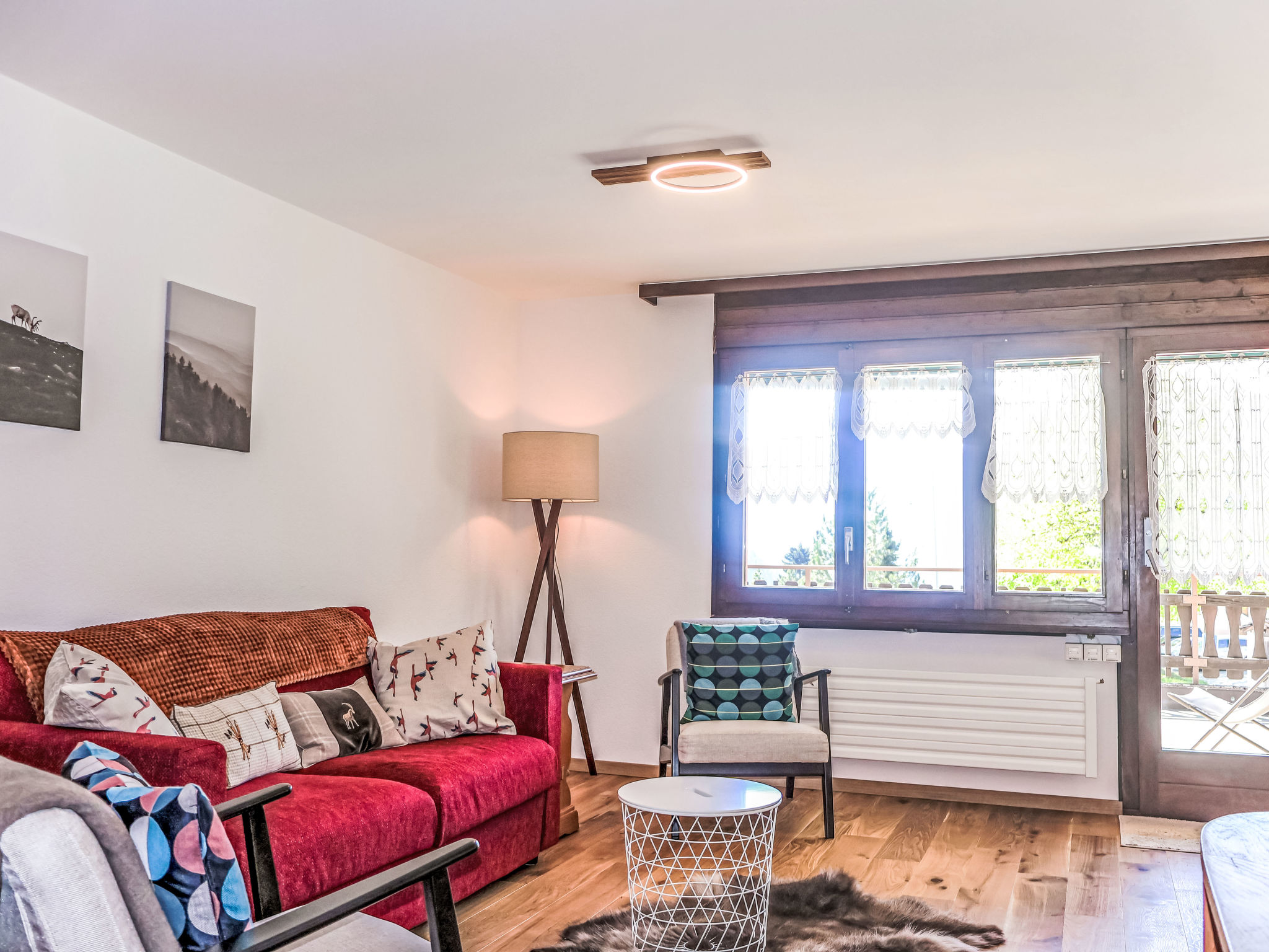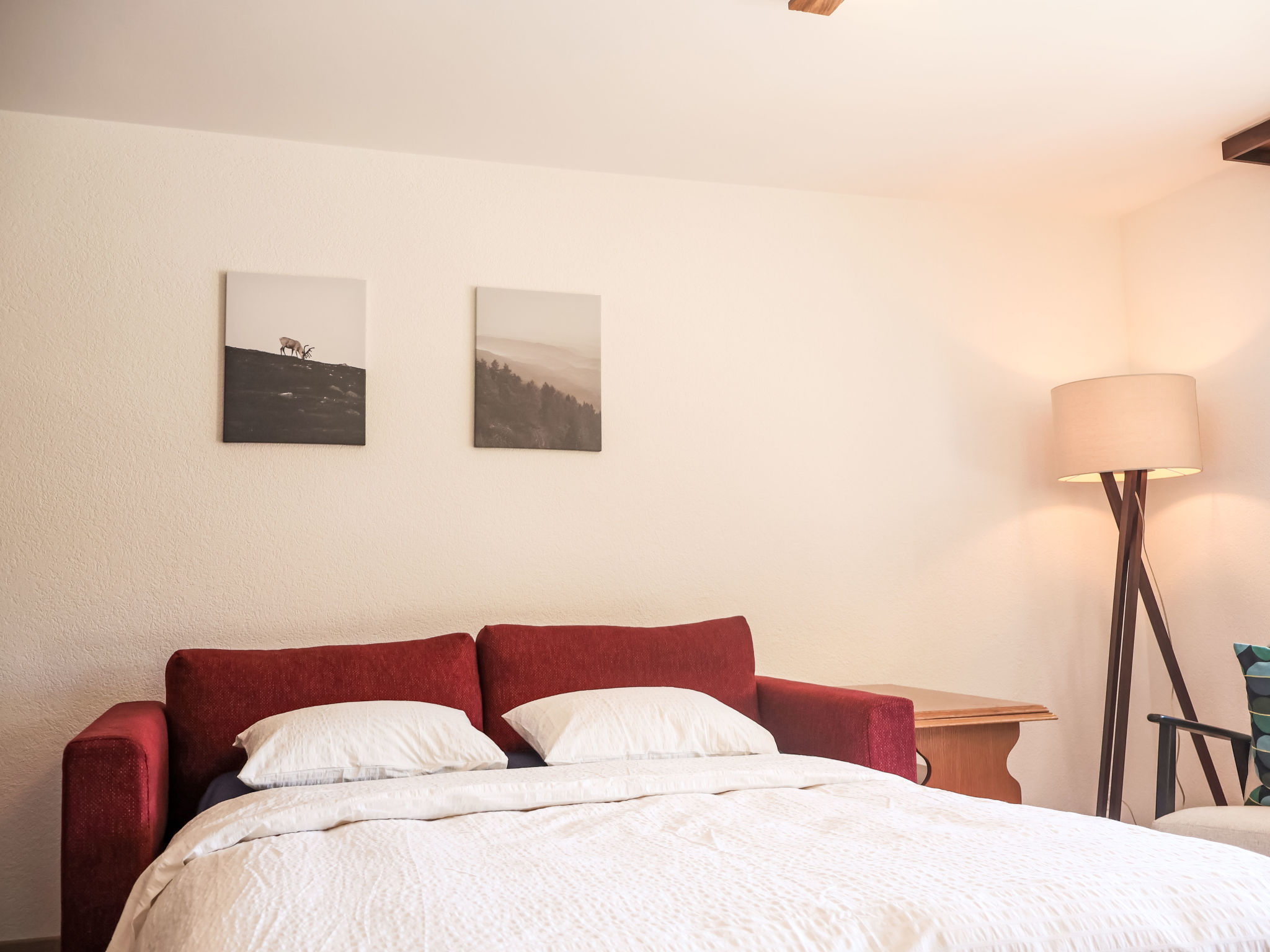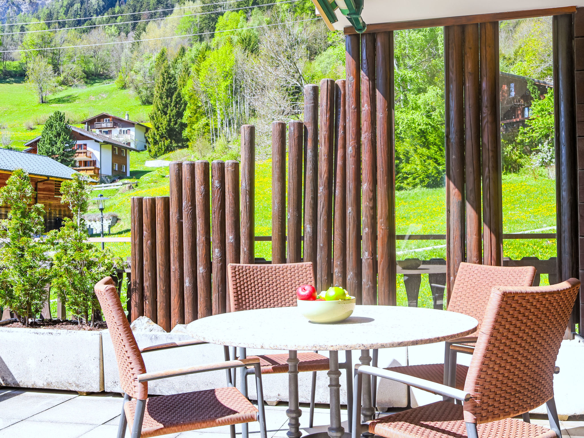 "Gemmi", apt. di 2 locali 54 m2 al 1. piano, esposizione sud. Luminoso, in parte nel 2025, arredamento confortevole e accogliente: soggiorno/sala da pranzo 30 m2, aperto con 1 divano letto doppio (140 cm, lunghezza 200 cm), tavolo da pranzo e tv digitale. Uscita sulla terrazza. 1 camera matrimoniale con 1 letto doppio (180 cm, lunghezza 200 cm). Cucina aperta (3 punti cottura, forno, bollitore elettrico, forno a microonde, congelatore, macchina da caffè elettrica, set per raclette). Vasca/WC. Grande terrazza 40 m2, esposizione sud. Mobili da terrazza, sedie a sdraio. Magnifica vista panoramica sulle montagne e sul paesaggio. A disposizione: Internet (wifi, gratis). Parcheggio (1 Auto). Prego notare: appartamento per non fumatori.