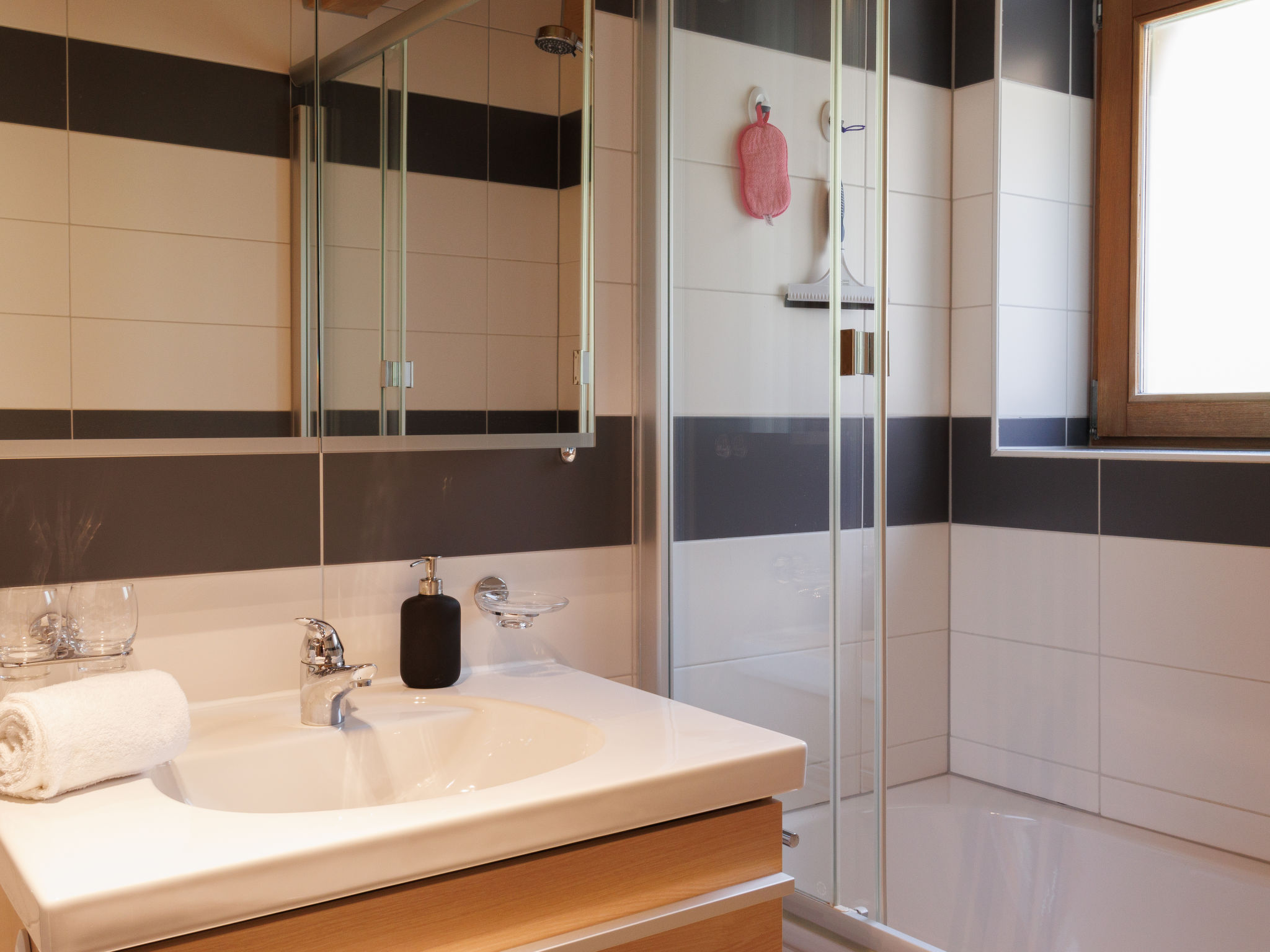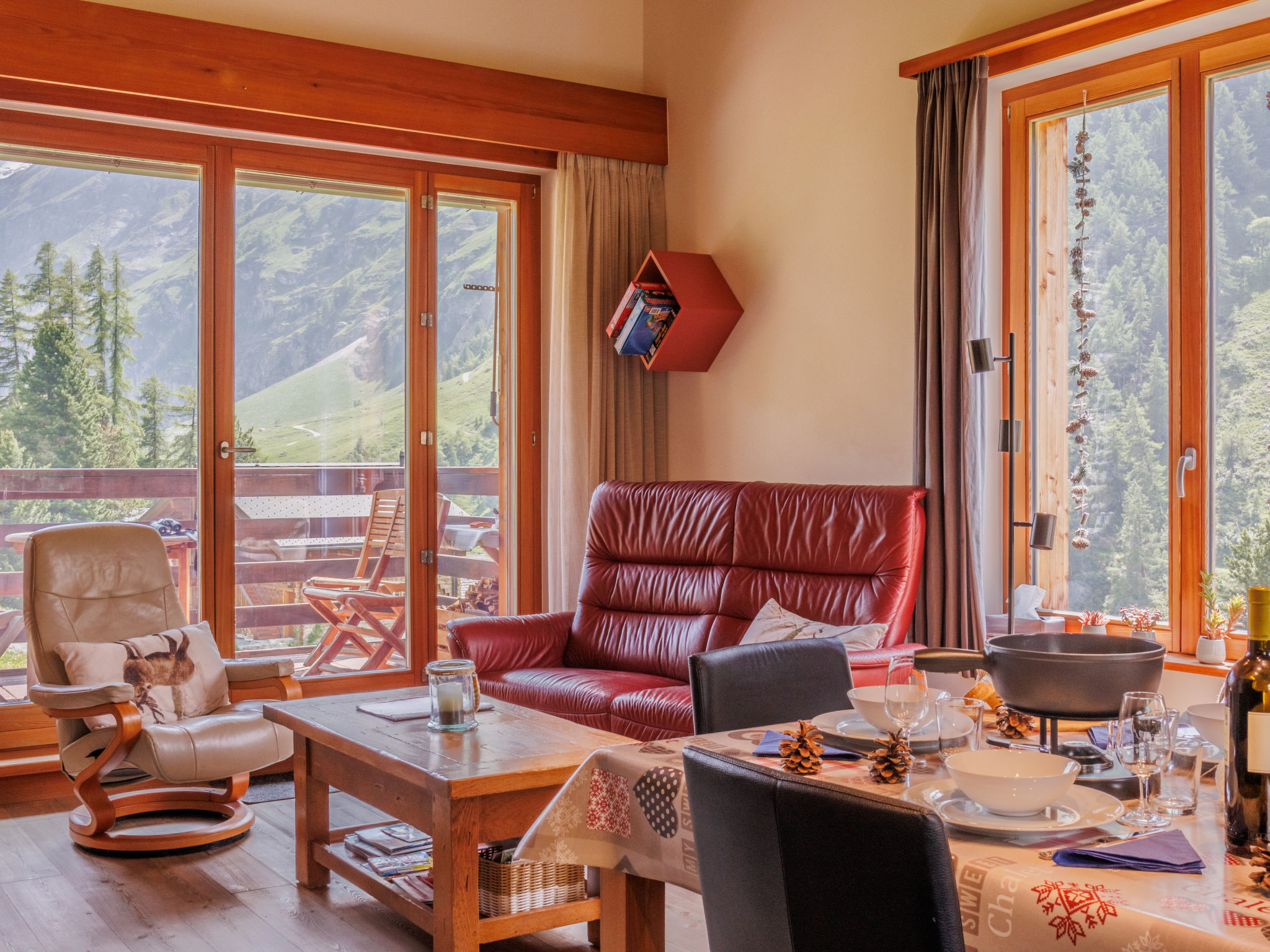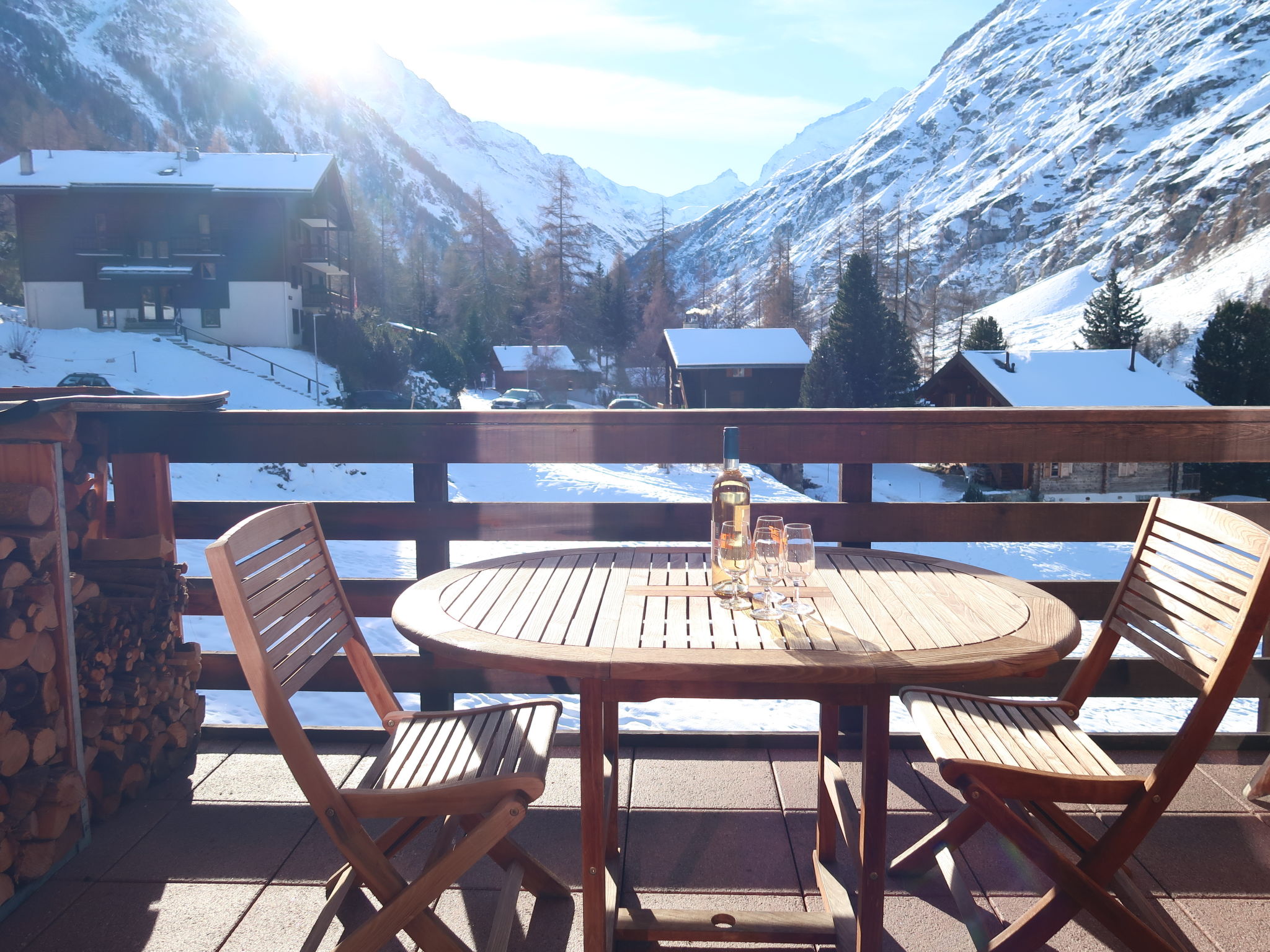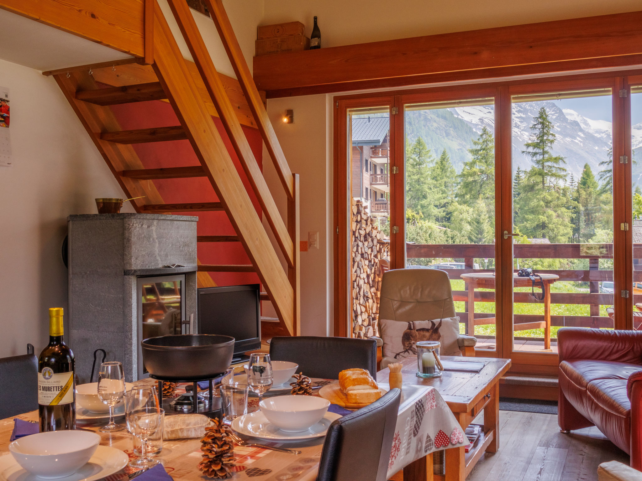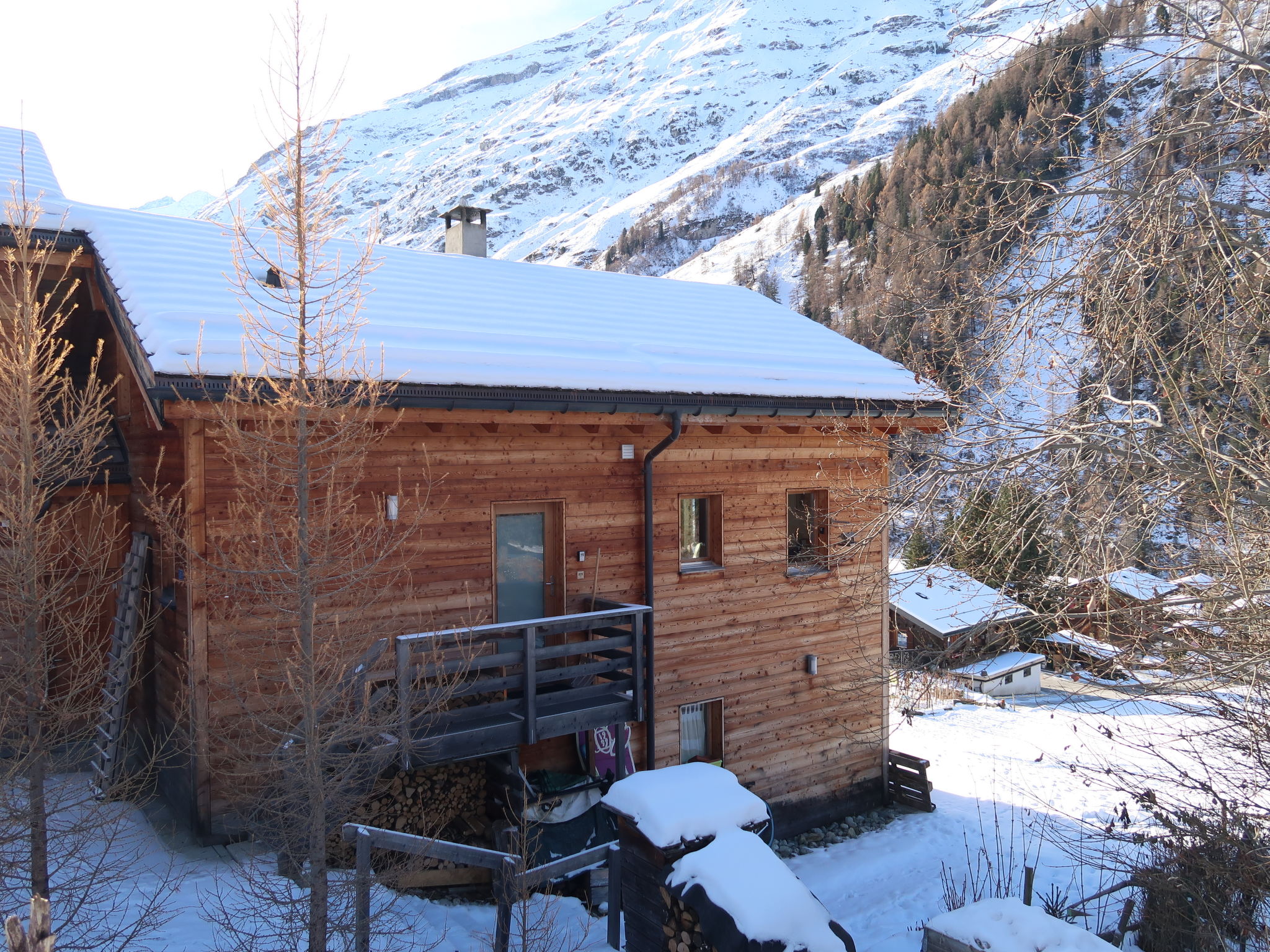"Ryad C", apt. di 4 locali 85 m2, al piano superiore, esposizione sud. Arredamento confortevole e di buon gusto: soggiorno/sala da pranzo con stufa svedese, TV (via cavo) e riscaldamento elettrico. Uscita sul balcone, esposizione sud. 1 camera con 1 letto doppio (2 x 90 cm, lunghezza 200 cm). 1 camera piccola con 1 letto estraibile (2 pers. 2 x 90 cm, lunghezza 200 cm). Cucina aperta (forno, lavastoviglie, 4 piastre cottura in vetroceramica, tostapane, bollitore elettrico, forno a microonde, congelatore, macchina da caffè elettrica, capsule per la macchina da caffè (Nespresso), set per raclette, set per fondue (formaggio)). Vasca/WC, WC separato. Riscaldamento ad aria calda. Piano superiore: 1 camera con 2 letti (90 cm, lunghezza 200 cm). Pavimenti in parquet. Balcone. Mobili da balcone. Splendida vista sulle montagne, sul paesaggio e sulla località. A disposizione: ferro da stiro, asciugacapelli, legna (gratis). Internet (wifi, gratis). Parcheggio nr. Ryad C vicino alla casa. Prego notare: appartamento per non fumatori.