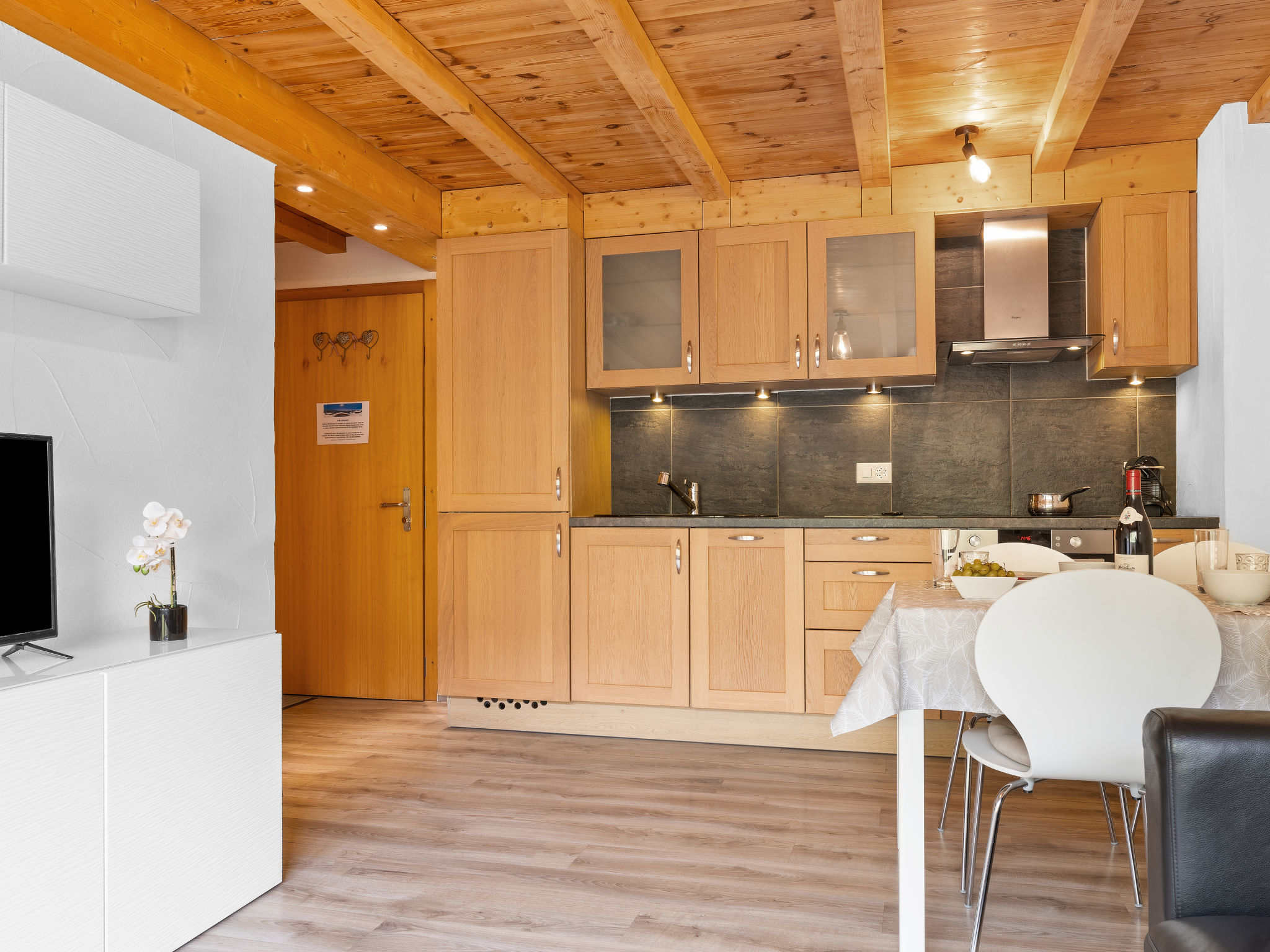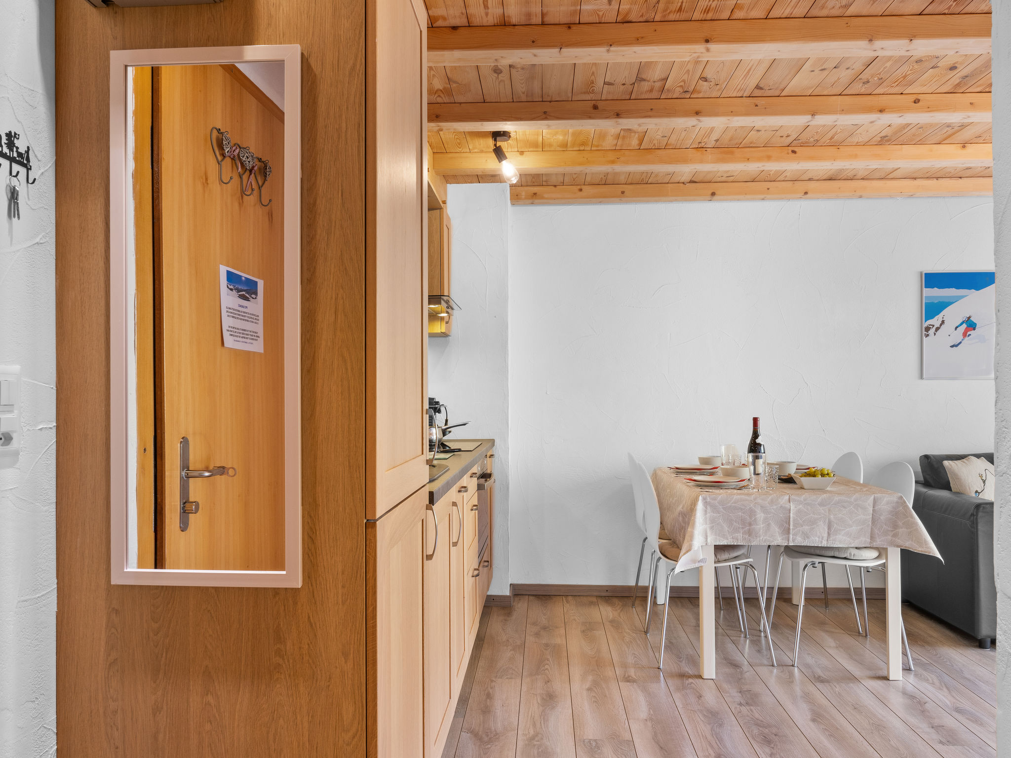 "Sundance 10/1", apt. di 2 locali 45 m2 al 1. piano. Arredamento confortevole e di buon gusto: soggiorno/sala da pranzo con 1 divano letto (150 cm, lunghezza 190 cm), schermo piatto. Uscita sul balcone. 1 camera con 1 letto doppio (160 cm, lunghezza 200 cm). Uscita sul balcone. Cucina aperta (forno, lavastoviglie, 3 piastre cottura in vetroceramica, tostapane, congelatore, macchina da caffè elettrica, capsule per la macchina da caffè (Nespresso), set per raclette, set per fondue (formaggio)). Doccia/WC. Balcone. Mobili da balcone. Bella vista sulle montagne. A disposizione: asciugacapelli. Internet (wifi). Garage (extra) a 50 m. Prego notare: appartamento per non fumatori.