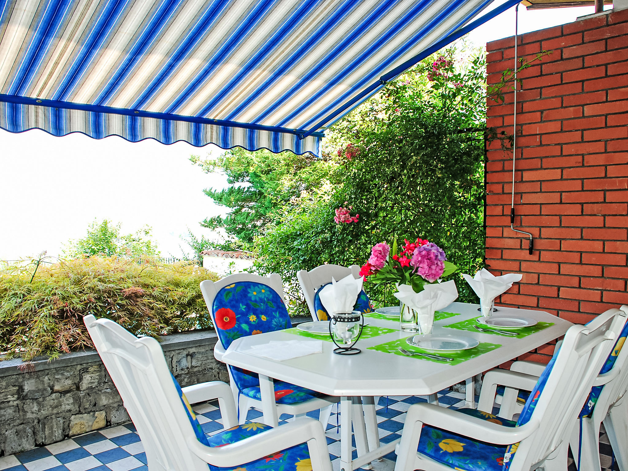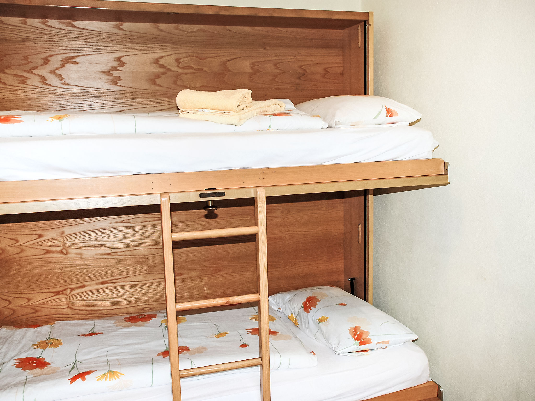 "Ursula", metà di una villetta bifamiliare 4 locali esposizione sud-ovest. Spazioso e luminoso, arredamento confortevole e accogliente: soggiorno/sala da pranzo aperto con camino (solo con funzione decorativa), angolo pranzo, libreria, TV (satellite) e tv con canali internazionali (schermo piatto). Uscita sulla terrazza, sulla veranda, sulla piscina. 1 camera matrimoniale con 1 letto doppio (2 x 90 cm, lunghezza 200 cm). Uscita sulla terrazza. 1 camera con 2 letti estraibili (2 pers. 2 x 90 cm, lunghezza 200 cm). 1 camera con 1 x 2 letti a castello (90 cm, lunghezza 200 cm). Piccola cucina (3 punti cottura, lavastoviglie, tostapane, bollitore elettrico, congelatore, microonde combinato). Vasca/WC, doccia/WC. Patio in parte coperto, esposizione nord e esposizione ovest. Mobili da terrazza, sedie a sdraio (5). Magnifica vista panoramica sul lago, sulle montagne e sul paesaggio. A disposizione: ferro da stiro, seggiolone, lettino per bimbi fino 2 anni (extra), asciugacapelli. Internet (wifi, gratis). Prego notare: adatto alle famiglie. Casa per non fumatori. Estintore. NL-00012978