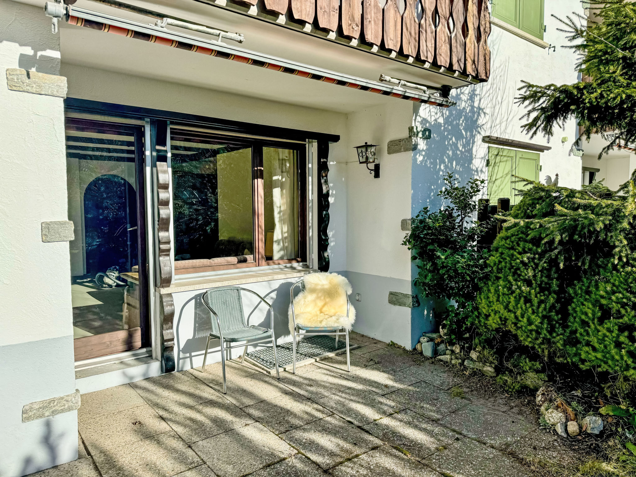 Apt. di 2 locali 55 m2. Restaurato nel 2025, arredamento confortevole e accogliente: soggiorno/sala da pranzo con 1 divano letto doppio (160 cm), camino e TV (via cavo) (schermo piatto). Uscita verso il patio. 1 camera matrimoniale. Uscita verso il patio. Cucina aperta (forno, lavastoviglie, 4 piastre cottura in vetroceramica, tostapane, bollitore elettrico, macchina da caffè elettrica, capsule per la macchina da caffè (Nespresso) extra, set per fondue (formaggio)). Doccia/WC. Patio 25 m2. Mobili da terrazza. Bella vista sul lago, sulle montagne e sul paesaggio. A disposizione: lettino per bimbi. Internet (wifi, gratis). Garage (1 Auto) vicino alla casa. Prego notare: appartamento per non fumatori.
